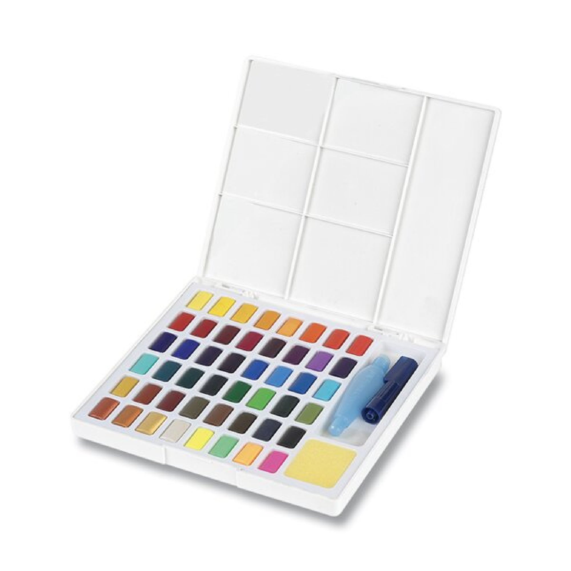 Popis:Souprava 48 kusů kvalitních akvarelových barev s odnímatelnou paletkou pro mixování barev a štětečkem se zásobníkem na vodu.