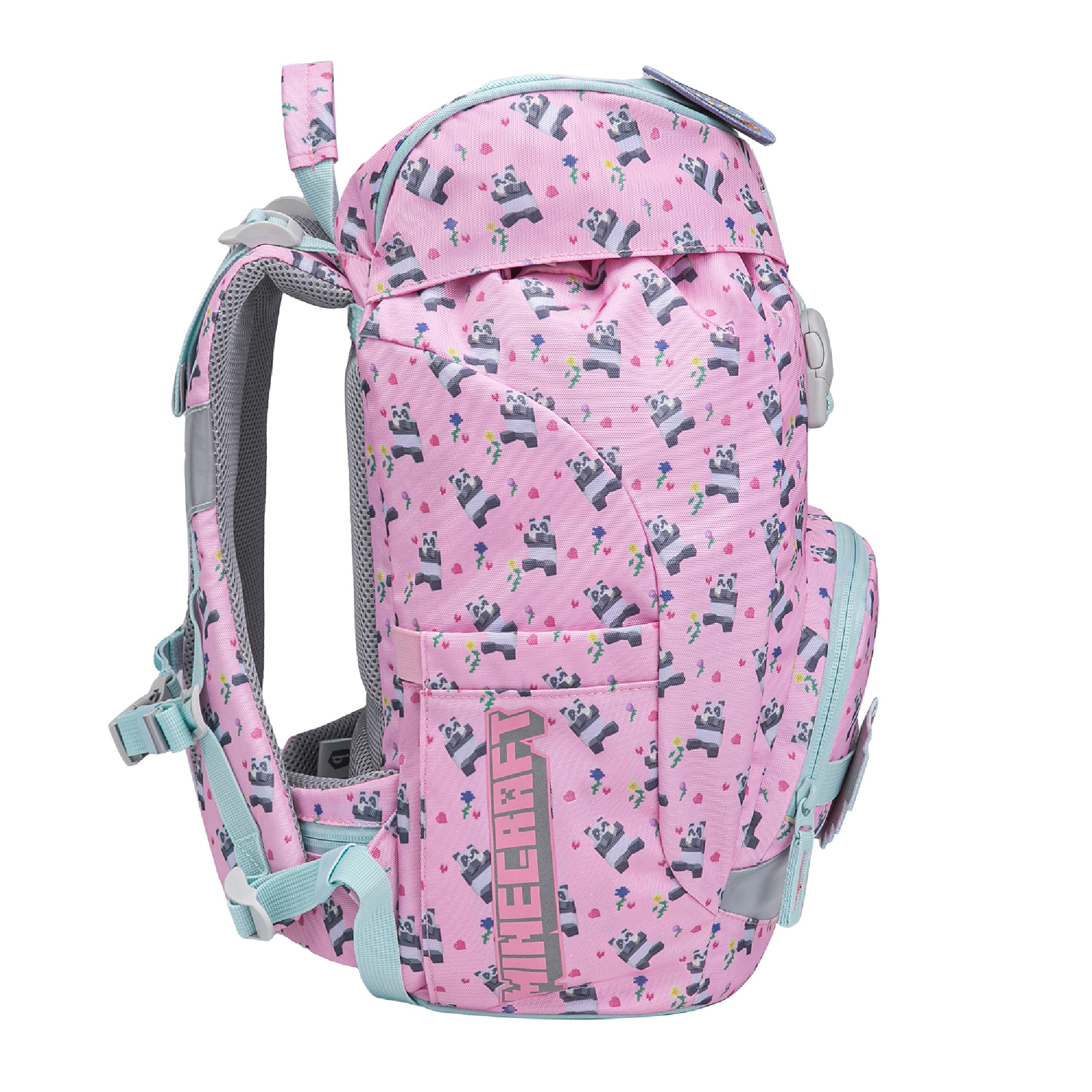 Jednokomorové vnitřní uspořádání s kapsou a gumičkou pro uchycení desek na zádové straně slouží ke snadné organizaci všech školních pomůcek.