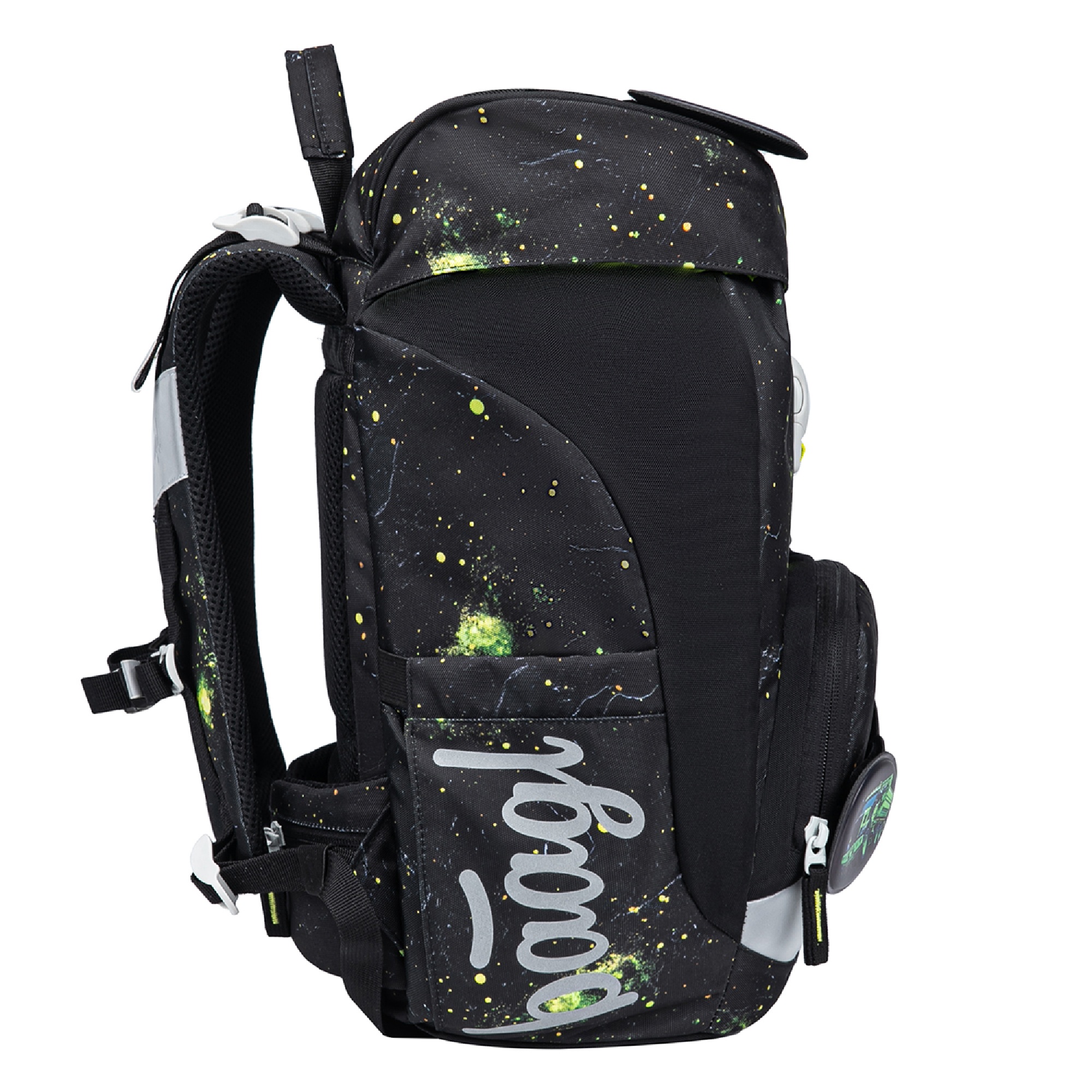 Batoh vyrobený z recyklovaného a voděodolného materiálu je opatřen řadou reflexních prvků pro maximální bezpečnost dítěte i za snížené viditelnosti.
