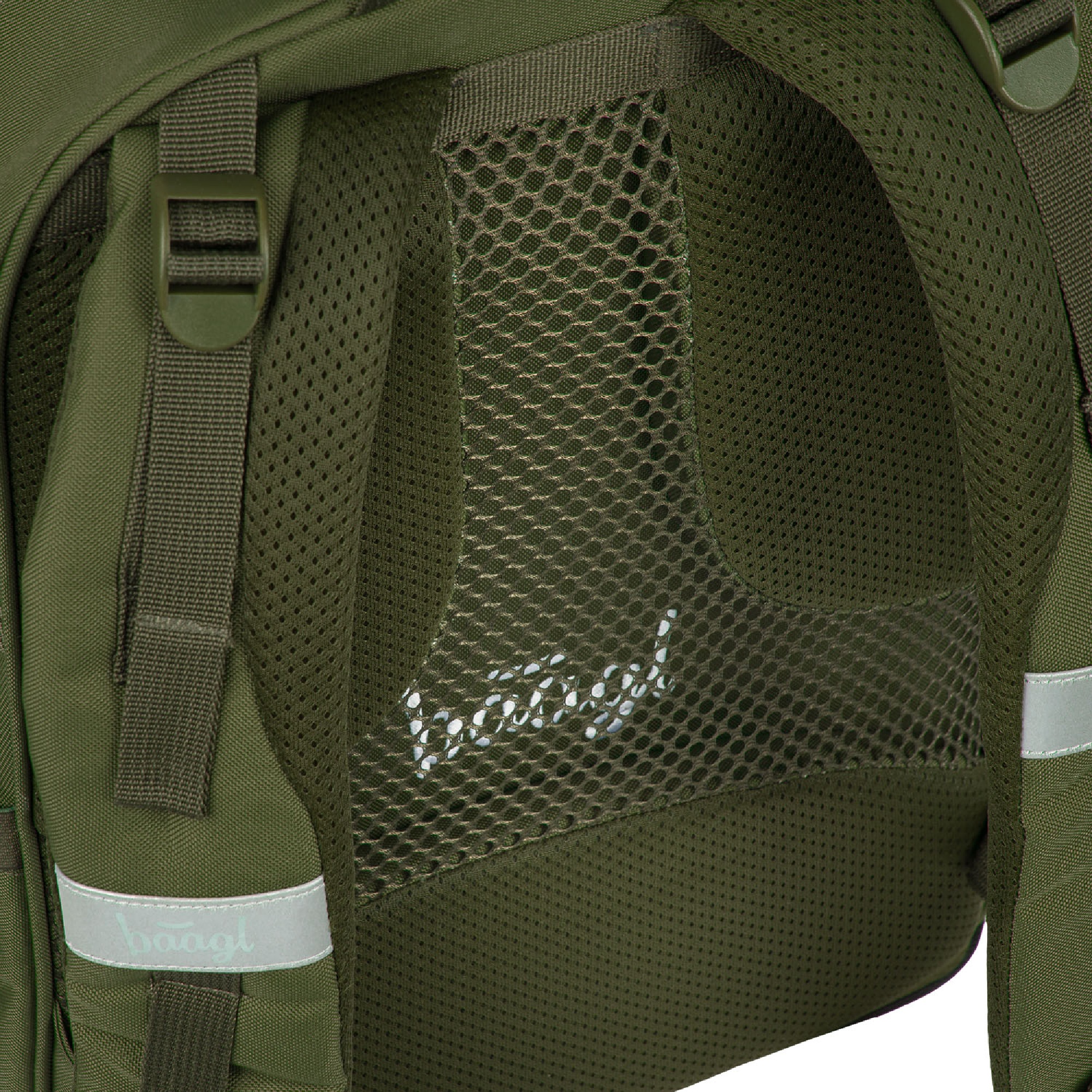Batoh z recyklovaného, voděodolného materiálu je opatřen řadou reflexních prvků pro maximální bezpečnost dítěte i za snížené viditelnosti.