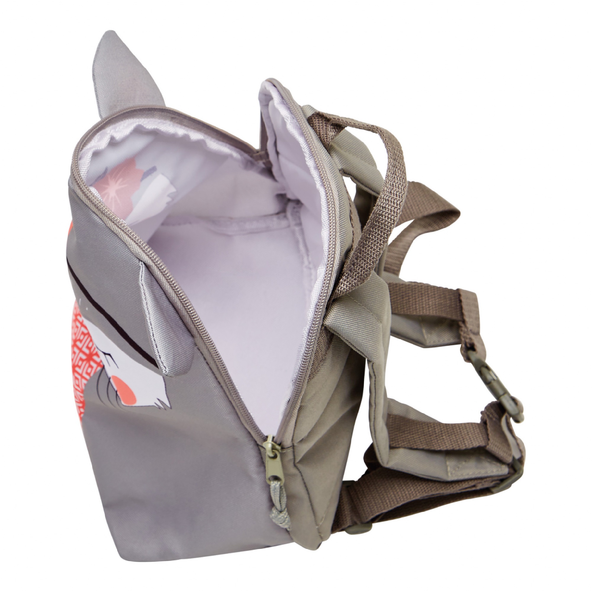 Popis:nastavitelné ramenní popruhy, hrudní popruh, 1 hlavní přihrádka, zapínání na zip, tvář koťátka a uši koťátka ve předu, prázdný, 29 x 23 x 10 cm
