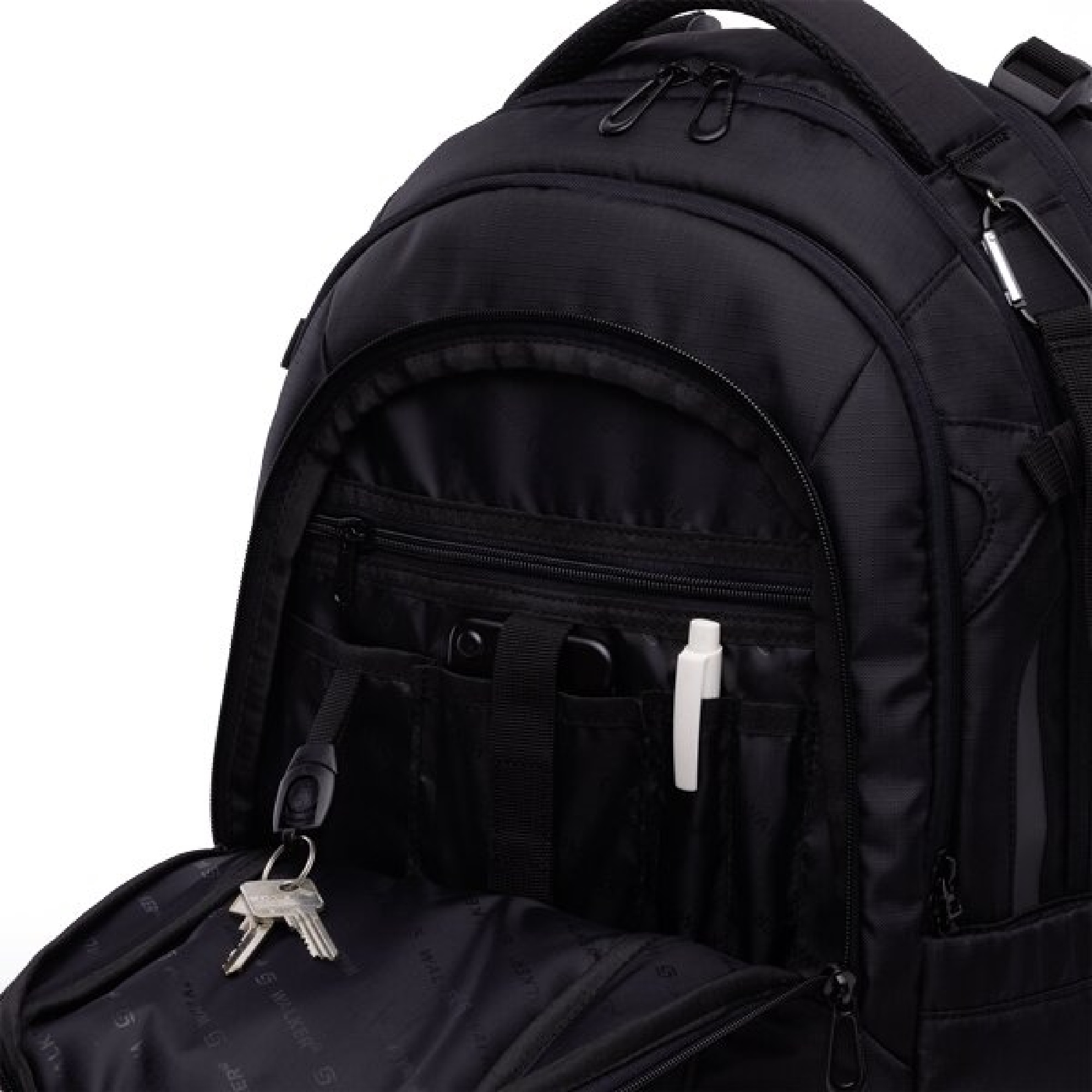 prostorná prostřední komora a velká přední kapsa s organizérem, uzavíratelné na zip