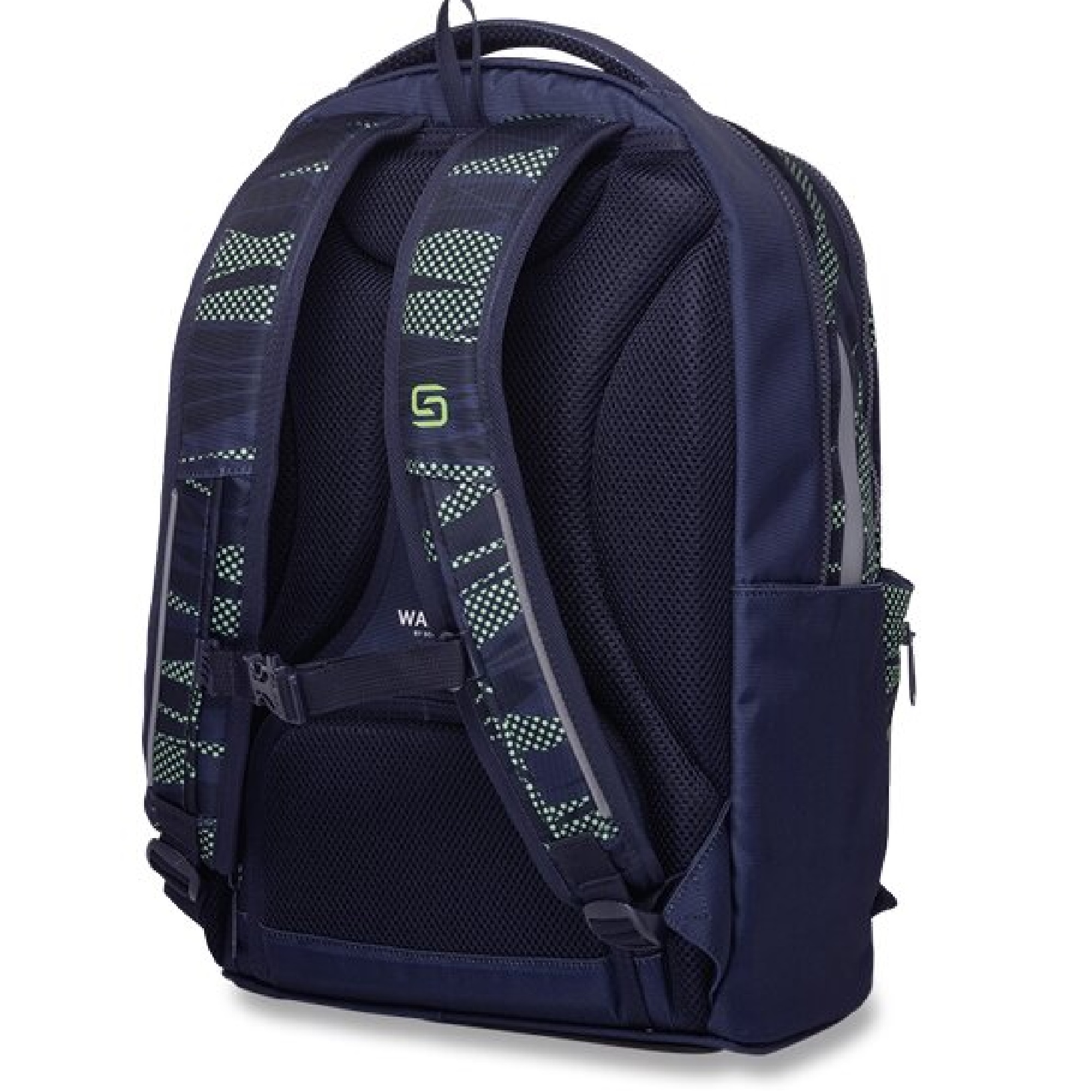Popis:Školní batoh Layers Green z řady Walker Rey s reflexními prvky. Batoh má polstrovaná prodyšná záda s odvětráváním 3D AirMesh. (Struktura 3D AirMesh zahrnuje síťovité vrstvy, které vytvářejí trojrozměrné vzduchové kapsy. Tyto kapsy zvyšují ventilaci a pomáhají rychle odvádět vlhkost). Anatomicky tvarované, výškově nastavitelné ramenní popruhy. Tajná kapsa v bederní časti batohu s RFID ochranou (dokáže zablokovat příchozí bezdrátové komunikace a zamezí tak nežádoucímu čtení dat z kreditních karet). Zadní komora s polstrovanou kapsou pro notebook do velikosti 15“, polstrovanou kapsou na tablet a kapsou na mobilní telefon. Stabilní a ochranný materiál dna. Odnímatelná karabina s poutkem. Materiál z 50 % z recyklovaného polyesteru vyrobeného z recyklovaných PET lahví. Speciální materiál 600 D Ripstop Polyester zvyšuje odolnost proti roztržení a v případě roztržení zabraňuje zvětšení trhliny. Materiál s impregnací proti vodě a špíně.