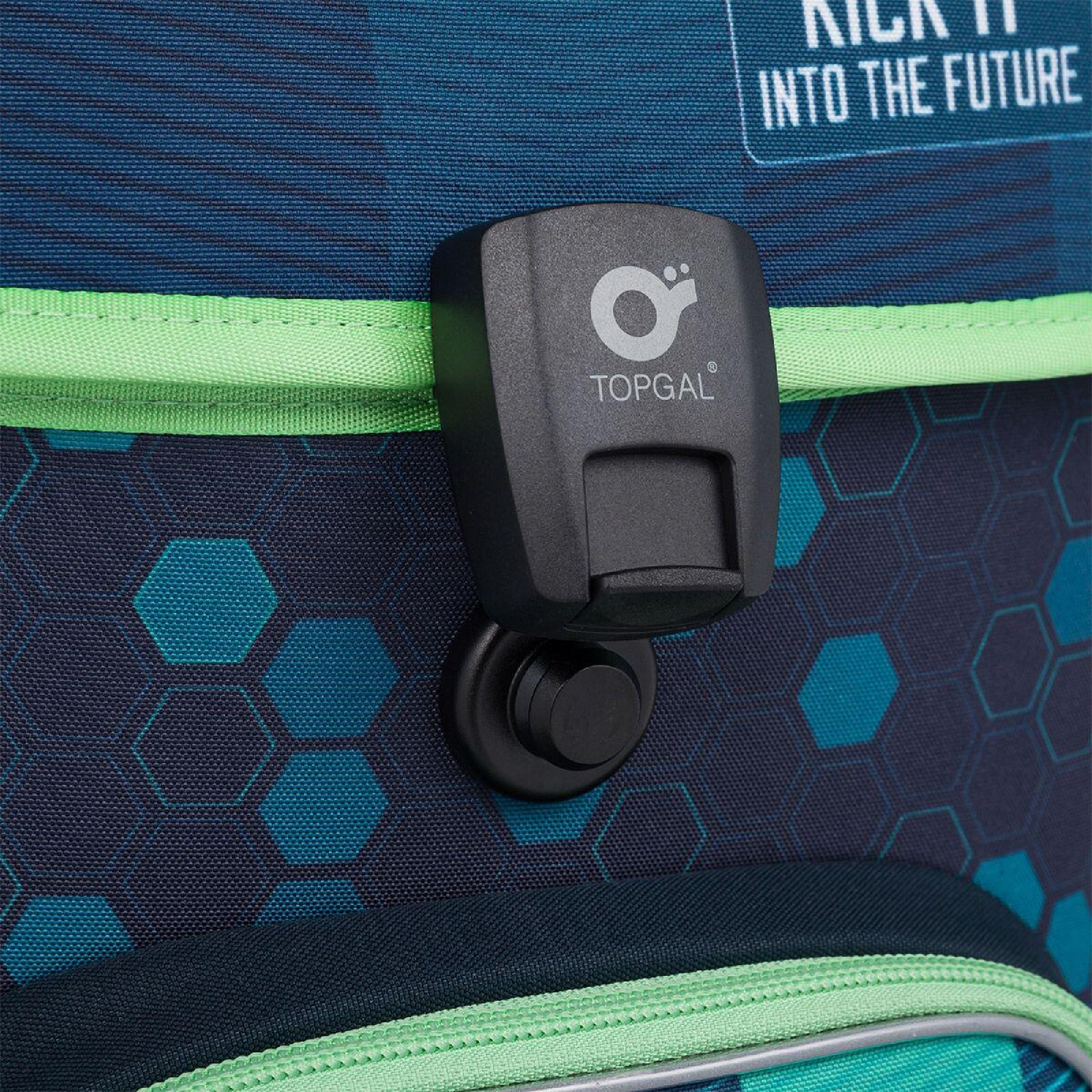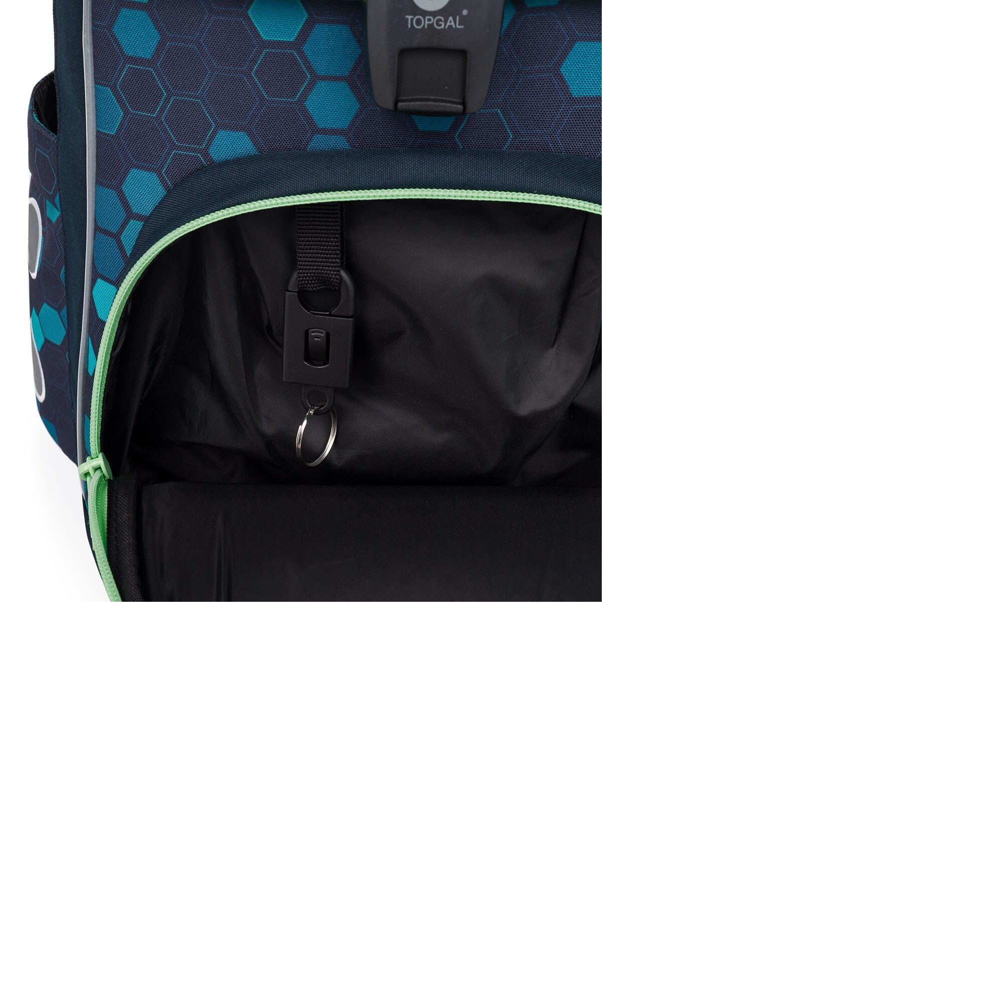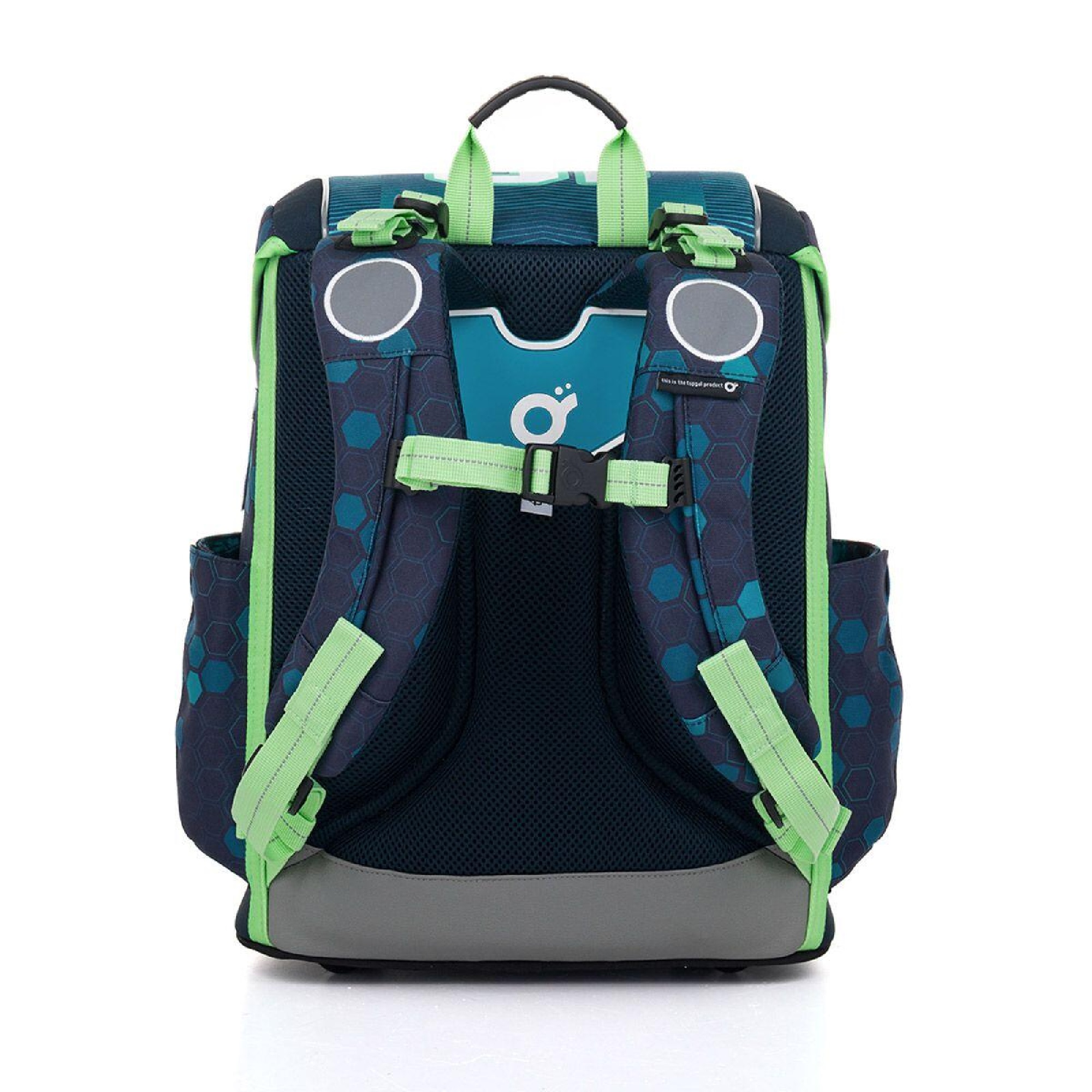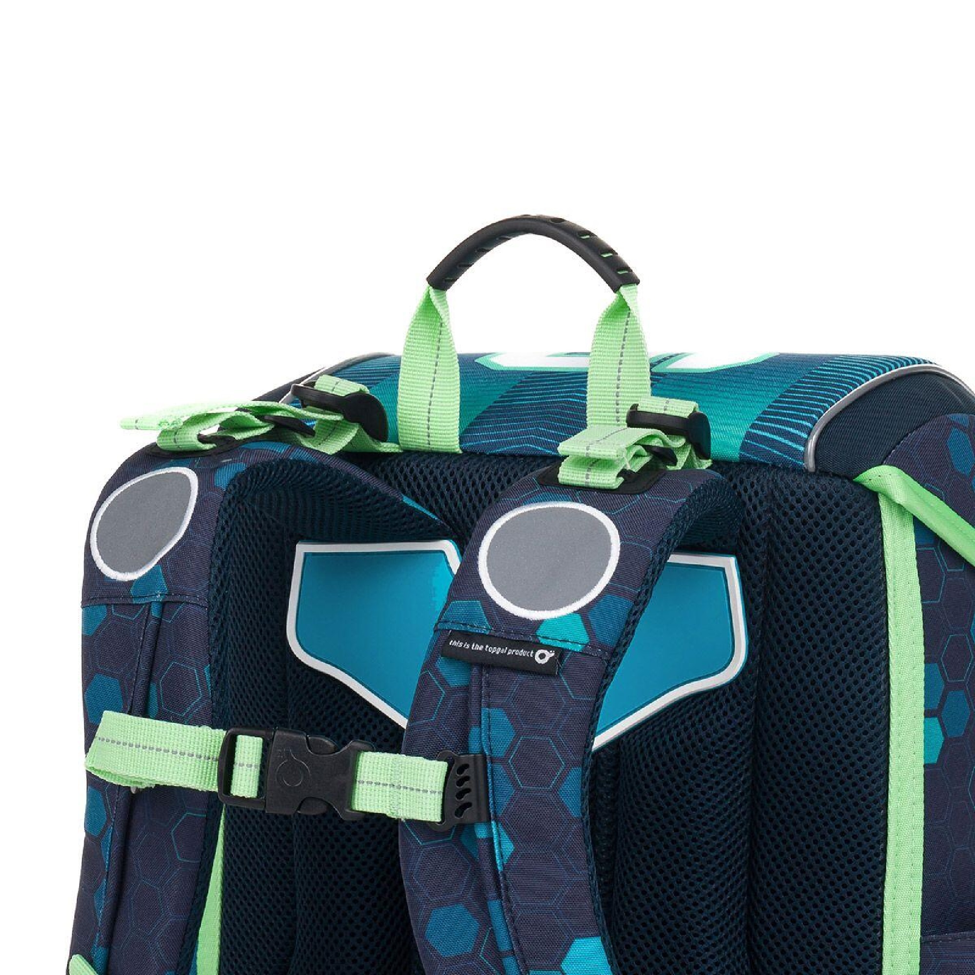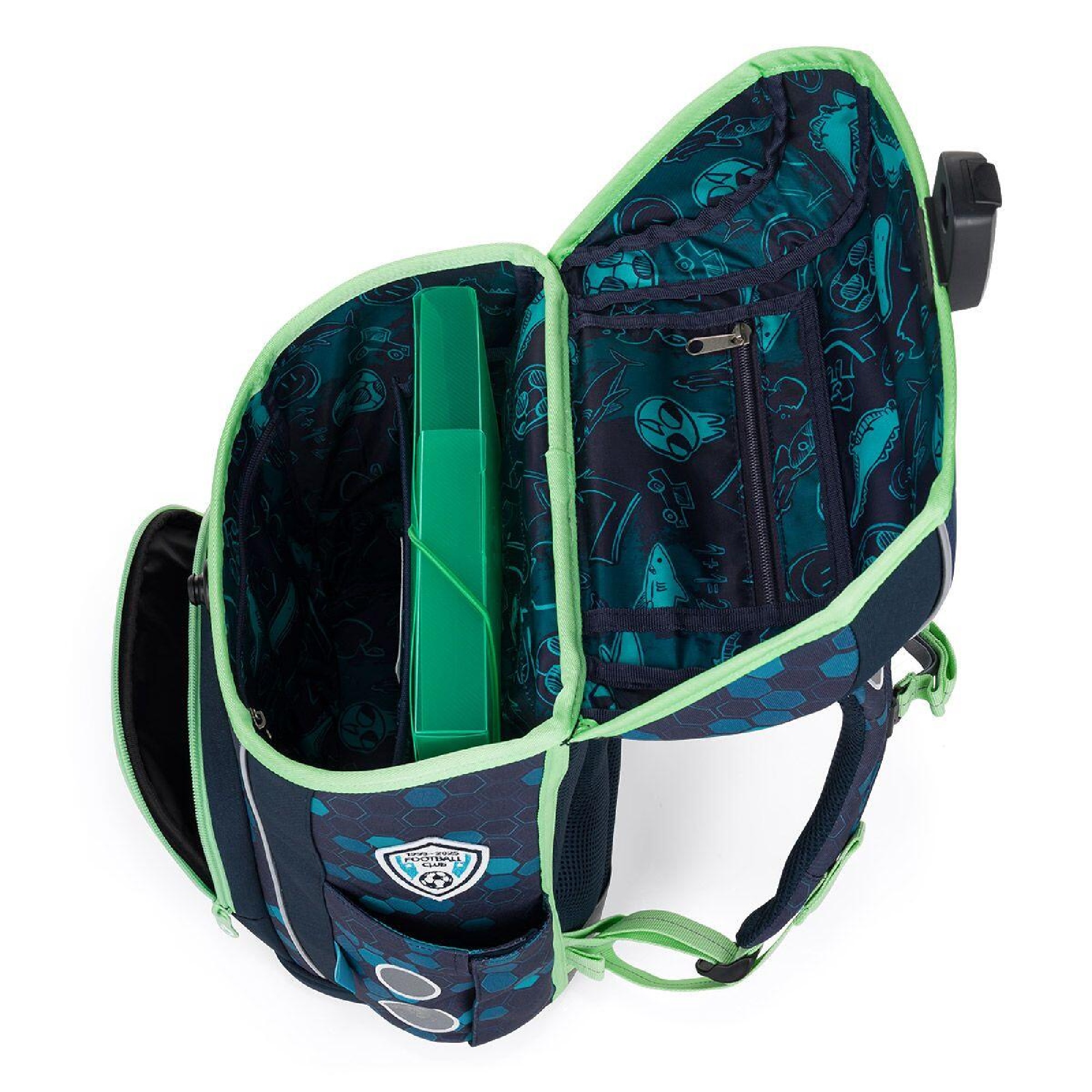 V objemné hlavní kapse najdete organizér, dvě malé kapsy na drobnosti a jmenovku. Po stranách jsou dvě pevné kapsy na lahev ZIVA o objemu 0,5 litru. Do přední kapsy jsme přidali odnímatelnou karabinu na klíče, s kvěle se tam vejde také penál PENN 25011 ve stejném designu, nebo naše krabičky na svačiny s vyjímatelným organizérem.
