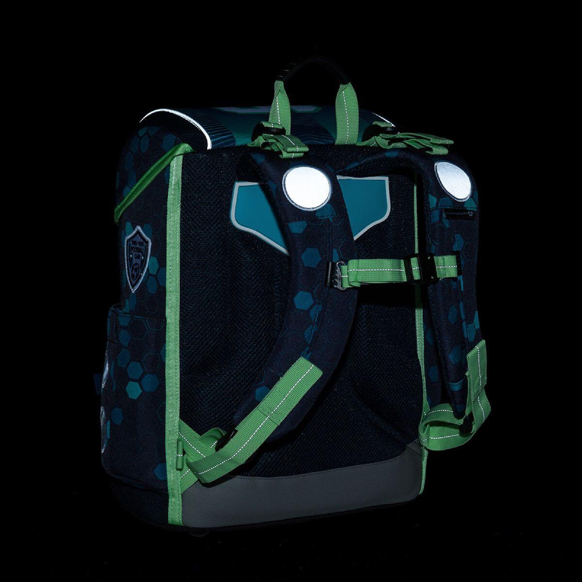 reflexní prvky: na čele a bocích batohu, na ramenních popruzích