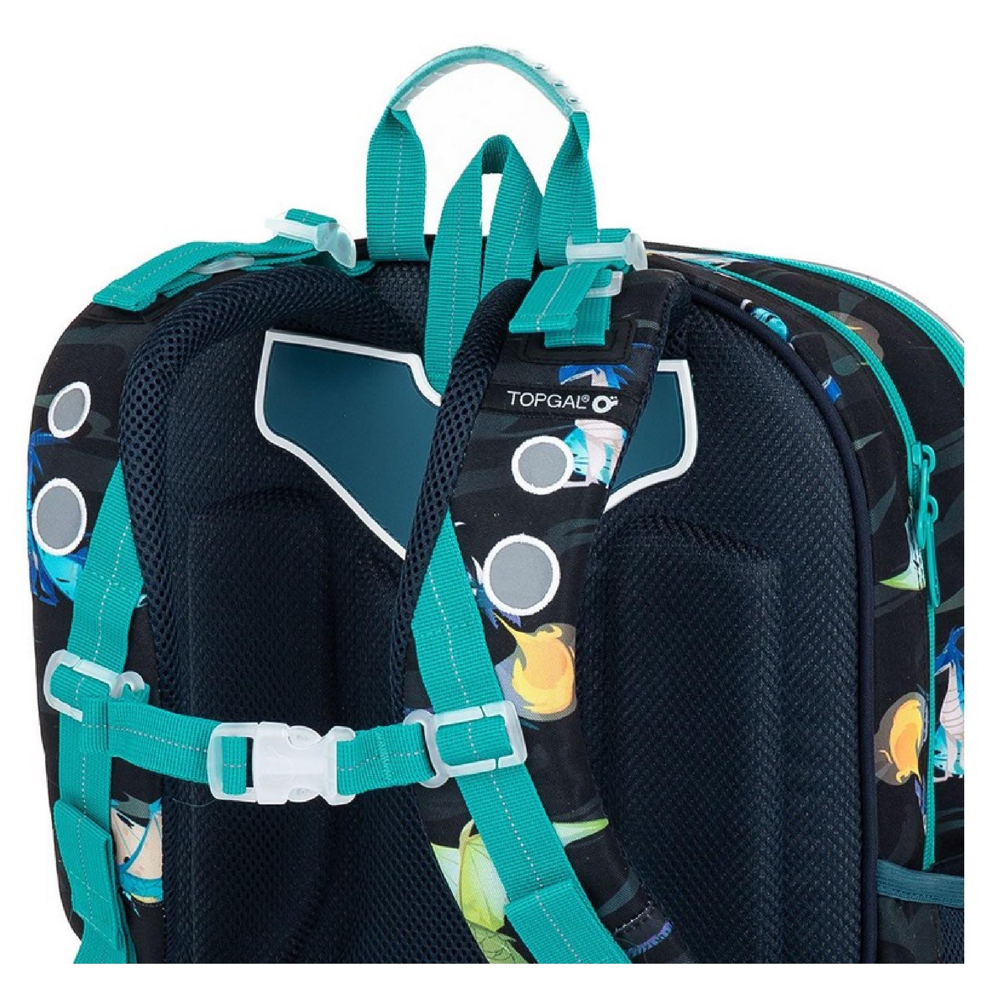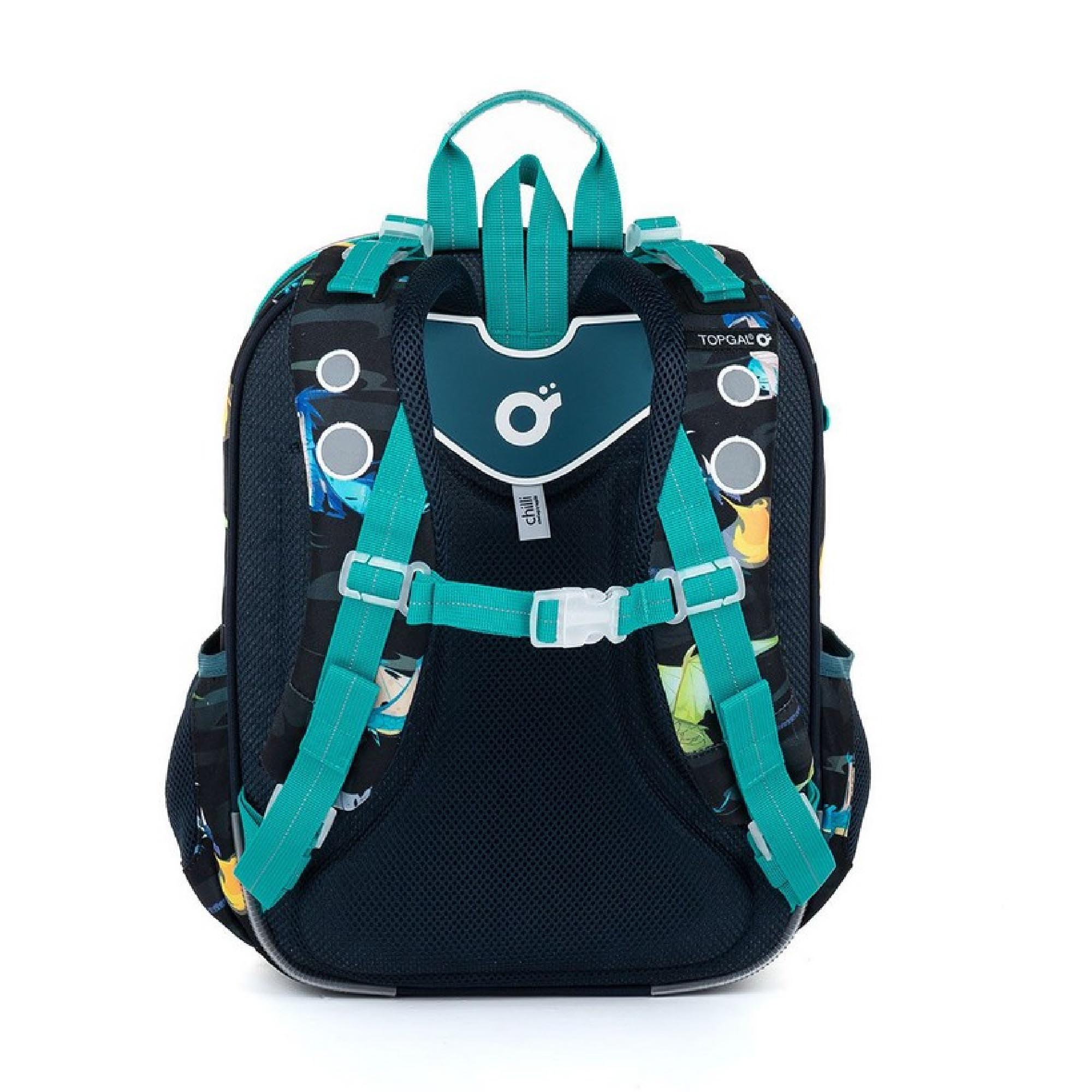 Batoh má dvě hlavní objemné komory. Zadní komora batohu je širší, radíme do ní umístit nejtěžší učivo a směrem dopředu odlehčovat. V přední komoře je umístěna síťová kapsa na zip a jmenovka. Do přední hluboké kapsy na čele batohu se vejde třeba krabička na svačinku, nebo penál PENN 23013 ve stejném designu. Do bočních kapes se vejdou lahvičky o objemu 0,5 litru, např. naše ZIVA.