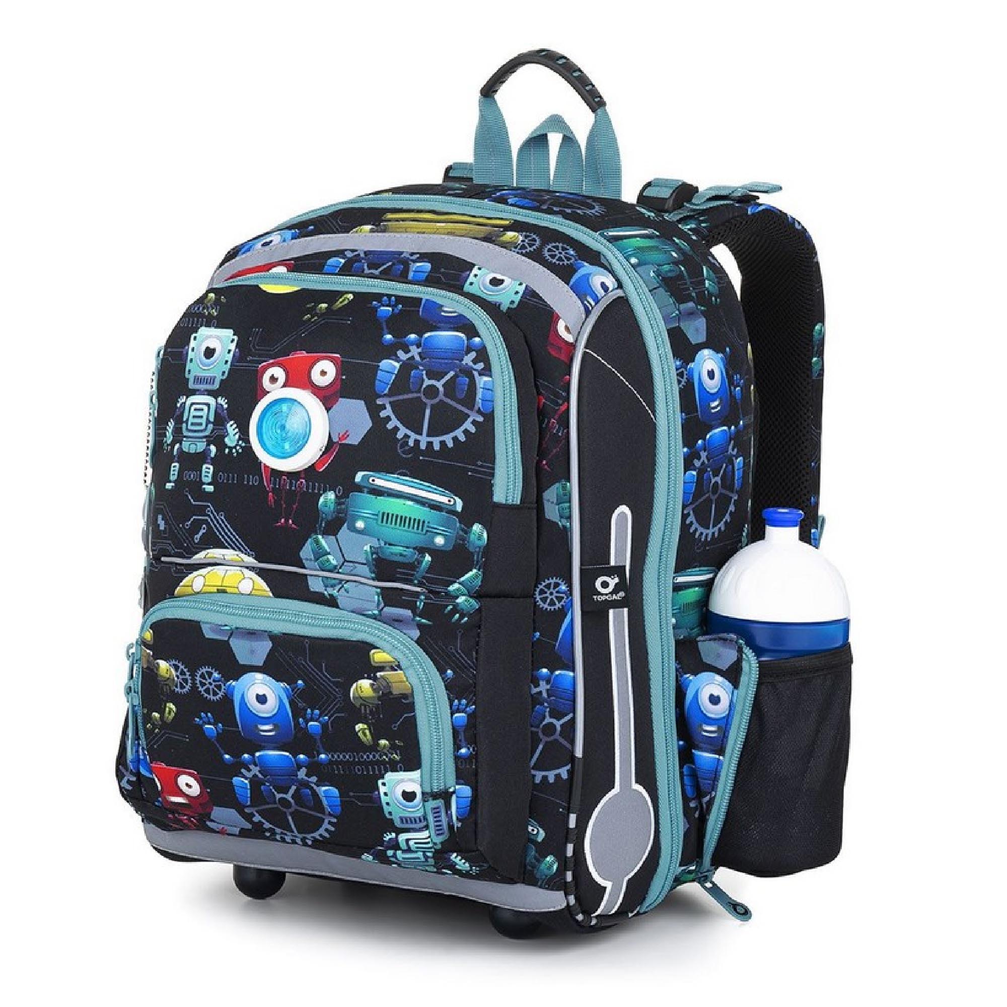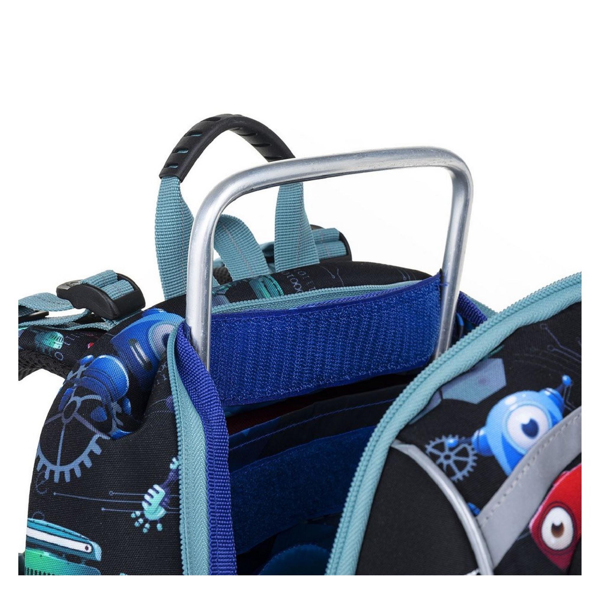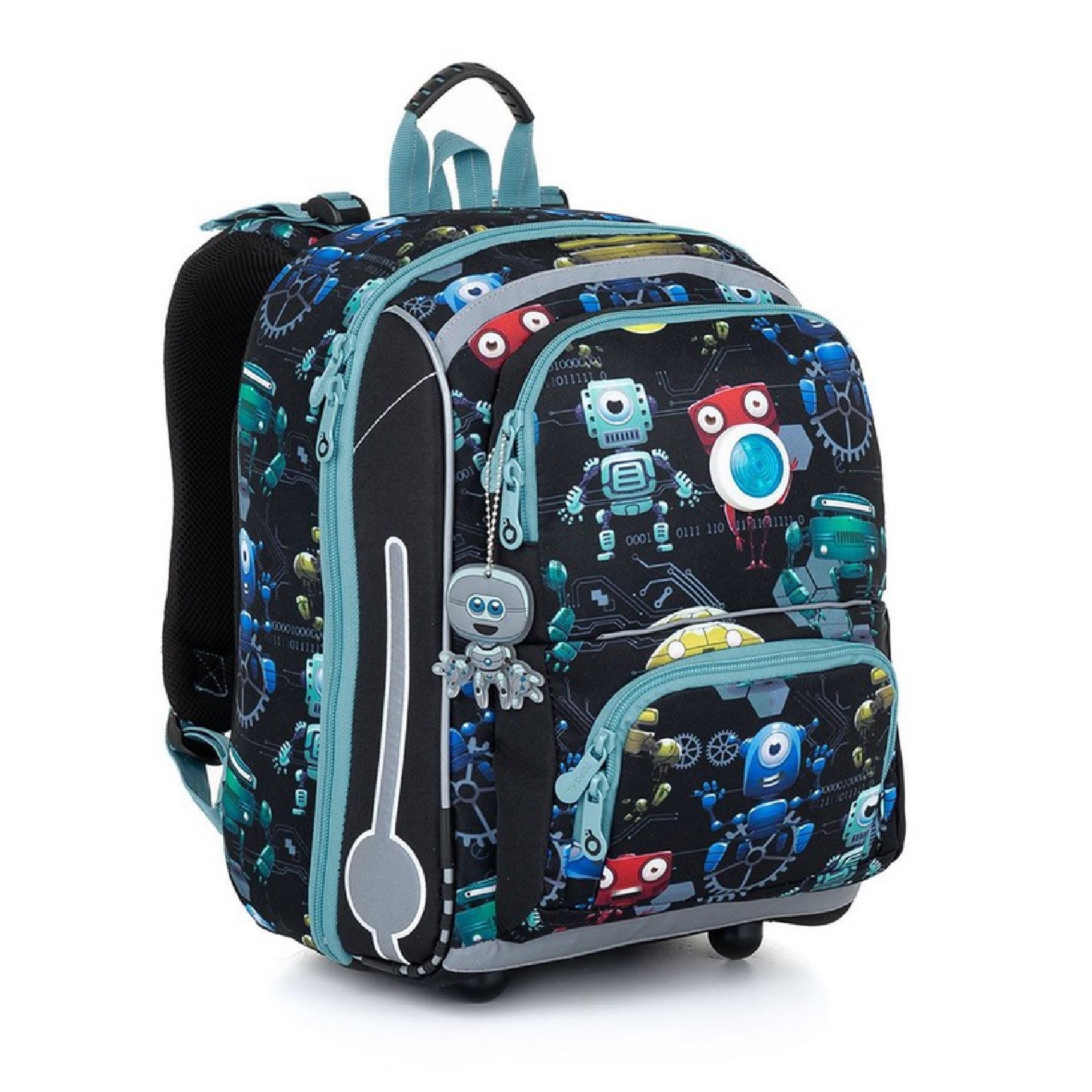 Model BEBE je nejmenší batoh z naší nabídky. Jde o kompromis mezi aktovkou a školním batohem, který jsme vyvinuli speciálně pro malé děti s výškou 110 cm. O nadčasovost designu se postará skupinka robotů. Protože co jiného s nastupující robotizací můžeme dát na klučičí batoh?!