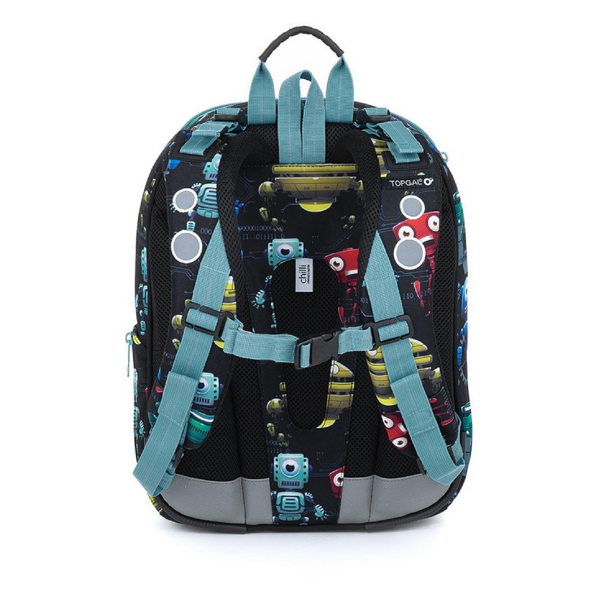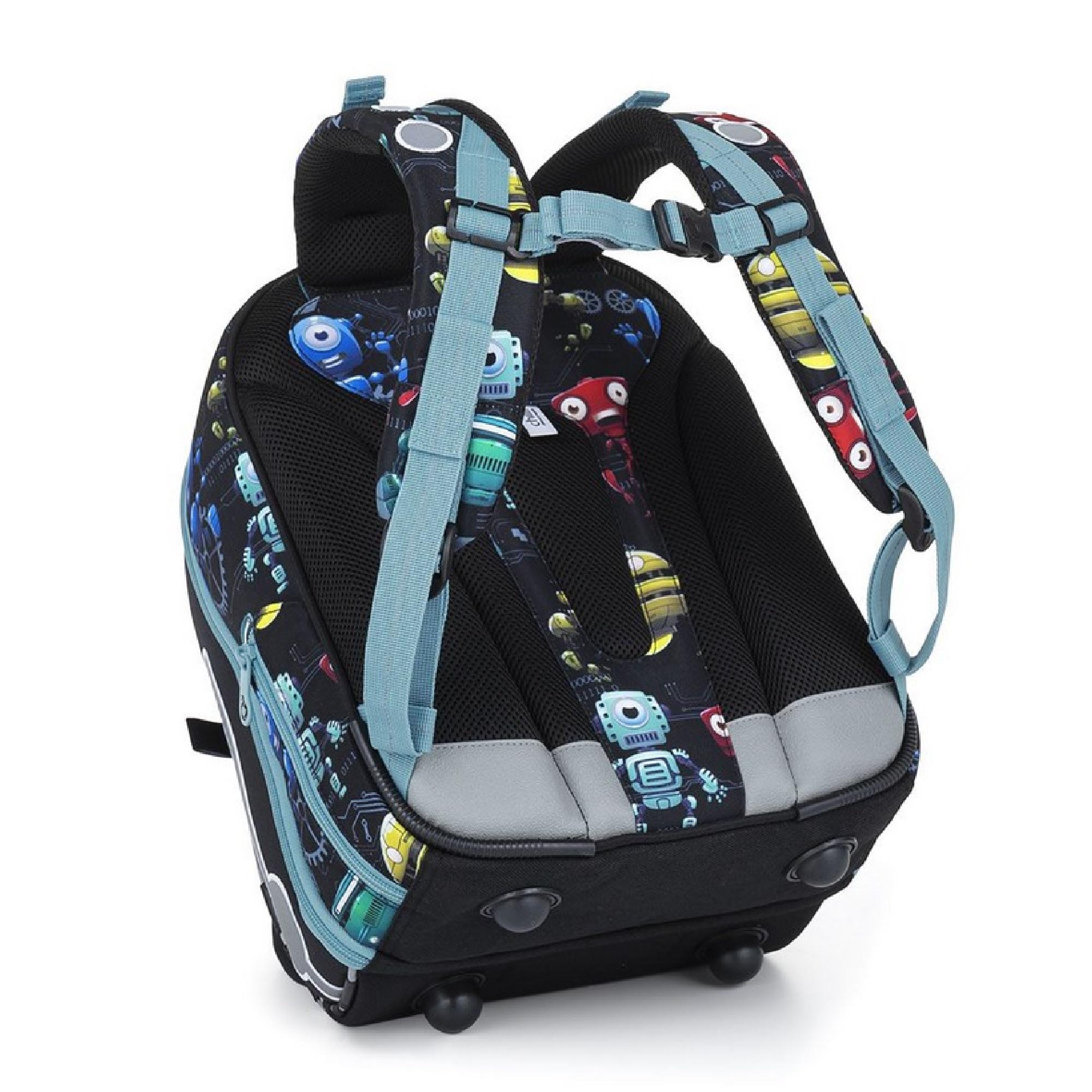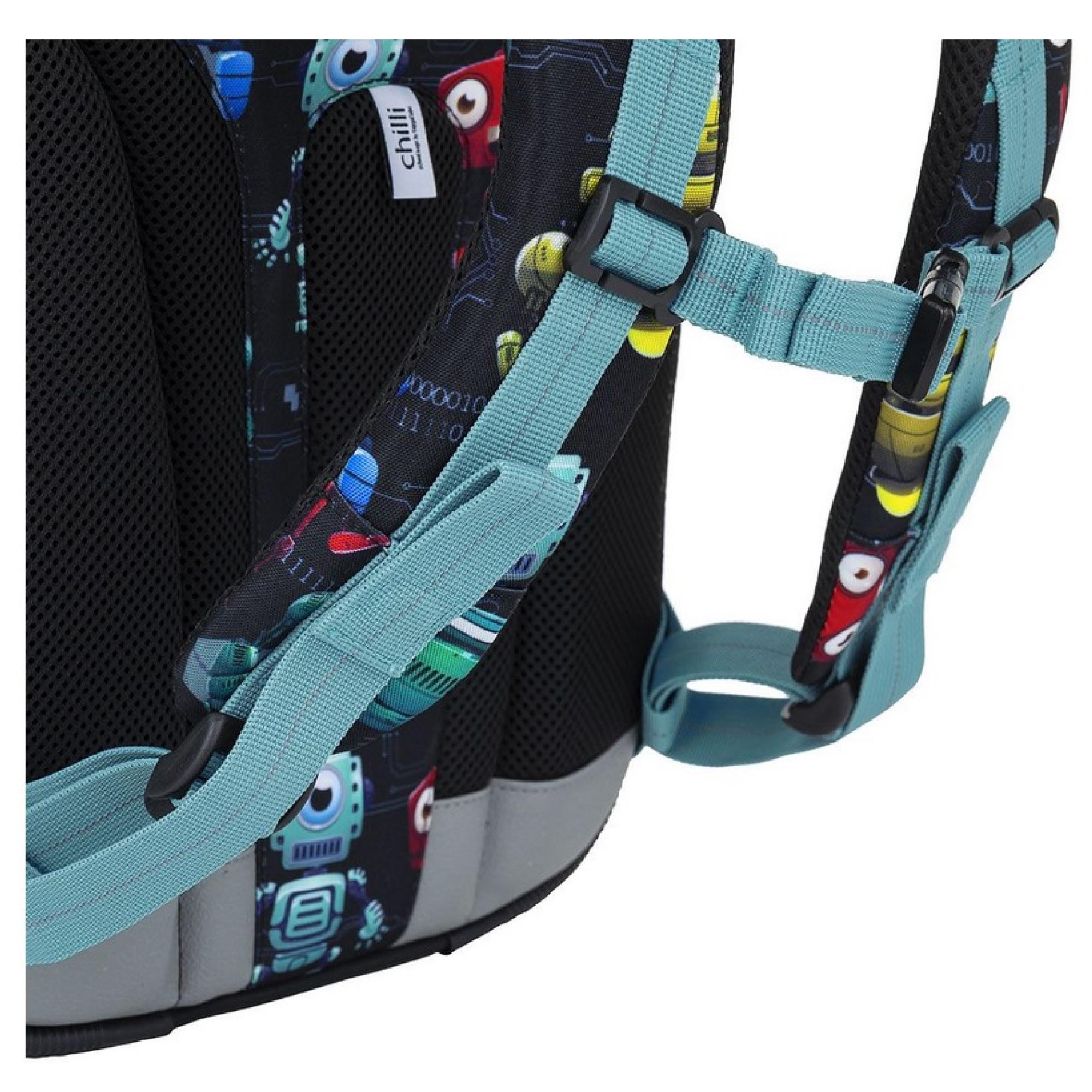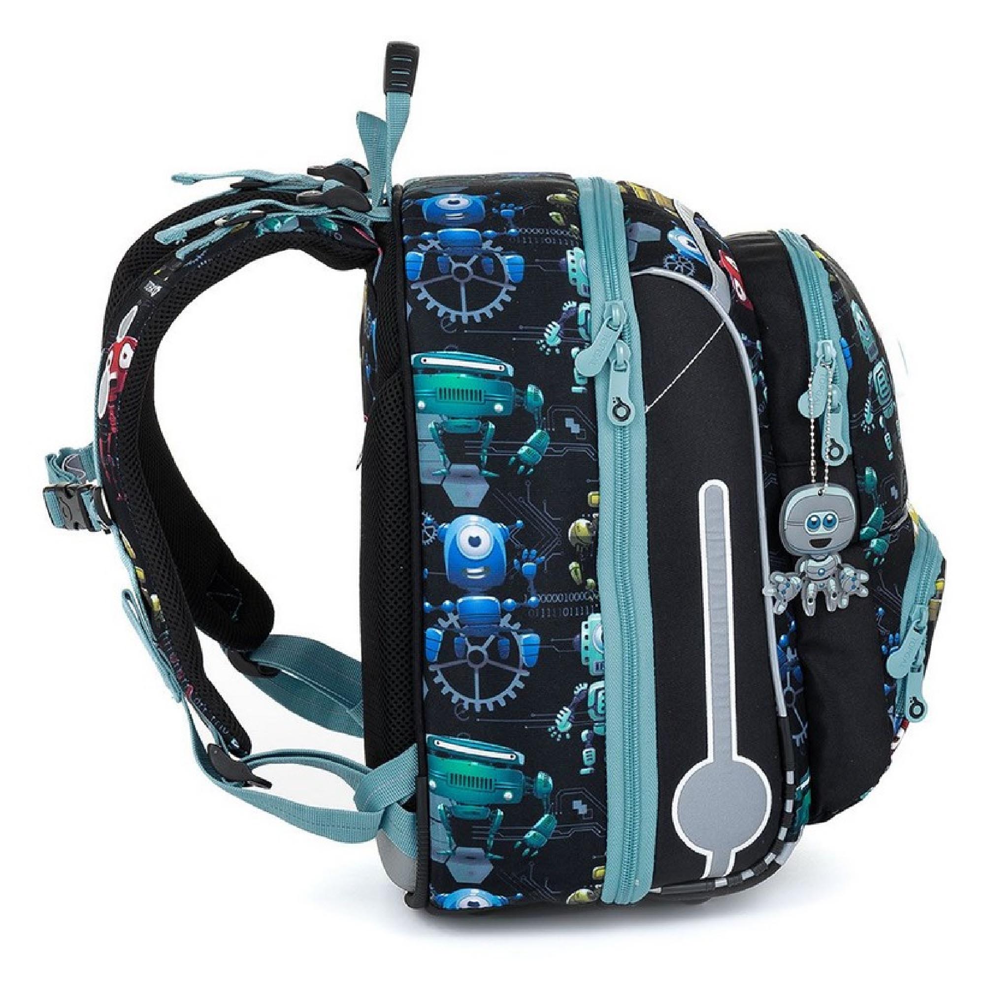 Model BEBE je nejmenší batoh z naší nabídky. Jde o kompromis mezi aktovkou a školním batohem, který jsme vyvinuli speciálně pro malé děti s výškou 110 cm. O nadčasovost designu se postará skupinka robotů. Protože co jiného s nastupující robotizací můžeme dát na klučičí batoh?!
