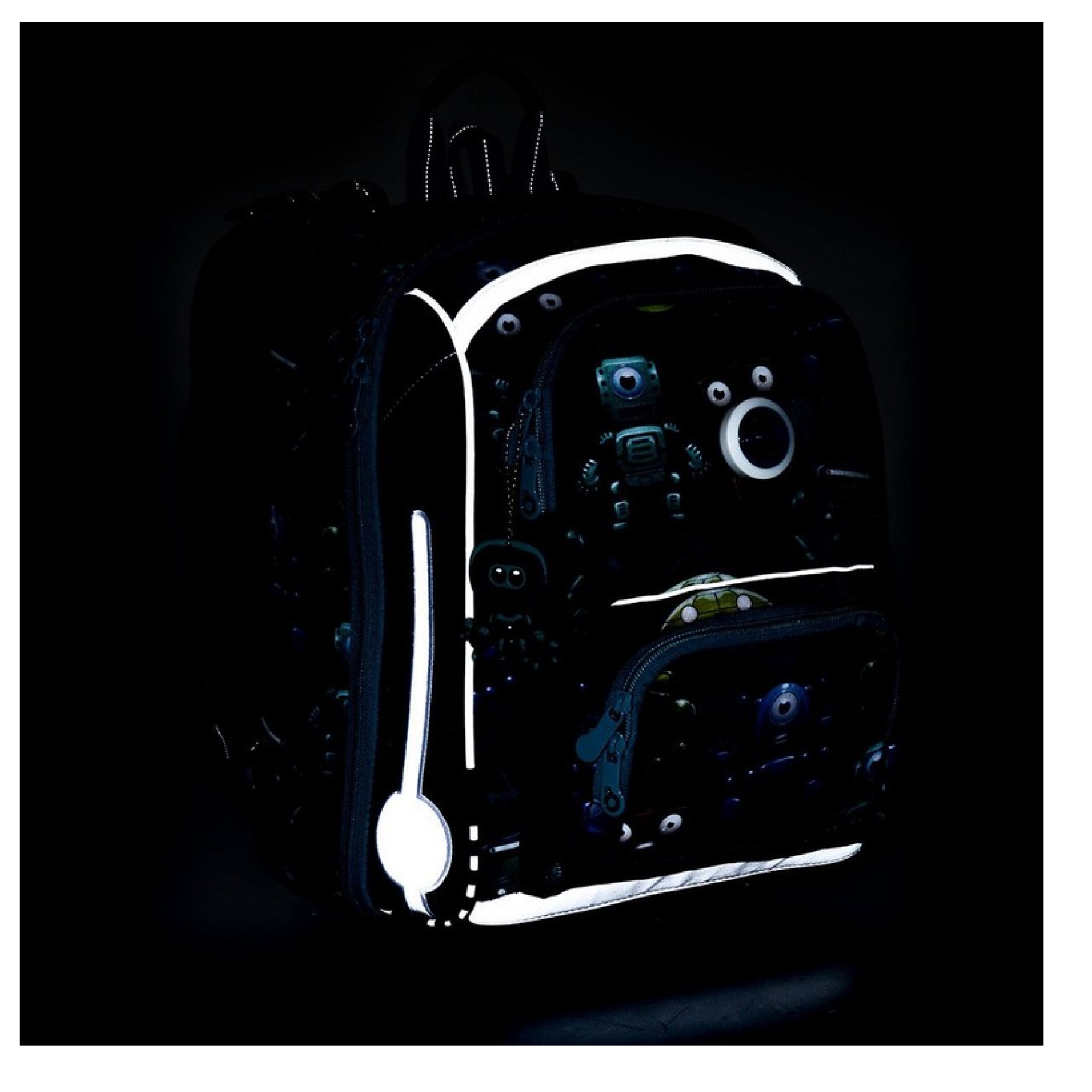 reflexní prvky - na čele a bocích batohu, na ramenních popruzích