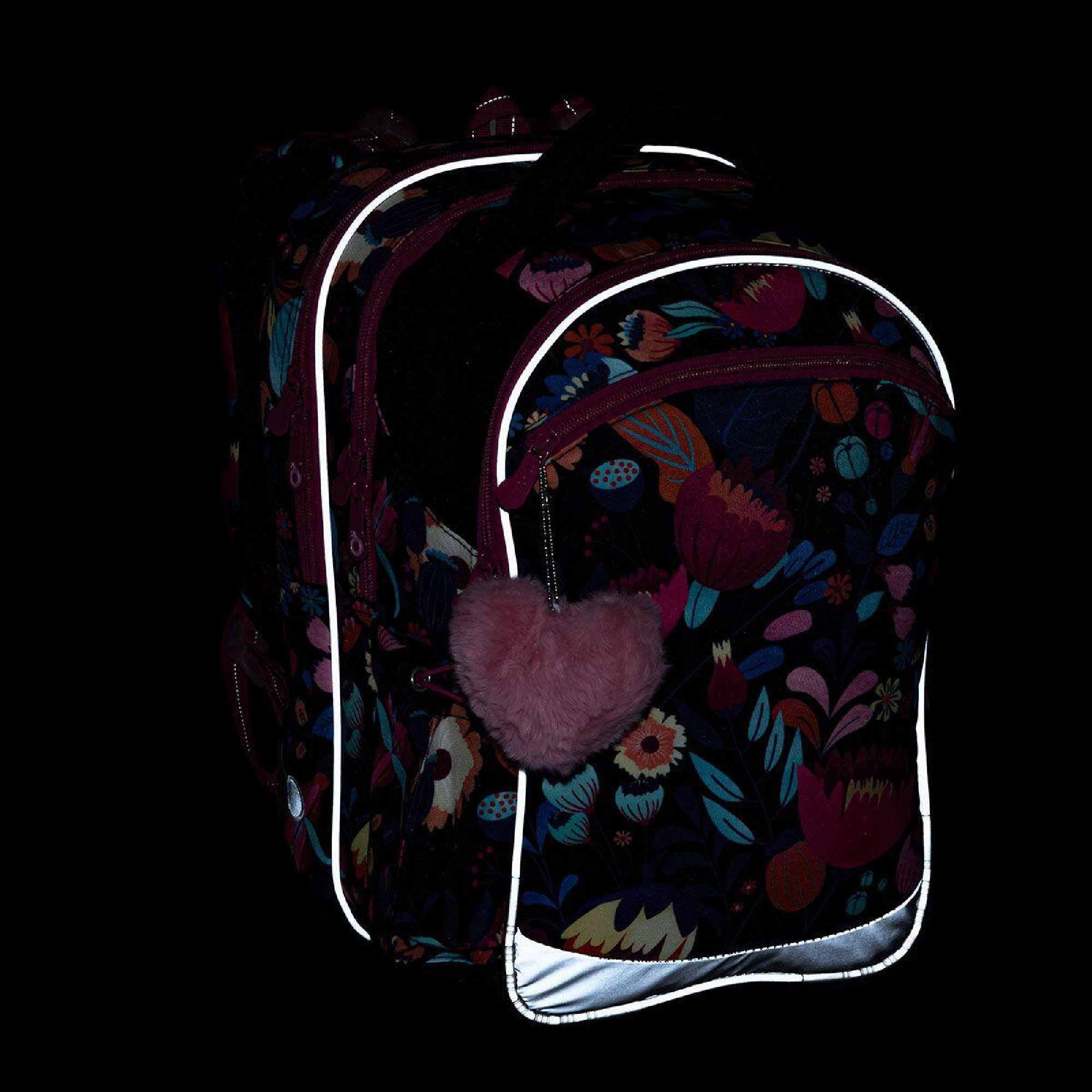 reflexní prvky - na čele a bocích batohu, na ramenních popruzích