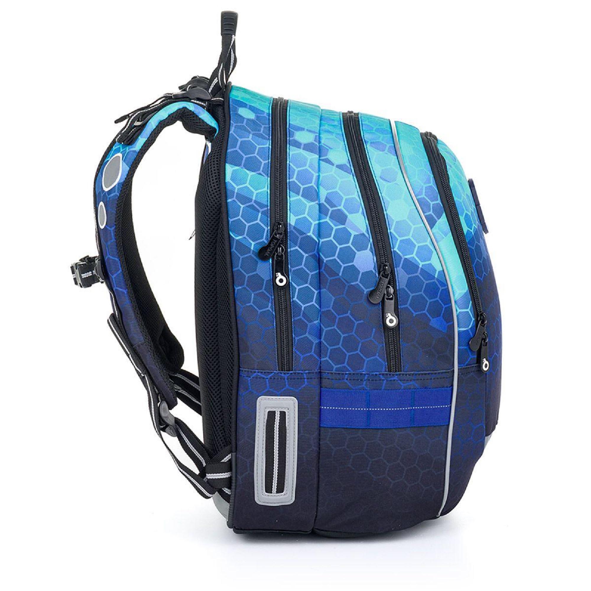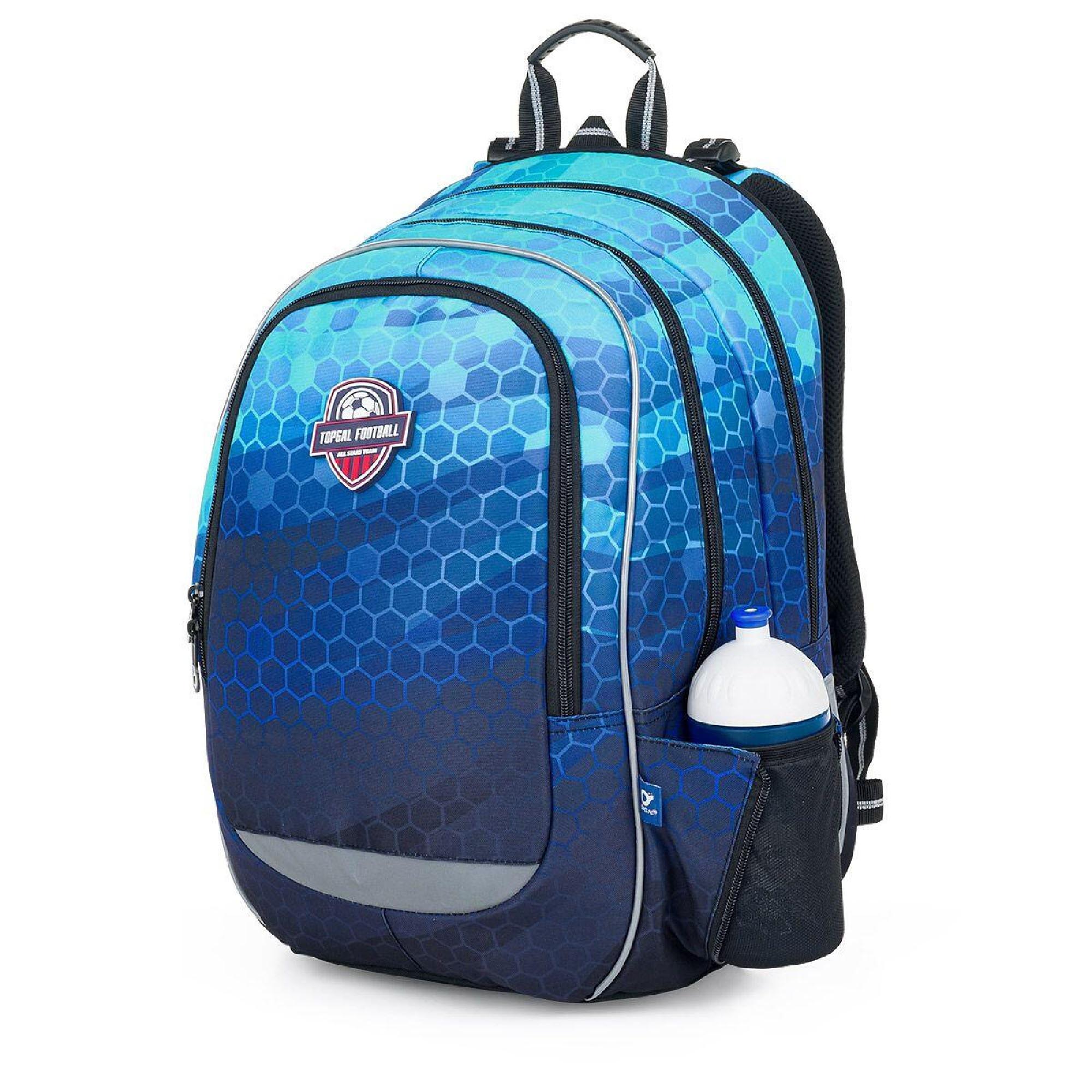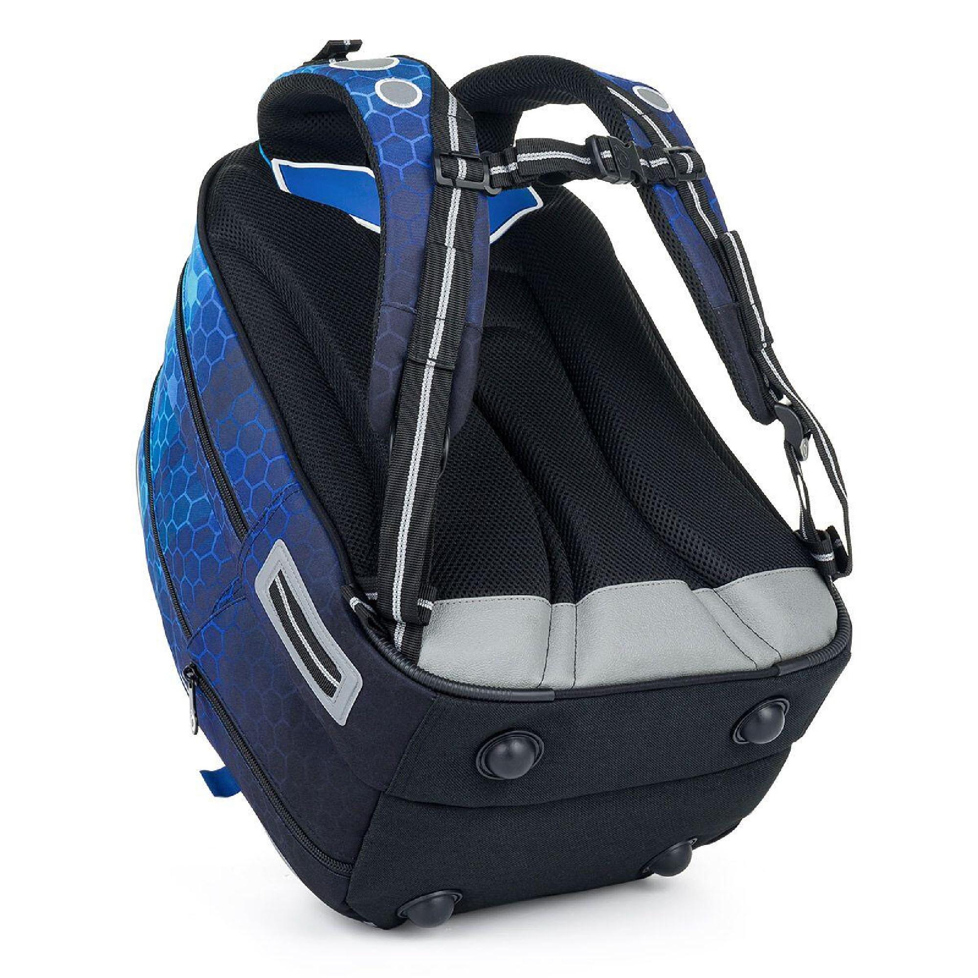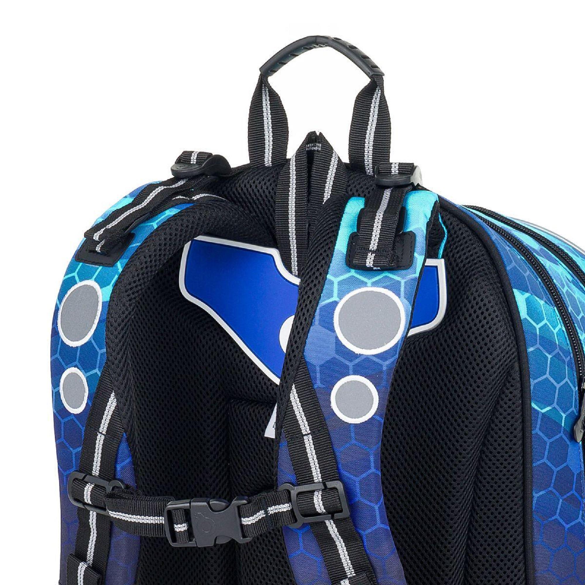 Batoh má dvě hlavní objemné komory. Zadní komora batohu je užší než přední, radíme do ní dát nejtěžší učivo a směrem dopředu odlehčovat. V přední komoře je umístěna síťová kapsa na zip a jmenovka.