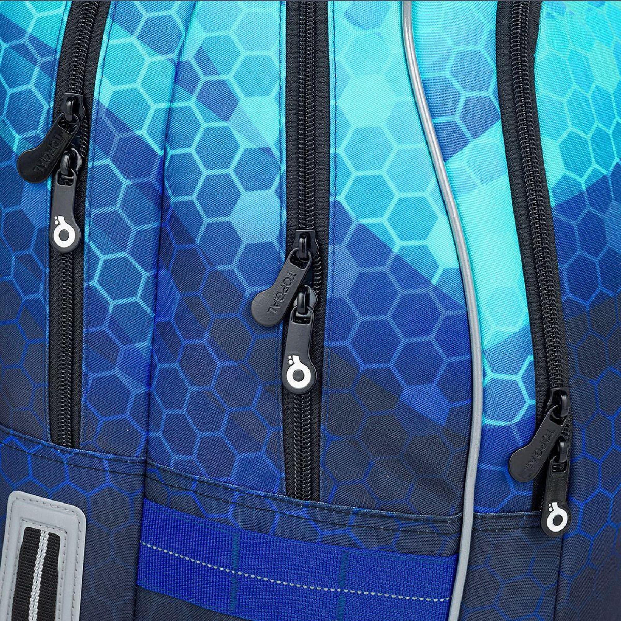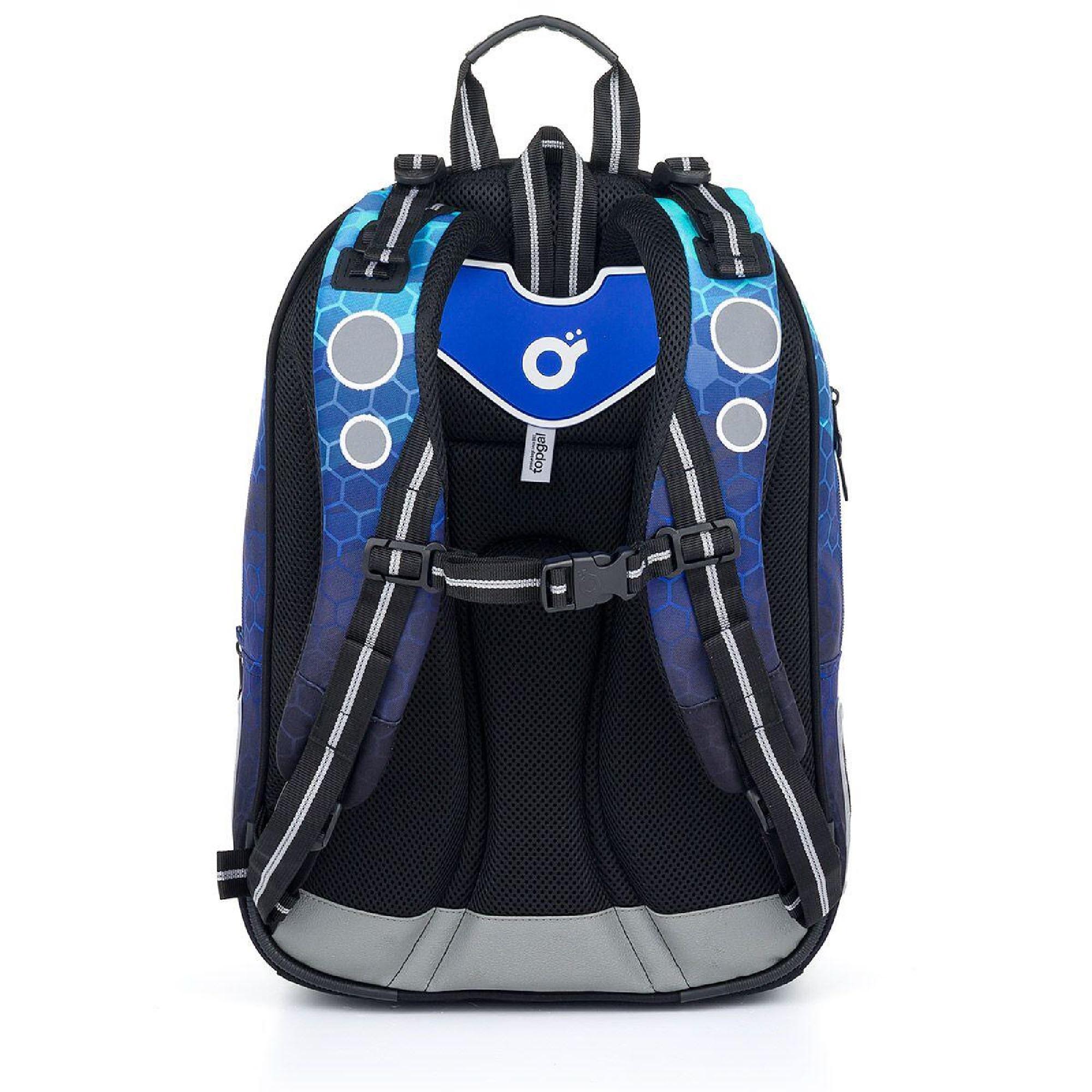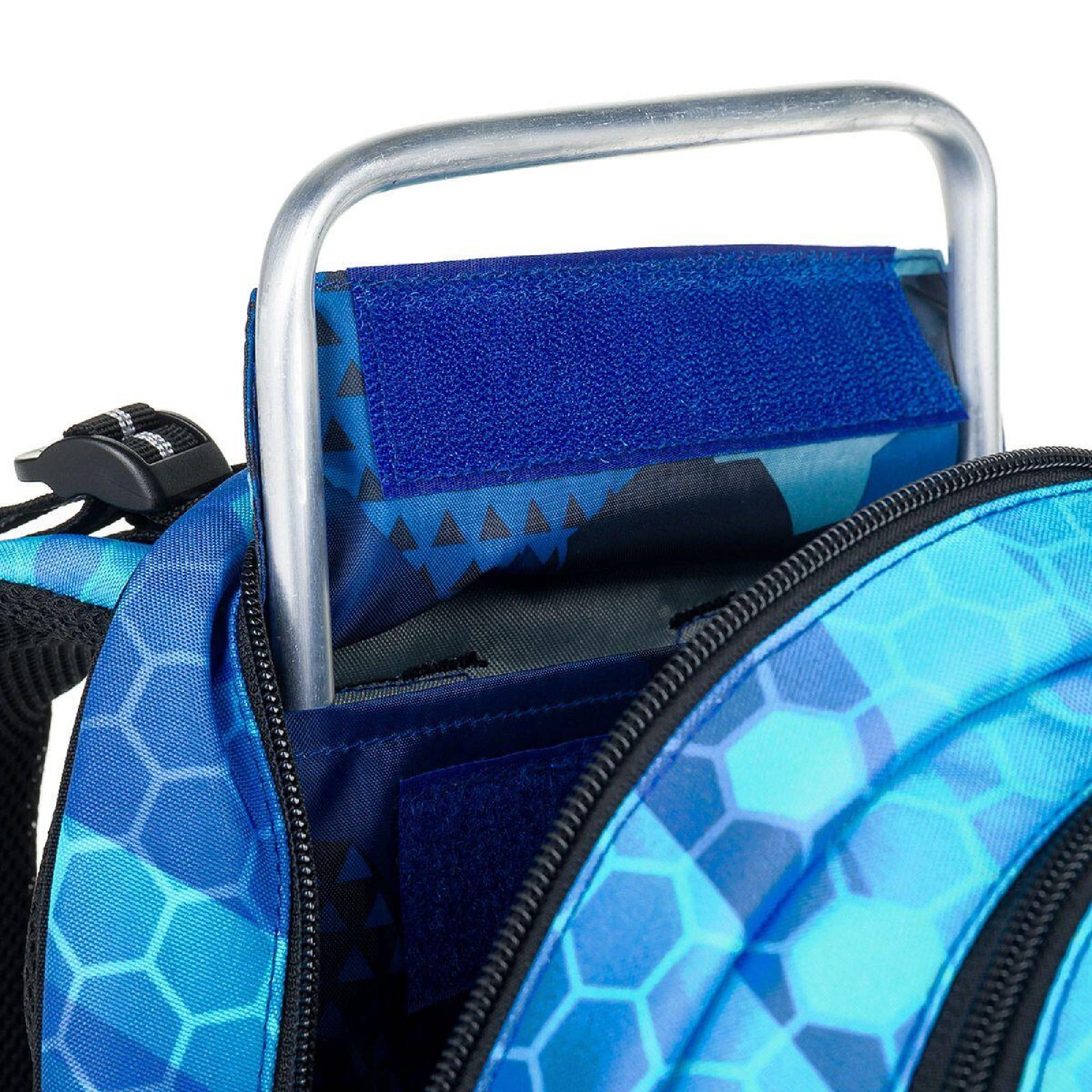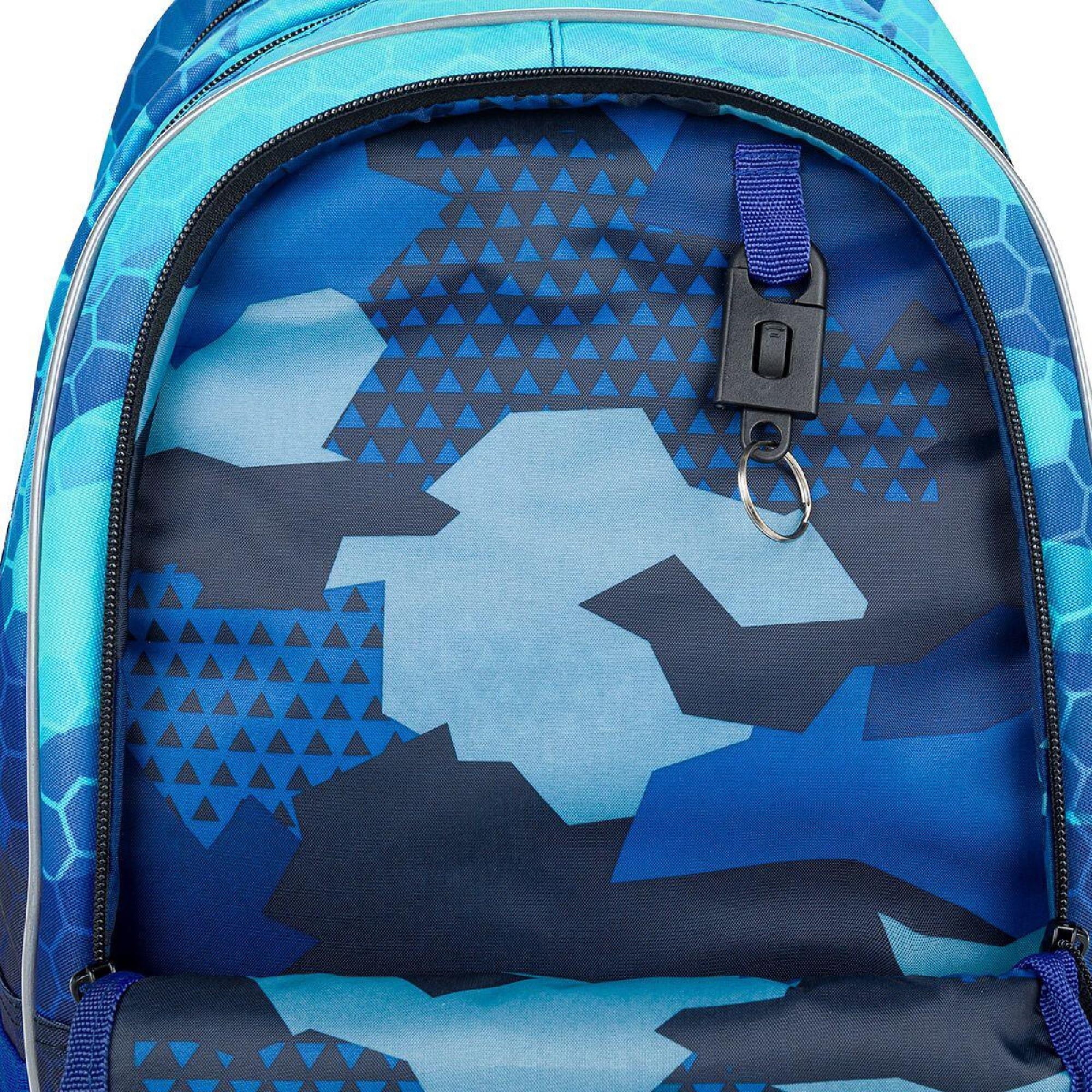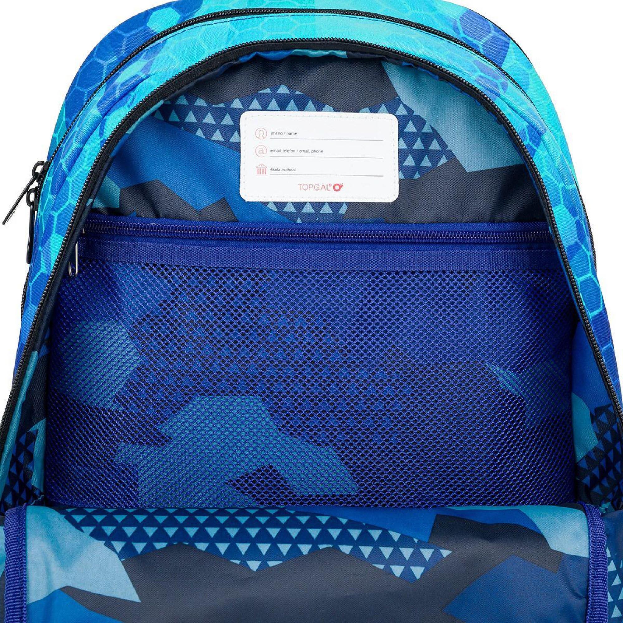 Batoh má dvě hlavní objemné komory. Zadní komora batohu je užší než přední, radíme do ní dát nejtěžší učivo a směrem dopředu odlehčovat. V přední komoře je umístěna síťová kapsa na zip a jmenovka.