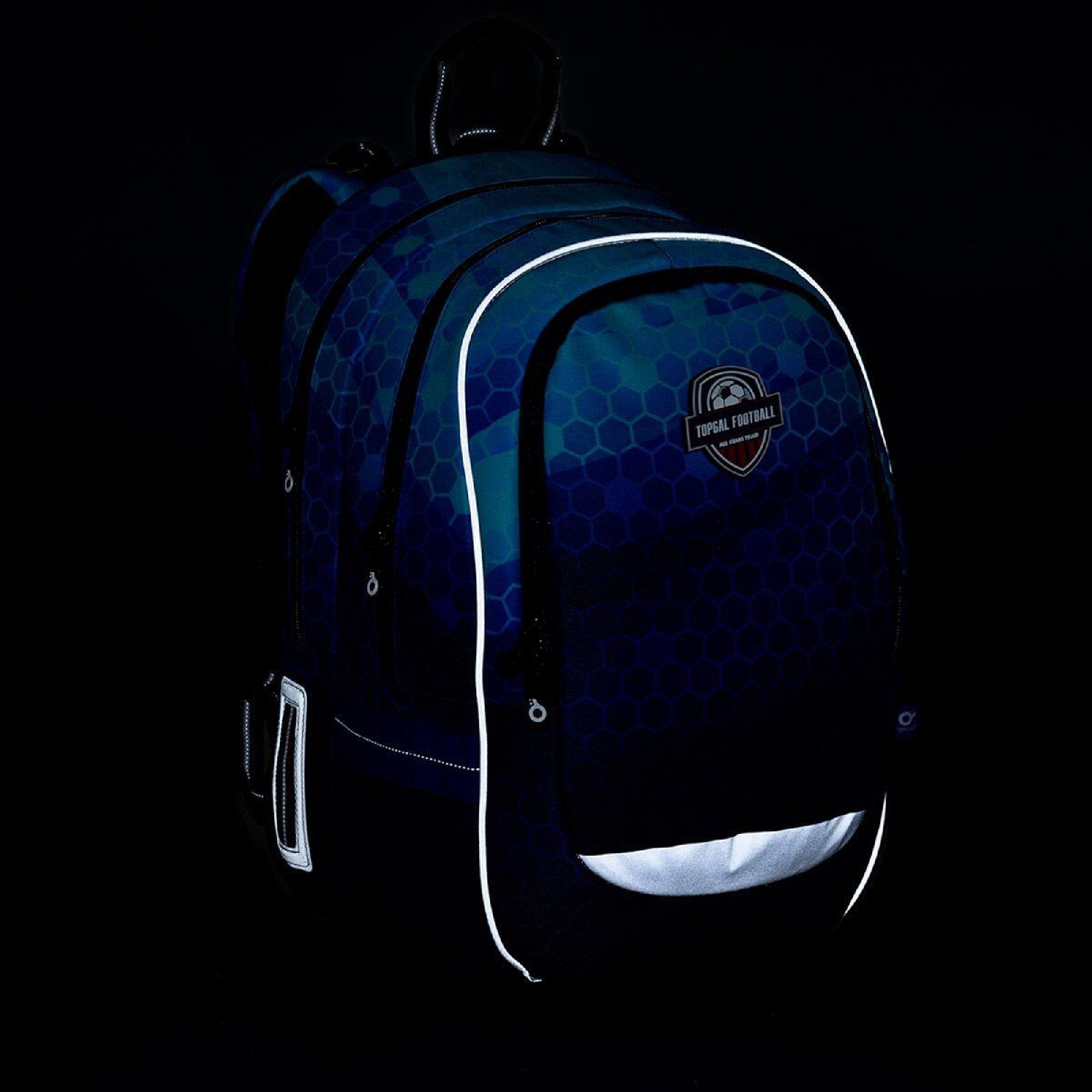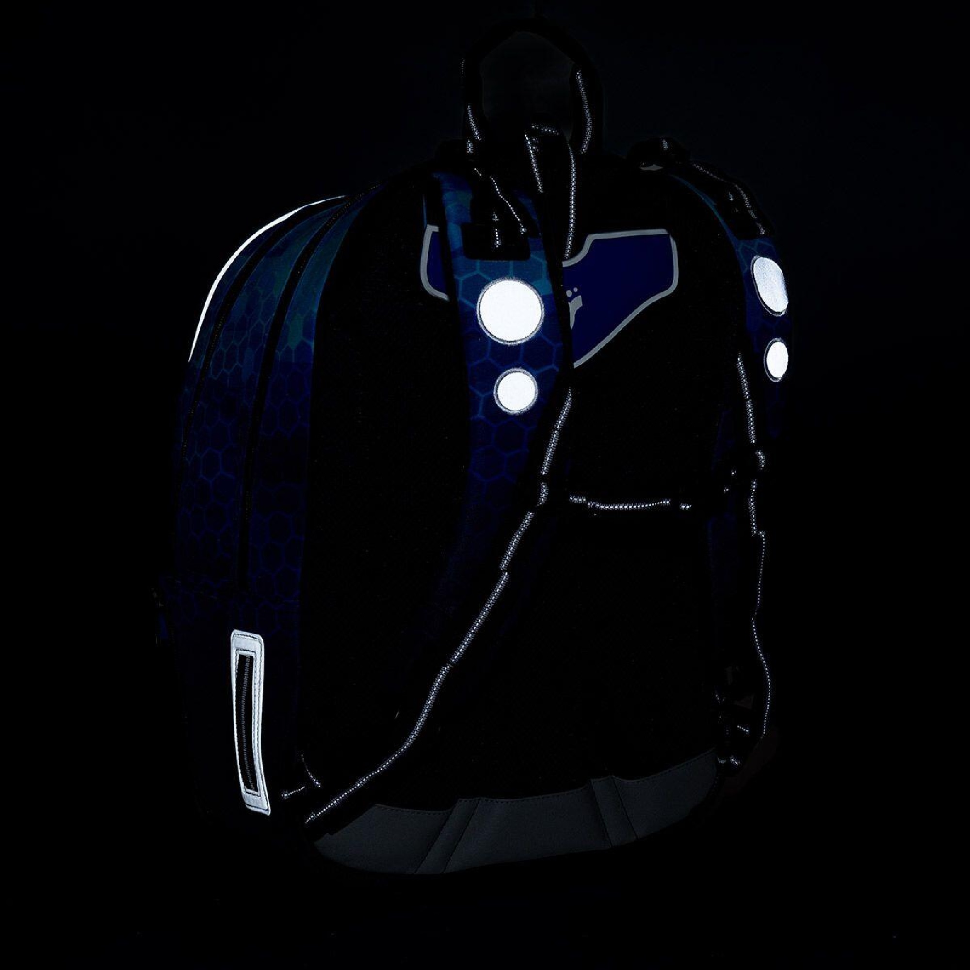 reflexní prvky: na čele a bocích batohu, na ramenních popruzích