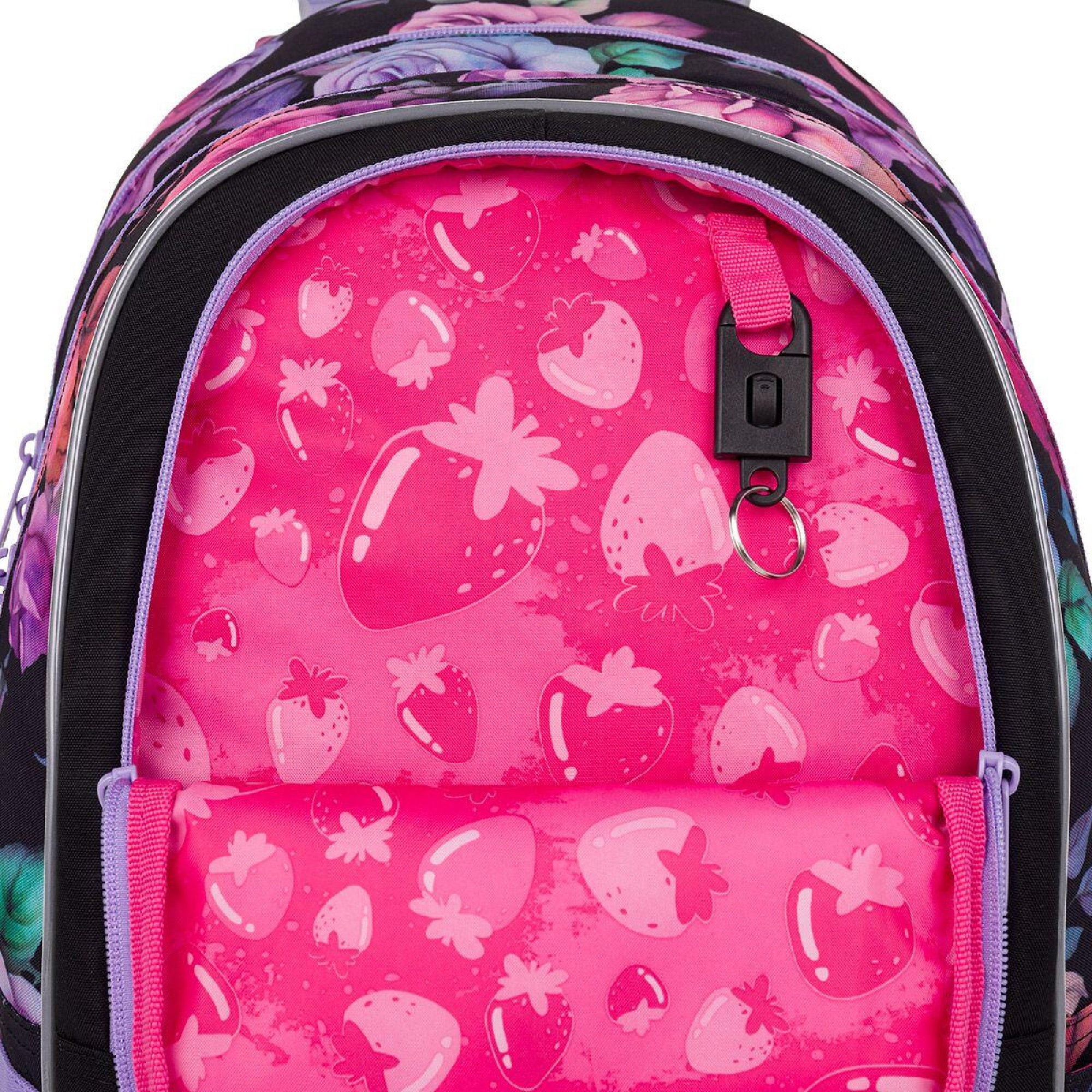 Batoh má dvě hlavní objemné komory. Do zadní komory doporučujeme dát nejtěžší učivo a směrem dopředu odlehčovat. V přední komoře je umístěna síťová kapsa na zip a jmenovka. Do hluboké kapsy na čele batohu se pohodlně vejde krabička na svačinku, nebo penálPENN 25009 ve stejném designu. Záda batohu jsou pevná, polstrovaná a anatomicky tvarovaná s hliníkovou výztuhou.