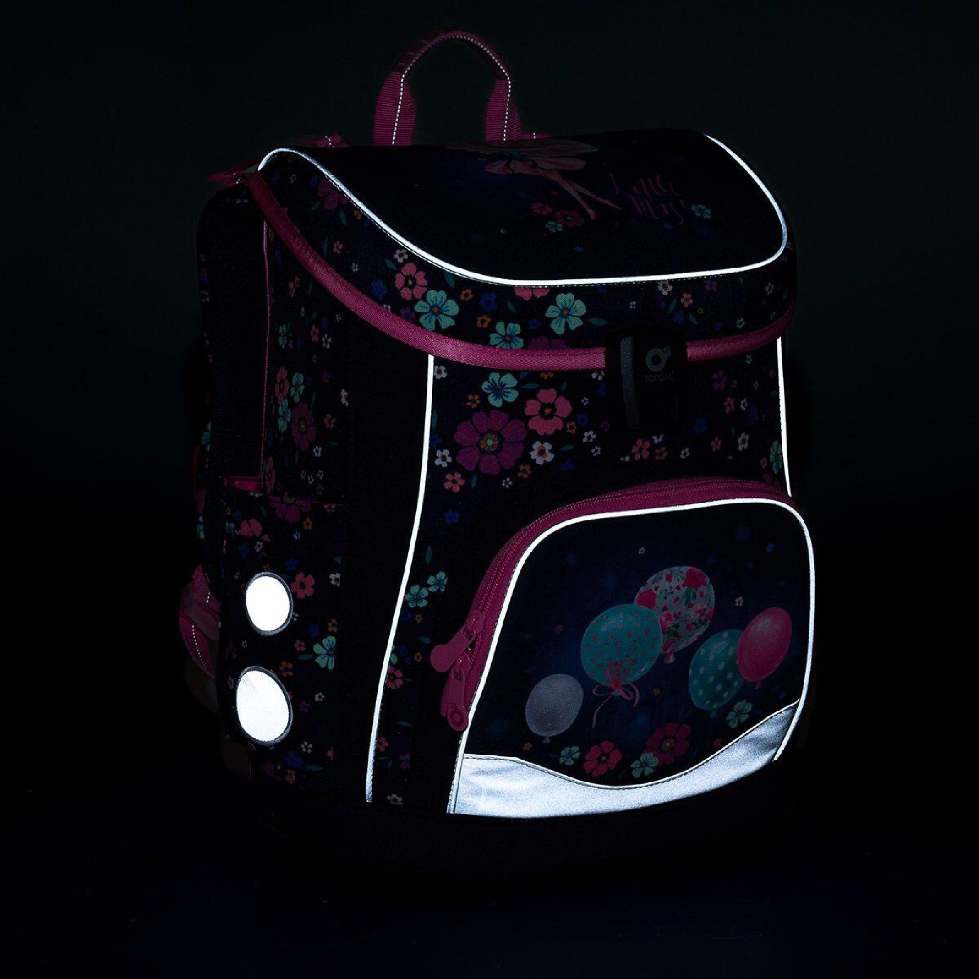 reflexní prvky: na čele a bocích batohu, na ramenních popruzích