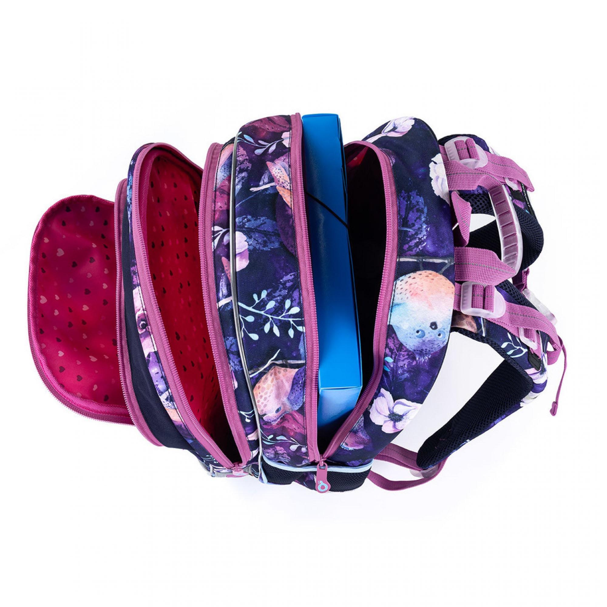 Zadní komora batohu ELLY je velmi objemná, dejte do ní nejtěžší učebnice a atlasy.