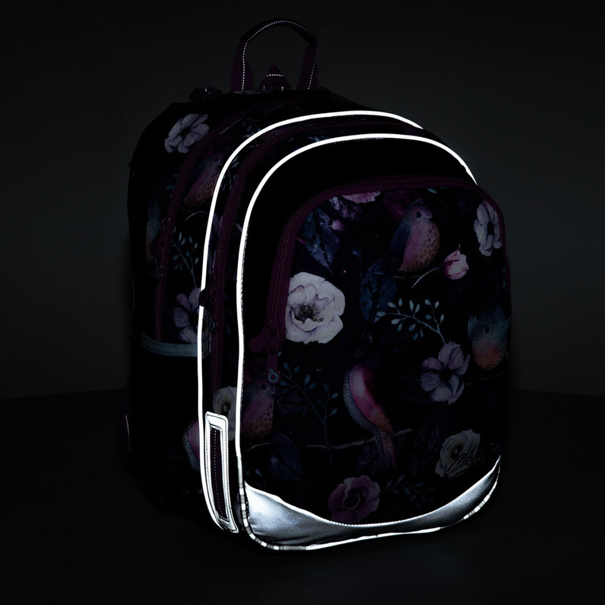 Batoh je doplněn reflexními prvky po všech stranách batohu i na ramenních popruzích.