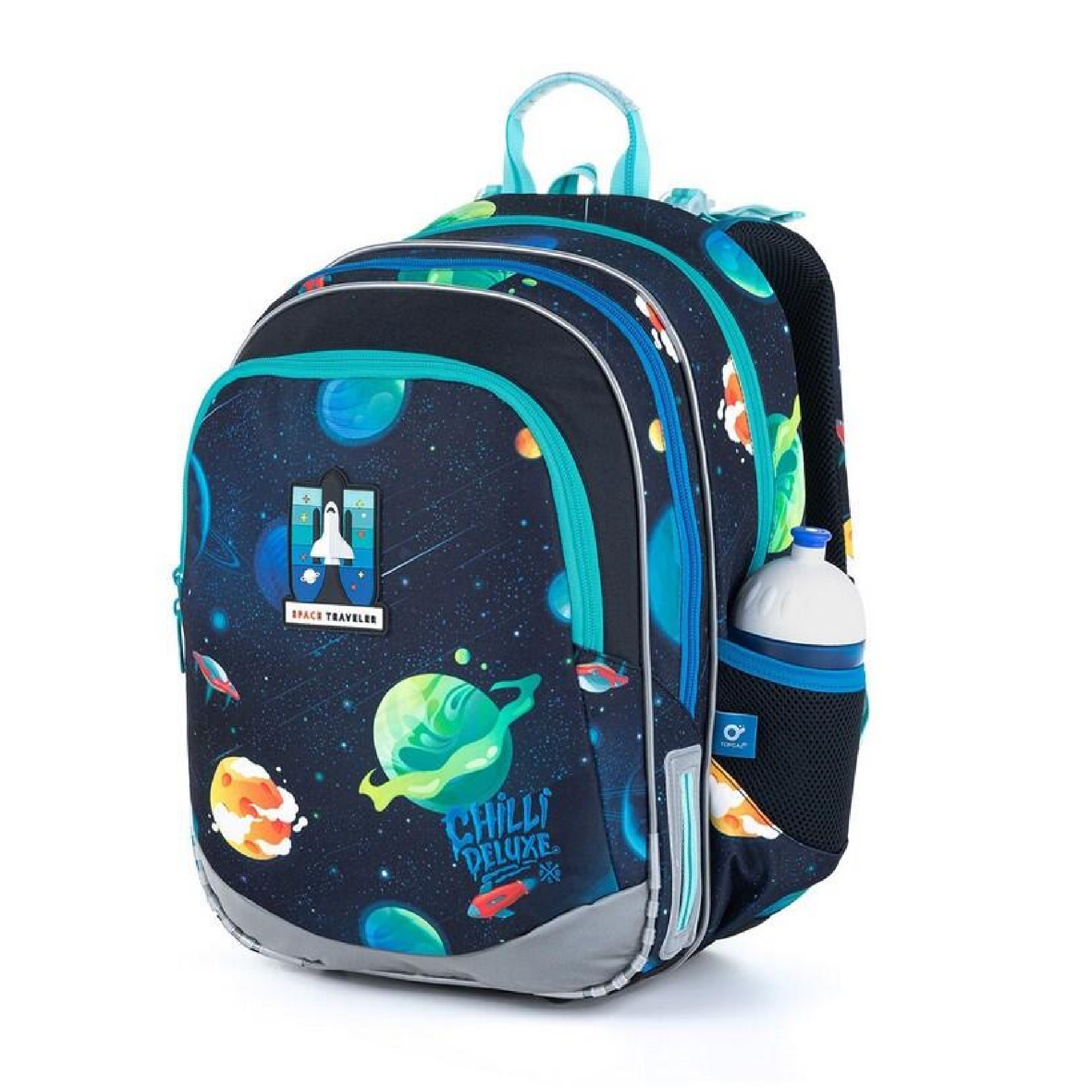 Astronauti připravit, výprava za školním dobrodružstvím je připravena! Nezapomeňte s sebou dvoukomorový batoh ELLY 21015, který je díky své super lehké váze samozřejmou výbavou pro všechny astronauty na prvním stupni s výškou nad 120 cm.