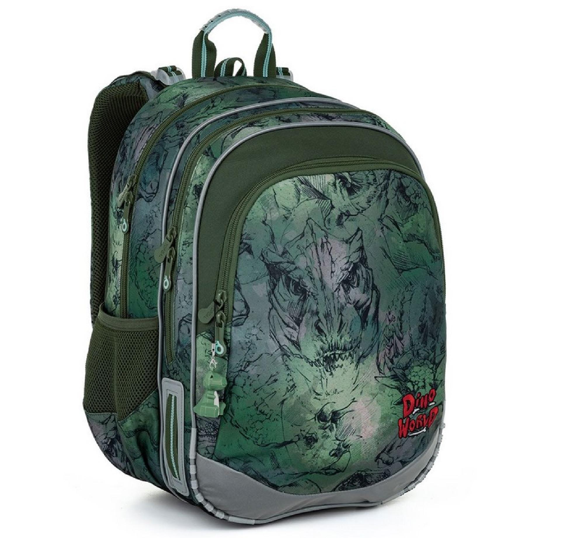Dino motiv kluci prostě milují, proto se jej snažíme každý rok připravit. Letos padla volba na lehký střih batohu ELLY, který pojme všechno učení od 1. do 4. třídy, proto jsme motiv dino pojali realistickými kresbami pravěkých tvorů. Menší kluci určitě ocení přívěsek s plastovým krokodýlem, rodiče pak lehkou váhu batohu.