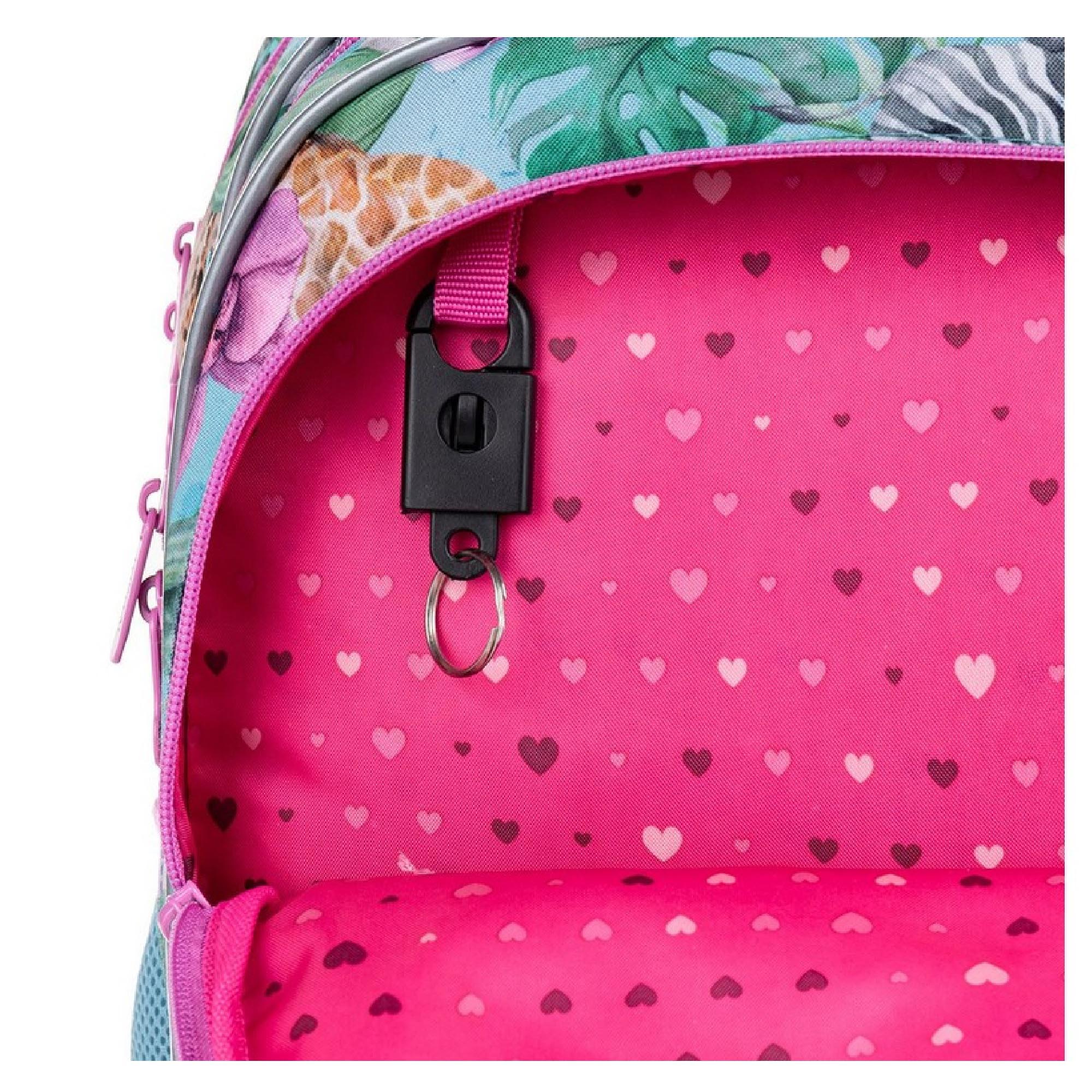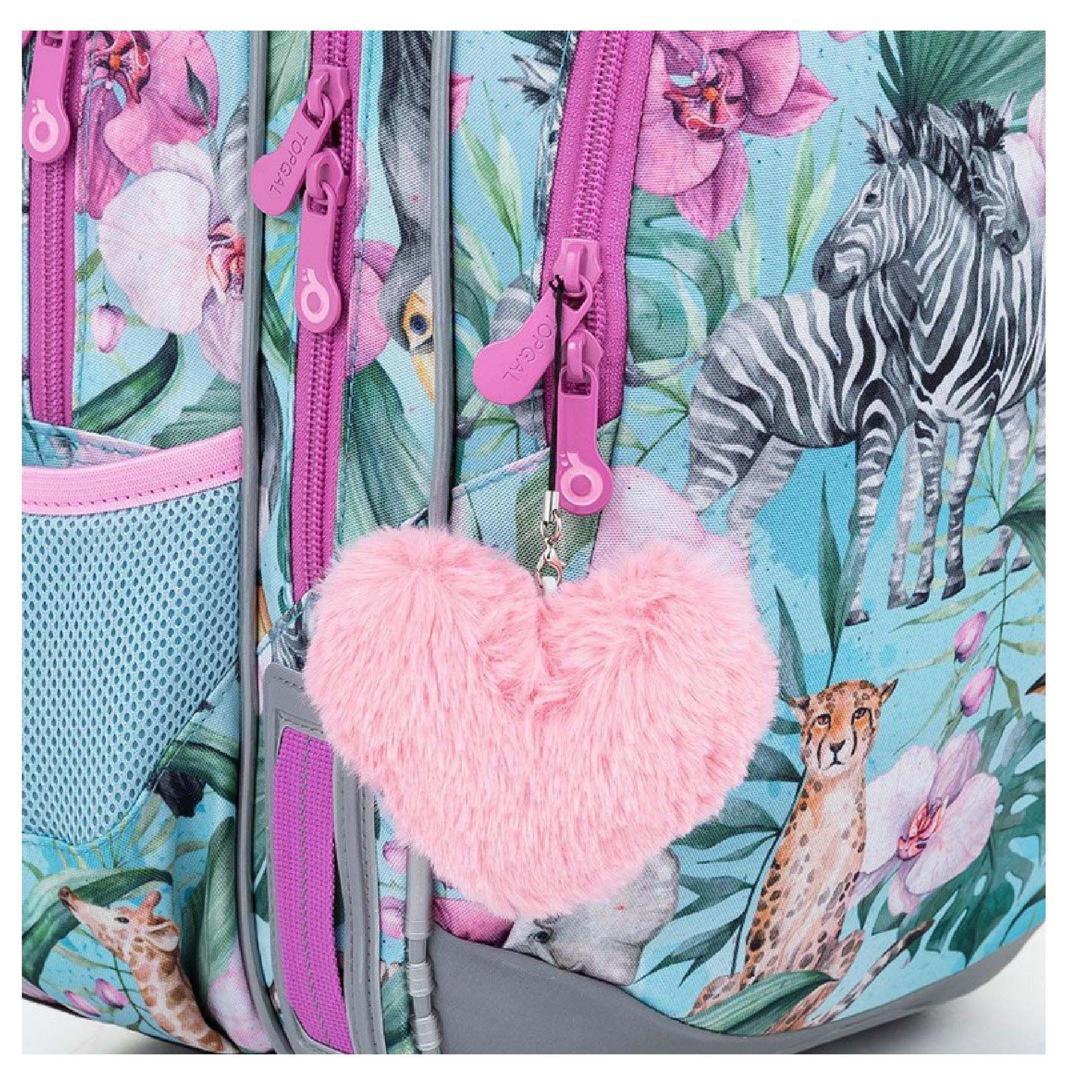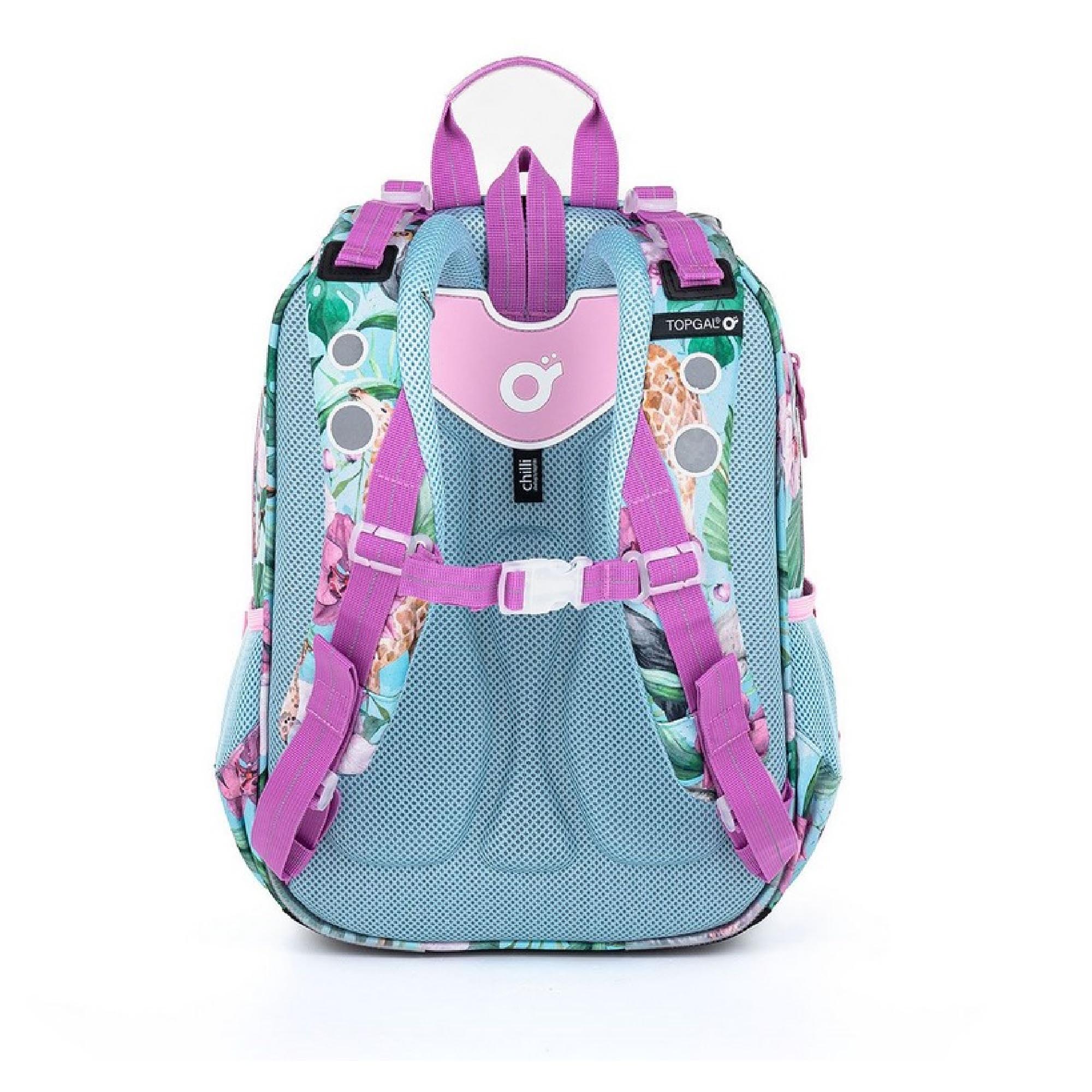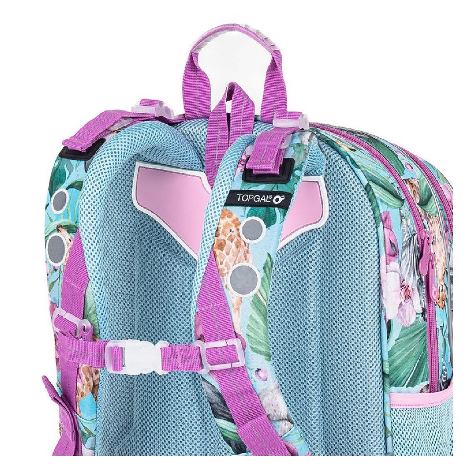 Model ELLY neváží ani kilogram, proto je ideální pro holčičky od první až do čtvrté třídy ZŠ. Rozkvetlé Safari plné žiraf, zeber, gepardů a tukanů navštívila také plyšová panda.