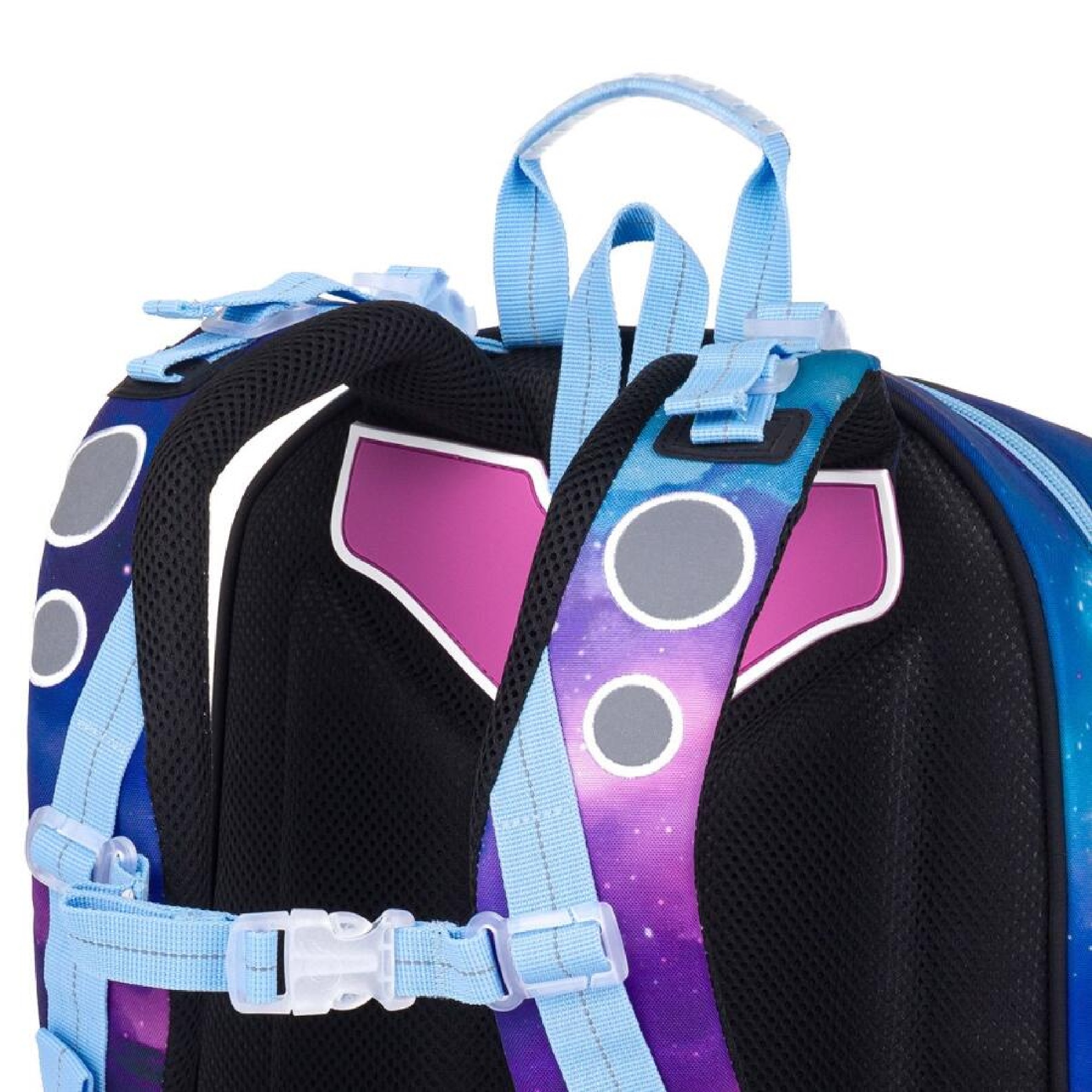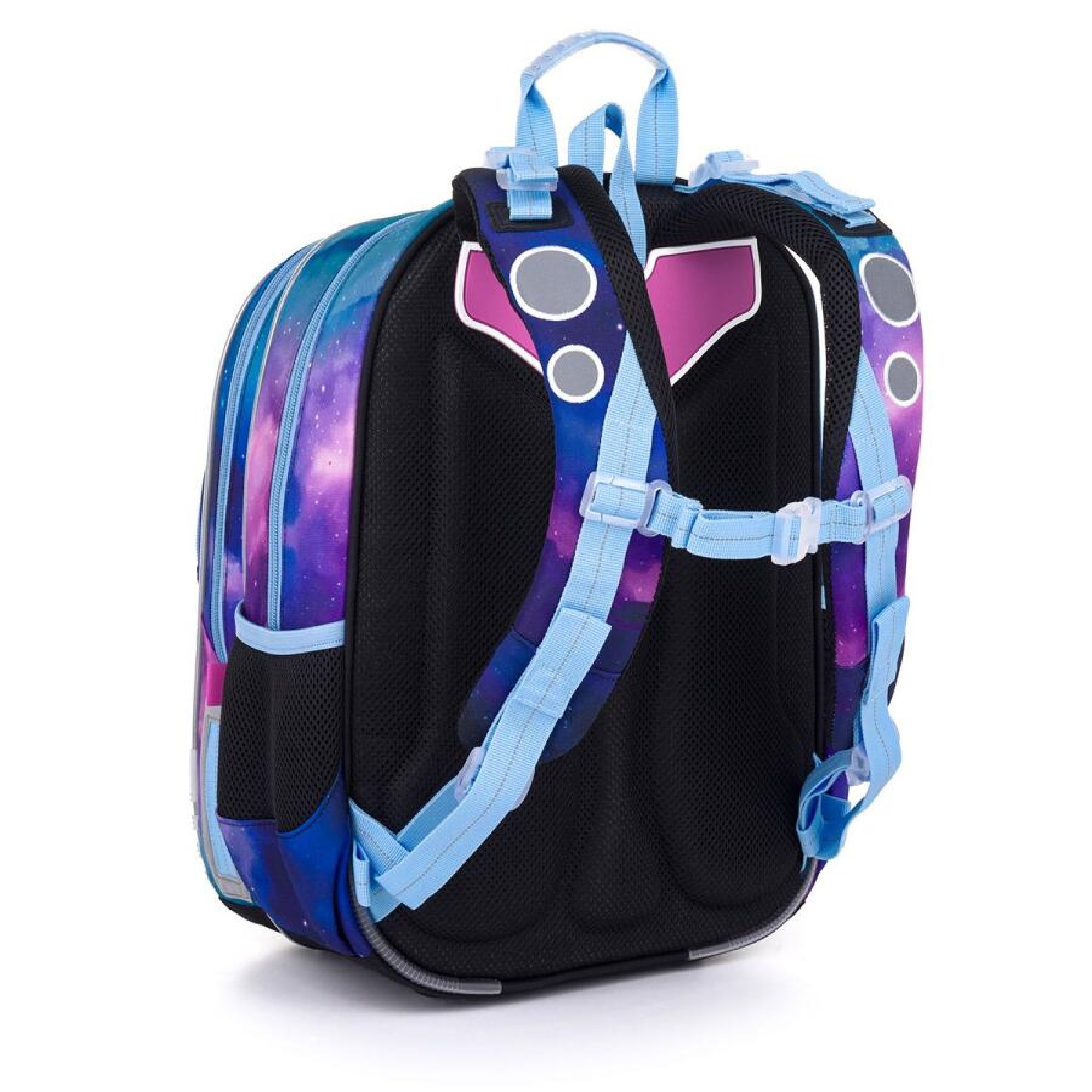 reflexní prvky: na čele a bocích batohu, na ramenních popruzích