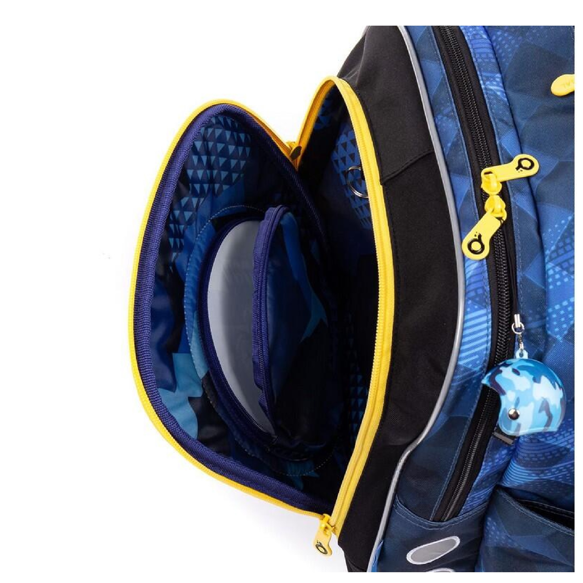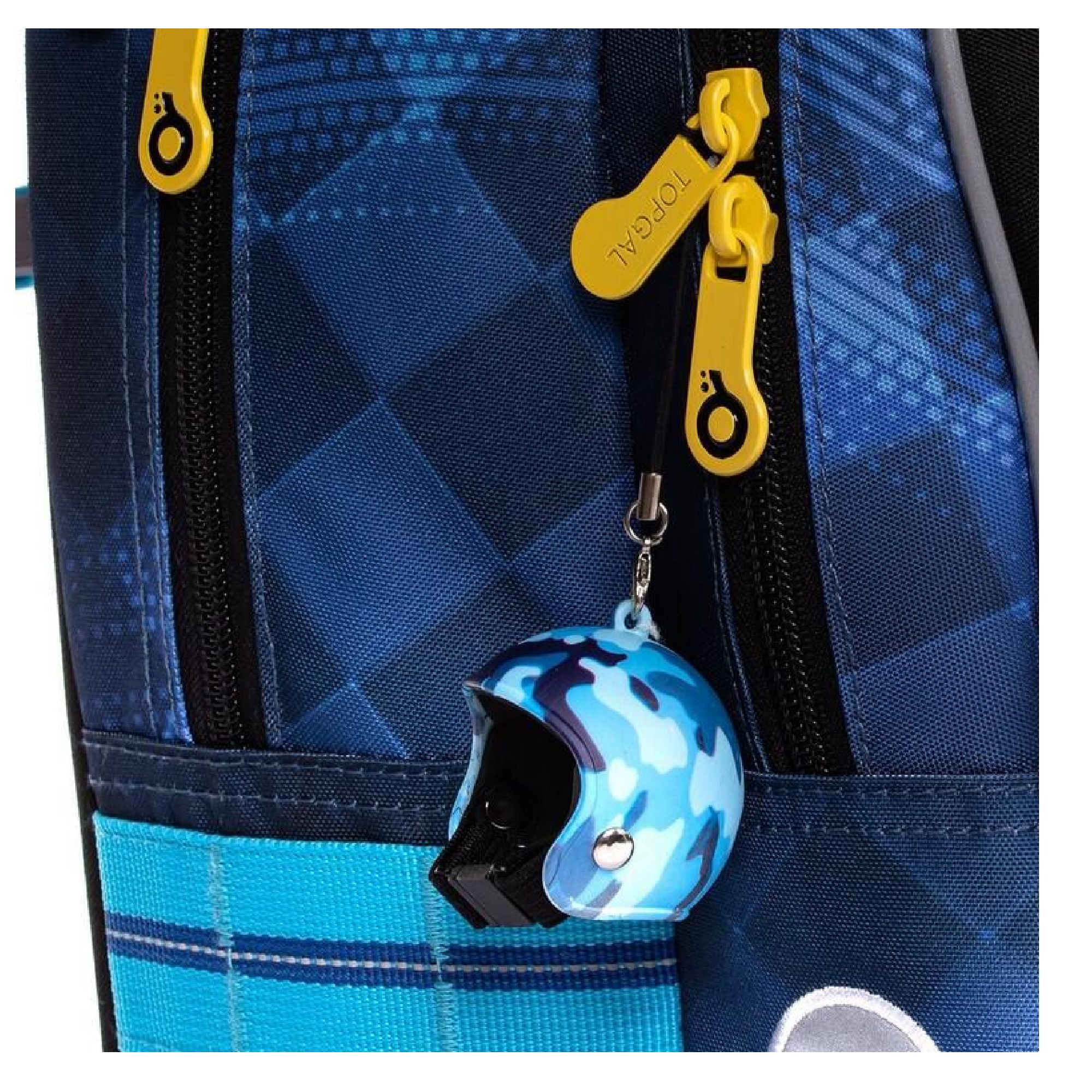 Nejtěžší školní potřeby dávejte vždy do zadní komory. Ta je širší než přední a pojme vše potřebné do prvních tříd ZŠ. Přední, užší komora unese vše ostatní a navíc v ní určitě využijete praktickou síťovou kapsu na zip. Jmenovka ukrytá v přední kapse nas síťovou kapsičkou pomůže batohy rozeznat, i když se ve třídě sejdou dva stejné. Jako bonus najdete na zipu přední kapsy přívěsek – parádní miniaturní motorkářskou helmu! Ale pšt, radši to neříkejte ségře, sedí totiž i na hlavu Bárbínám…