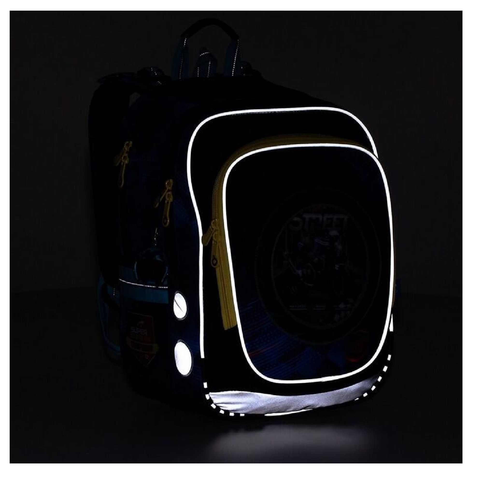 Reflexní prvky se budou zamlouvat hlavně rodičům, obzvlášť v zimním období. Proto jsme jimi na batohu opravdu nešetřili. Přesvědčit se můžete v detailních fotkách, kde máme batoh nafocený i ve tmě.