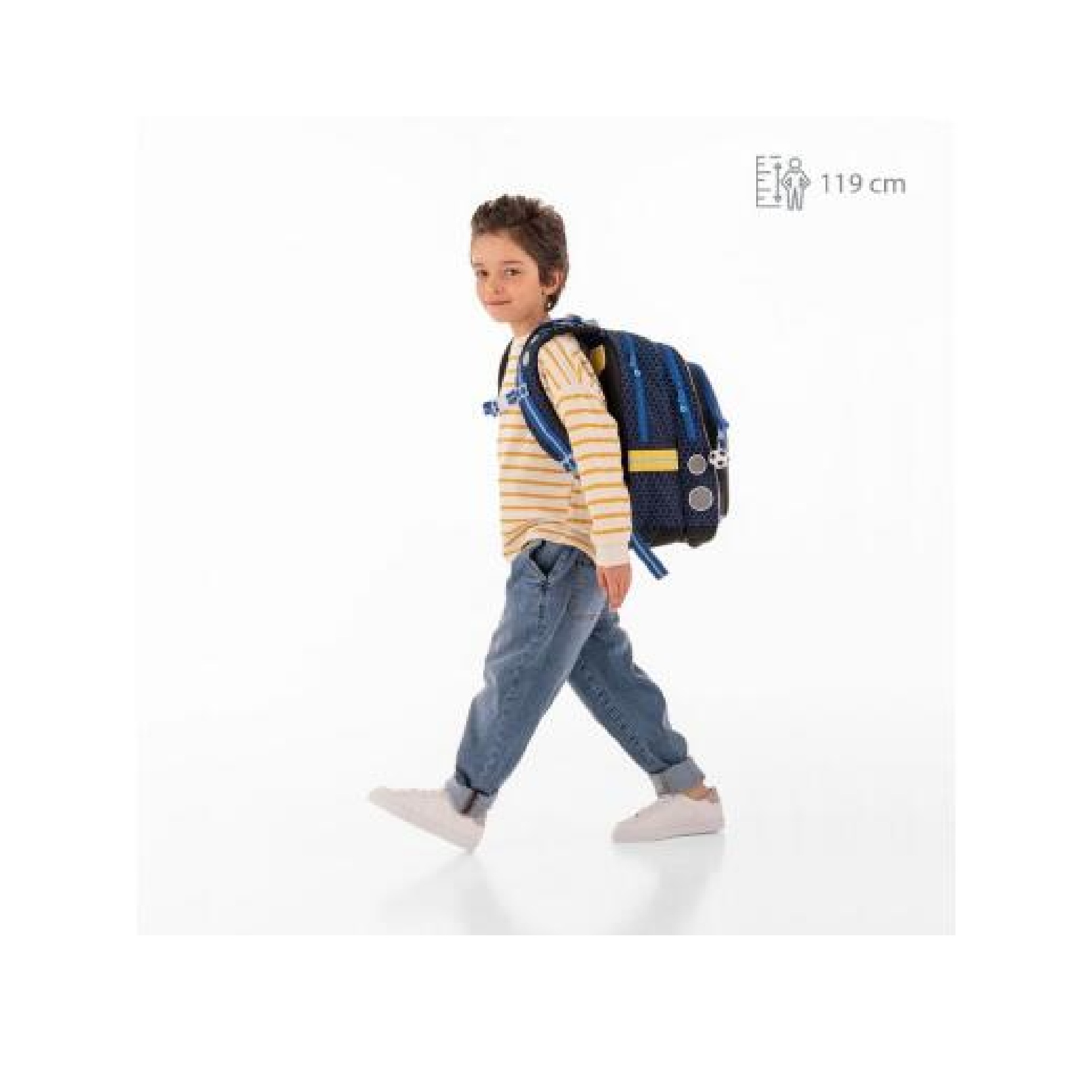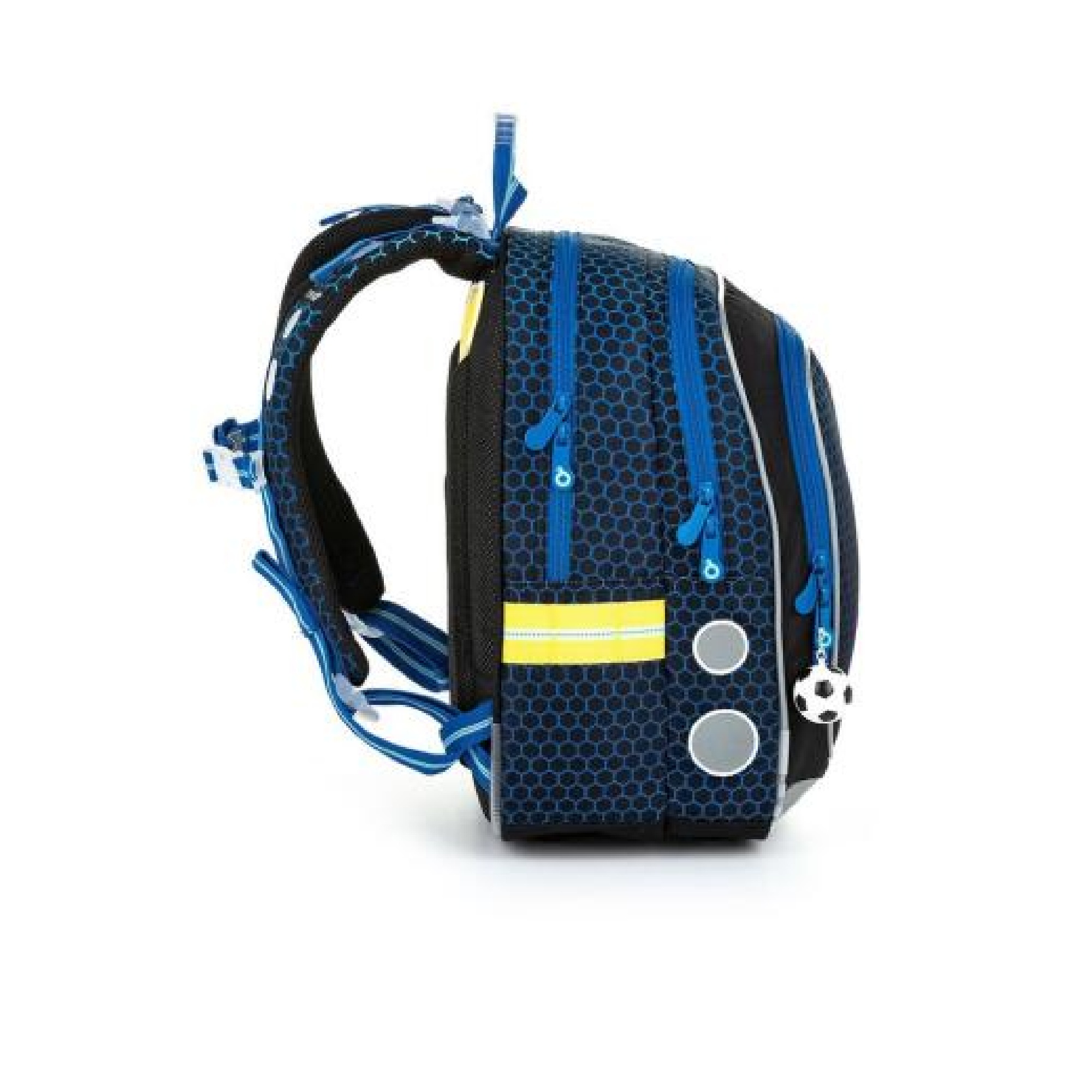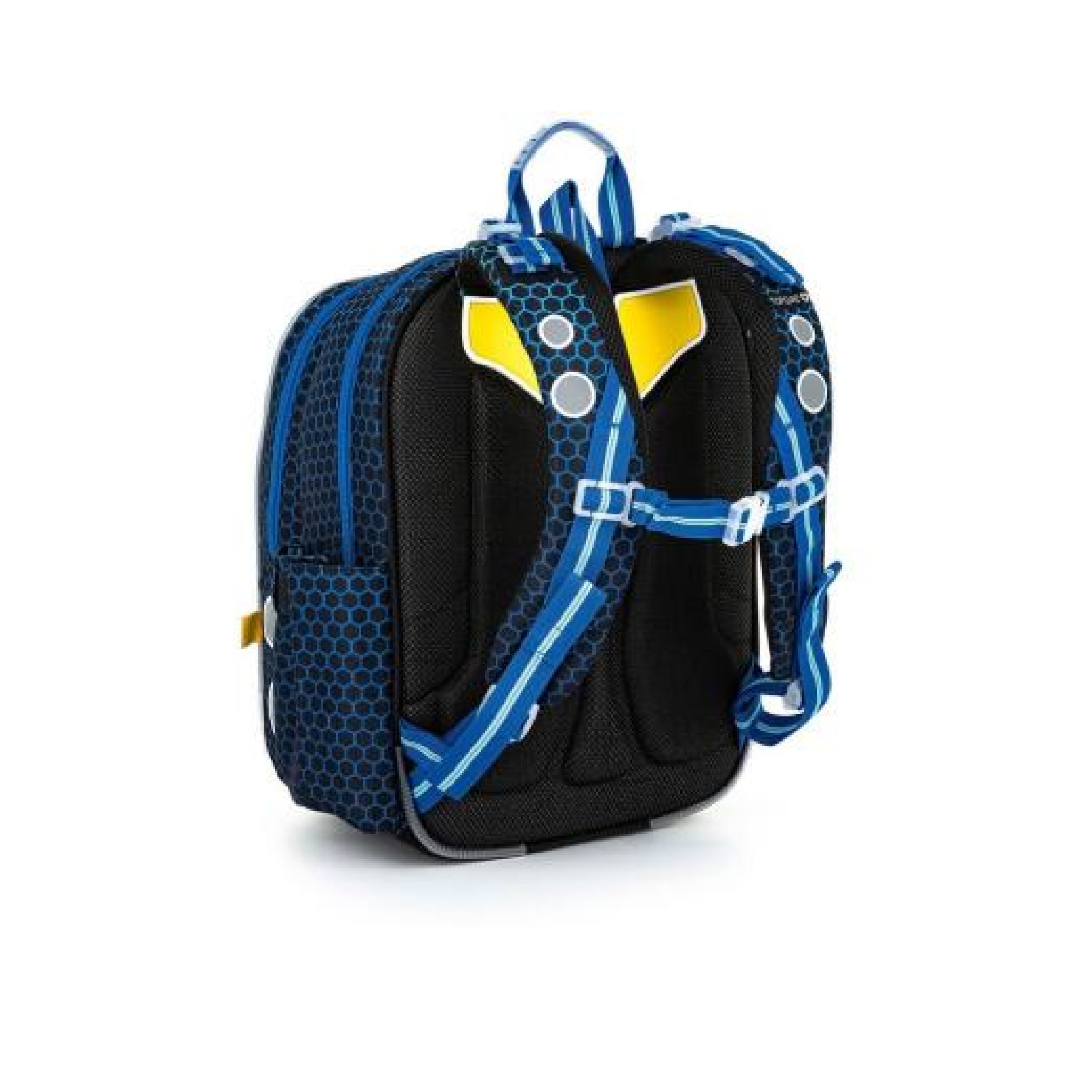 Výškově nastavitelný hrudní pásek zajistí, že popruhy nebudou sjíždět ani z drobných zad. Nejtěžší školní potřeby dávejte vždy co nejblíže zádům do zadní komory. Ta je širší než přední komora a pojme vše potřebné do prvních tříd ZŠ. Přední, užší komora, unese vše ostatní a navíc v ní určitě využijete praktickou síťovou kapsu na zip. Jmenovka nad síťovou kapsičkou pomůže batohy rozeznat, i když se ve třídě sejdou dva stejné batohy.