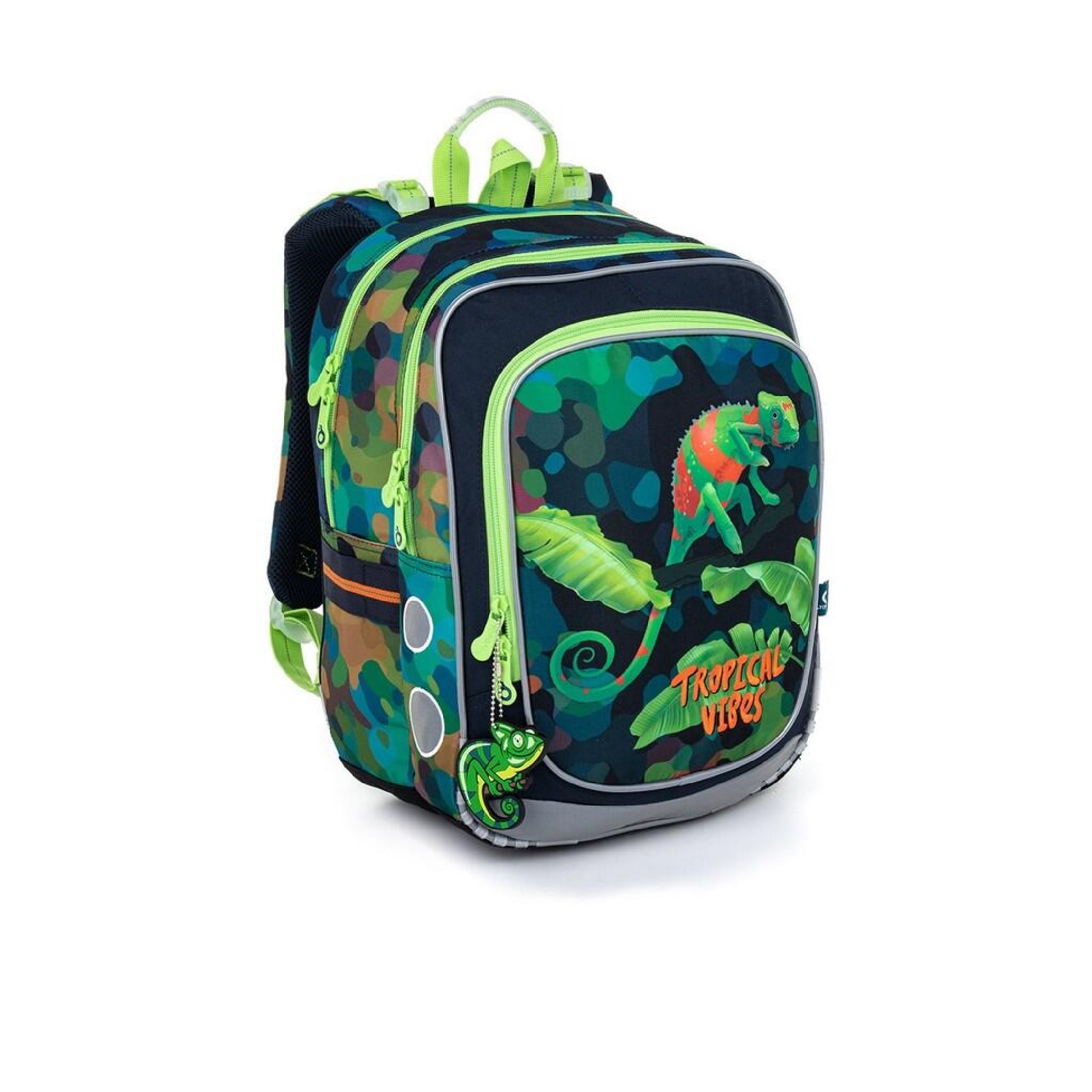 Model ENDY neváží ani kilogram, proto je ideální pro menší kluky (i holky) od první až do třetí třídy ZŠ. S tímto zeleným “chameleoním” batohem ale nikdo s davem nesplyne. Batoh doplní krásný gumový přívěsek!