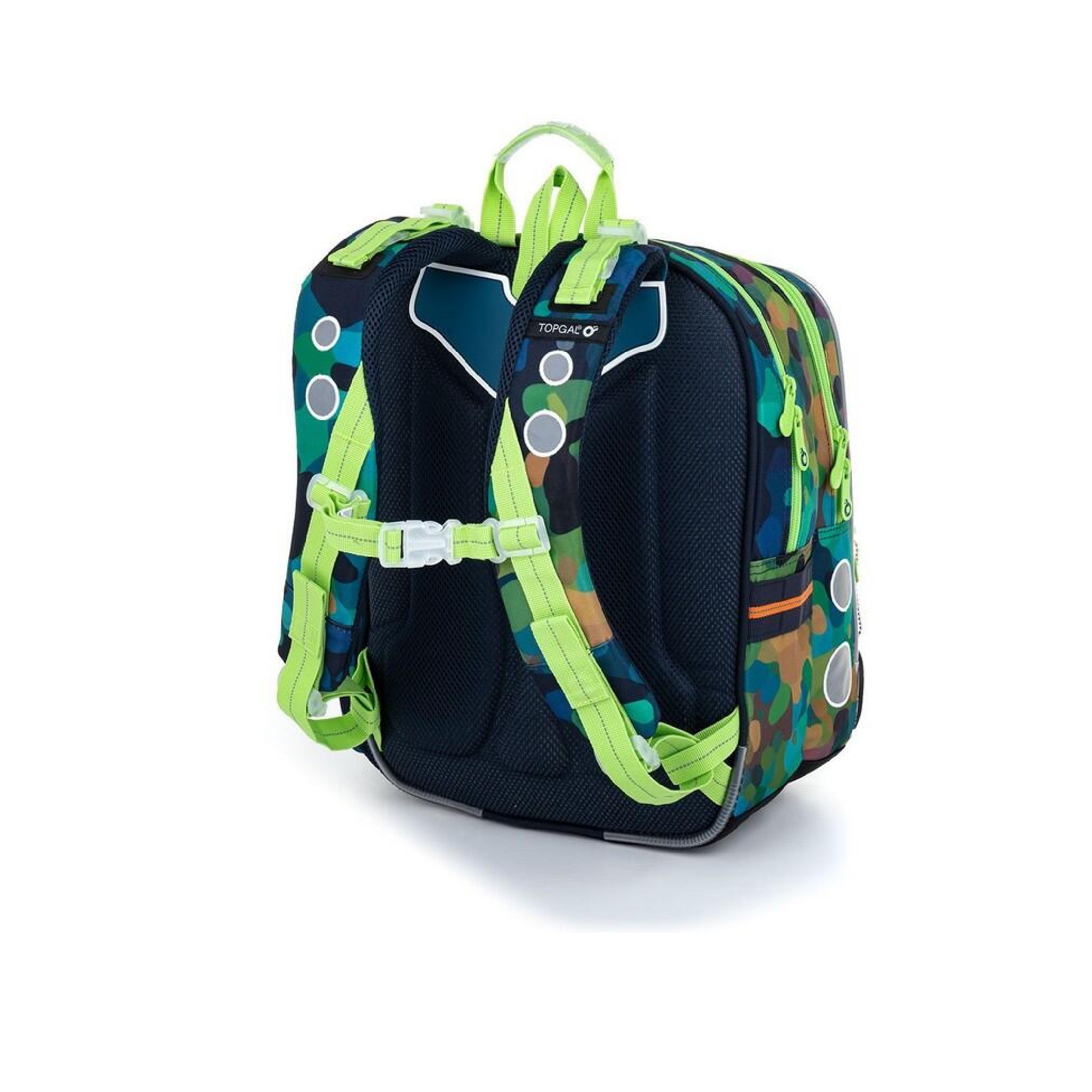 reflexní prvky - na čele a bocích batohu, na ramenních popruzích