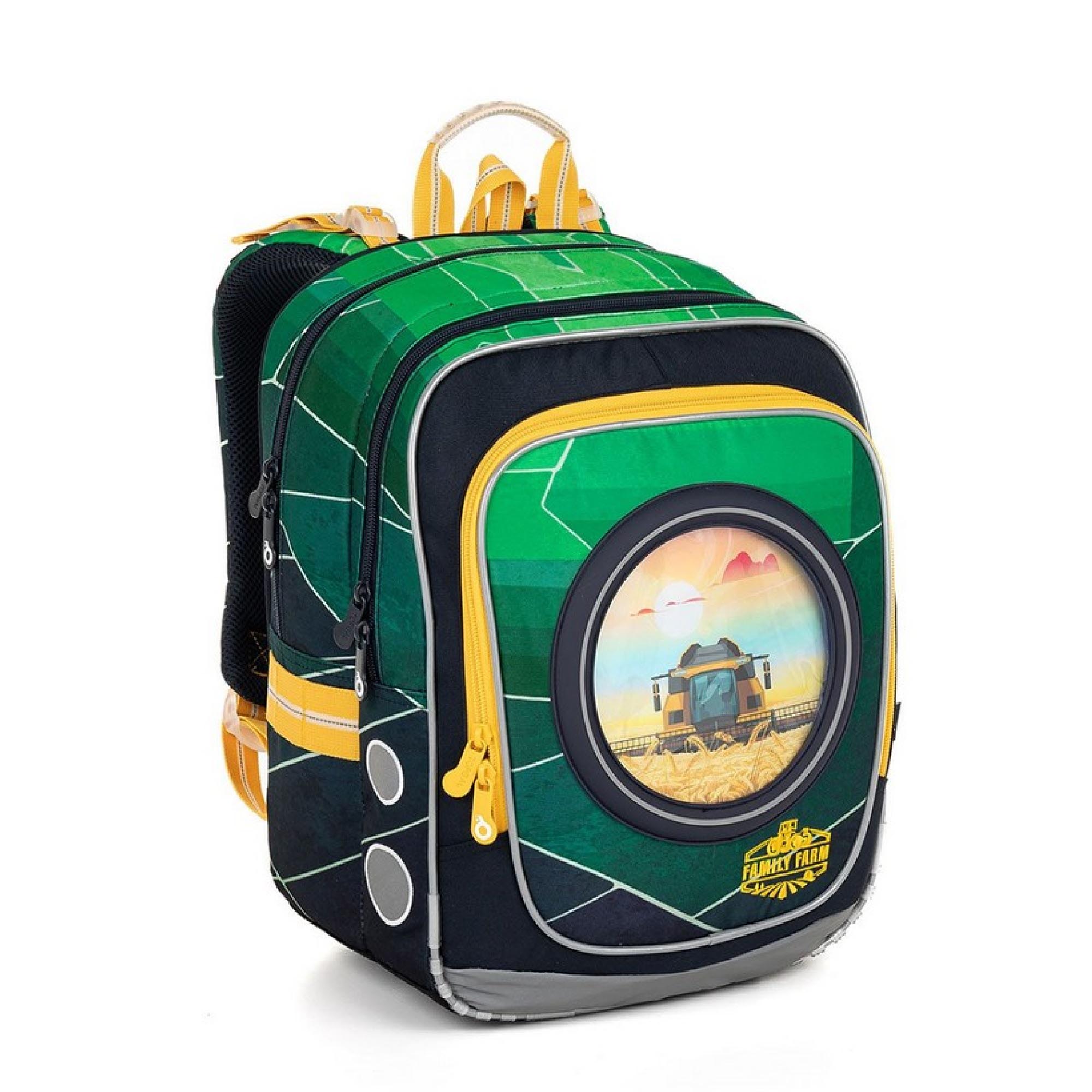 Model ENDY neváží ani kilogram, proto je ideální pro kluky od první až do třetí třídy ZŠ. Červený a modrý traktor, kombajn nebo bagr? Díky vyměnitelným obrázkům můžou mít každý den jiný batoh.