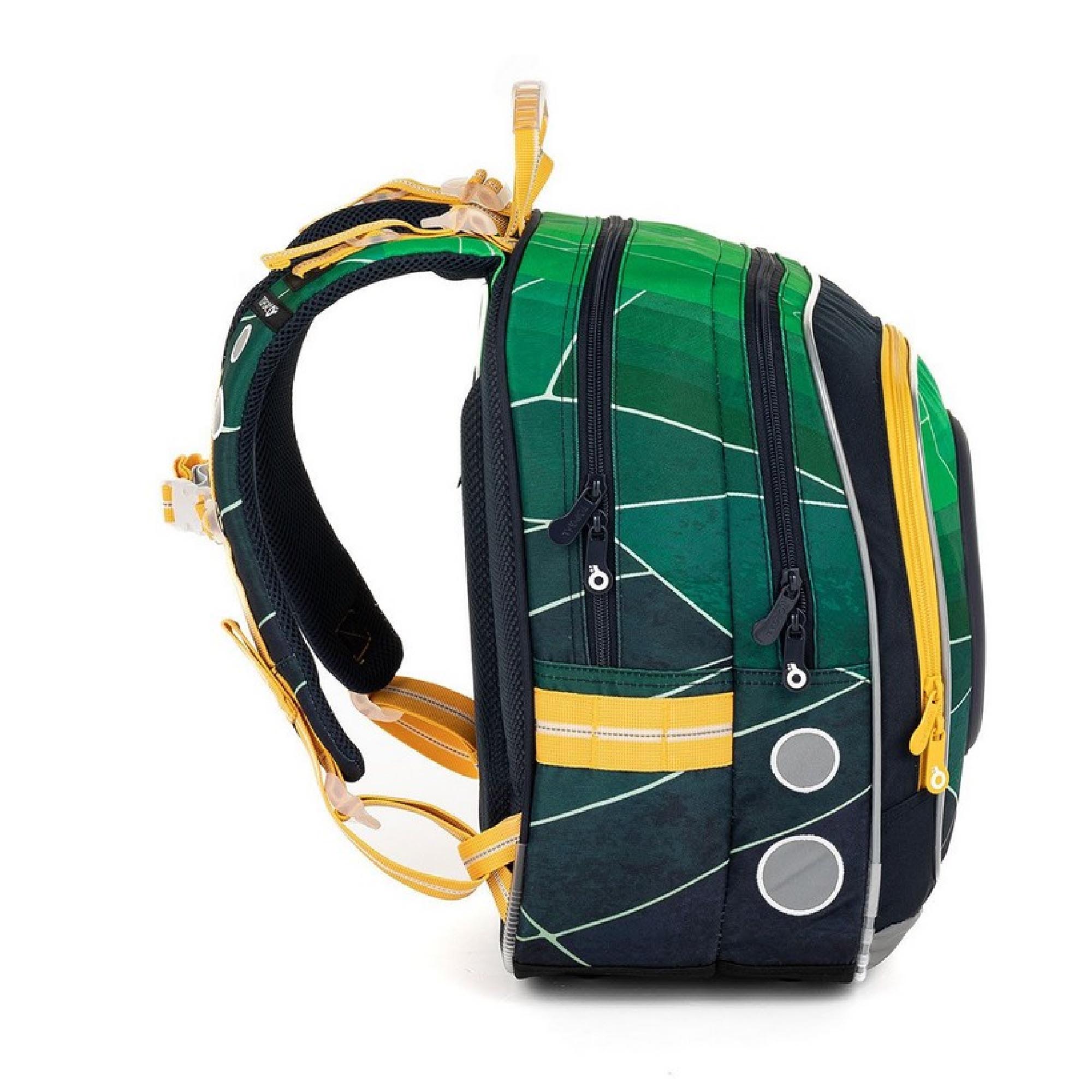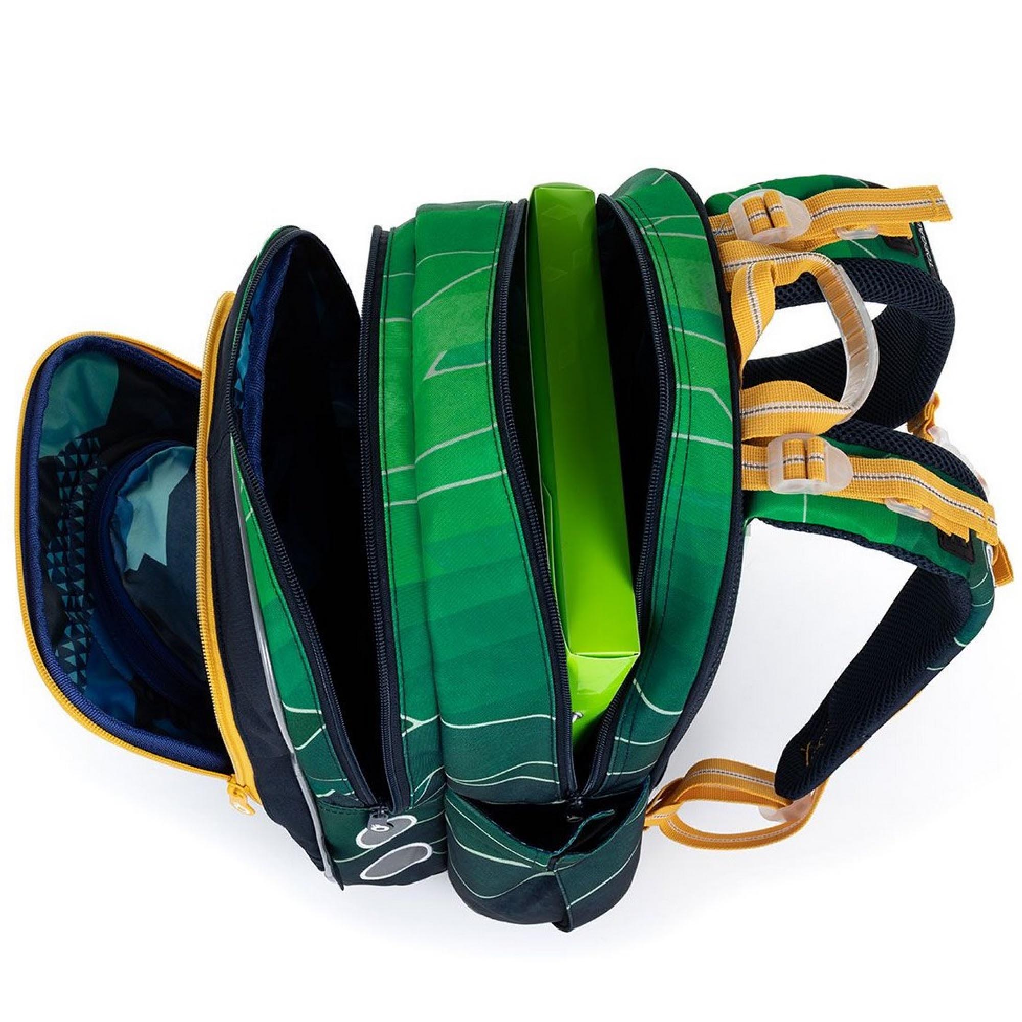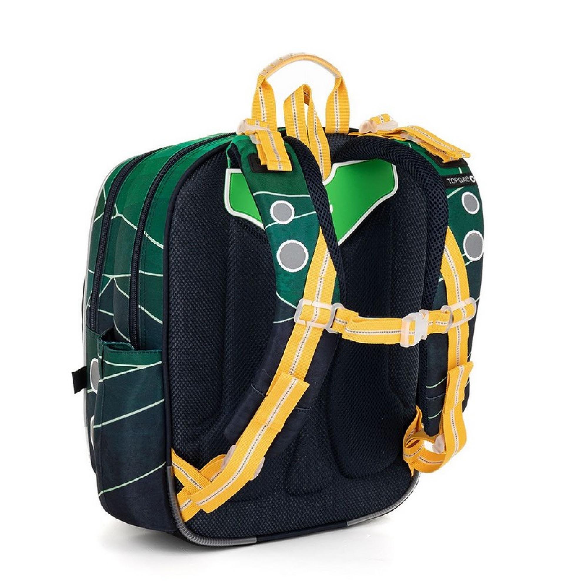 Batoh má dvě objemné hlavní komory. Zadní komora je širší - doporučujeme k zádům dávat nejtěžší učebnice nebo desky na sešity. Přední komora je o něco užší a je v ní umístěna ještě malá síťová kapsa na zip a jmenovka.
