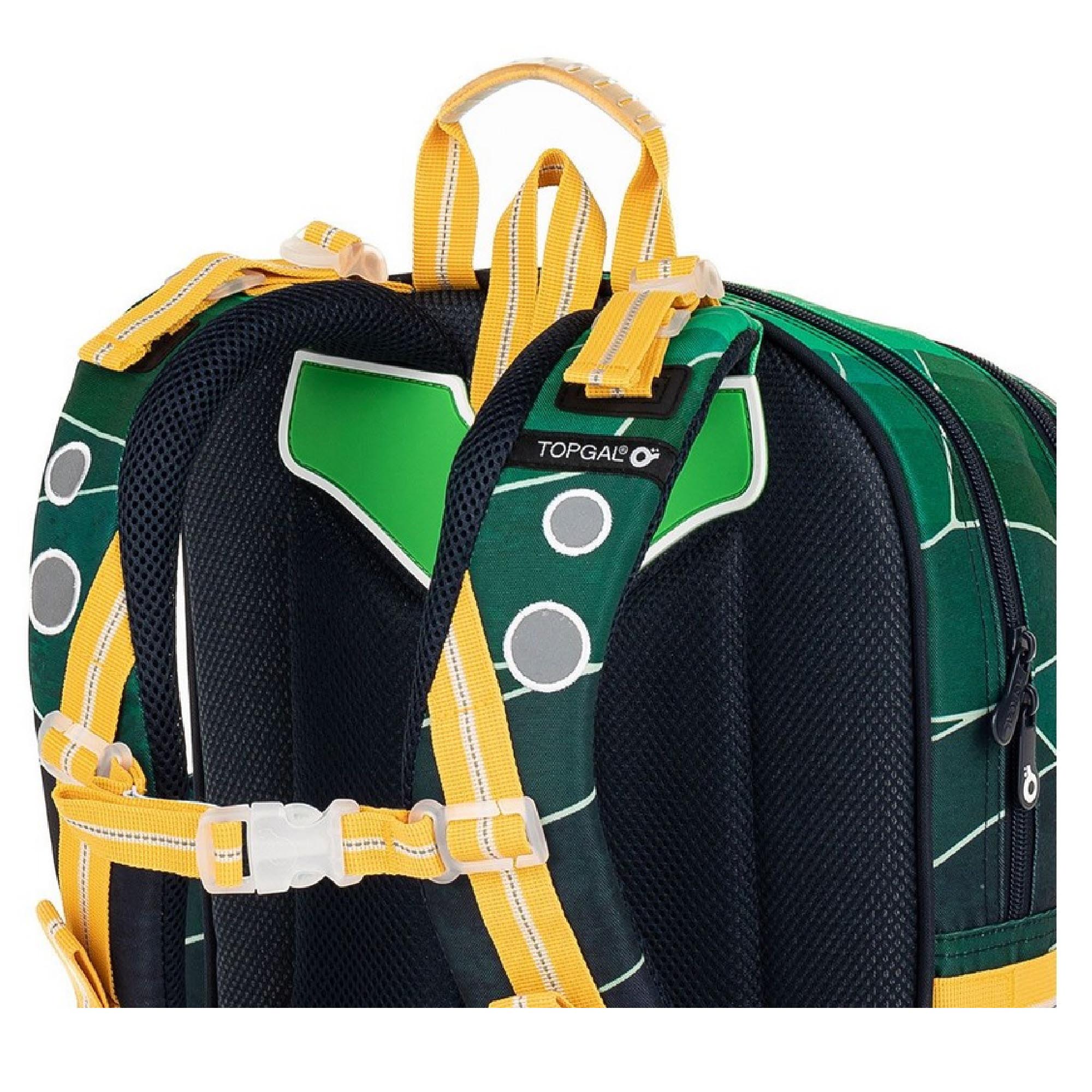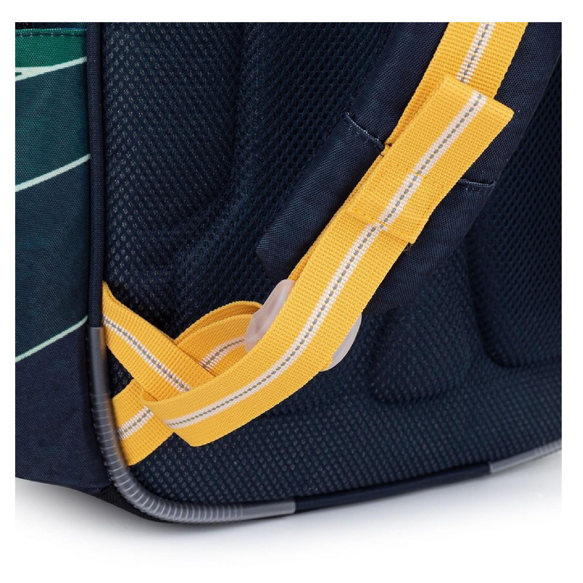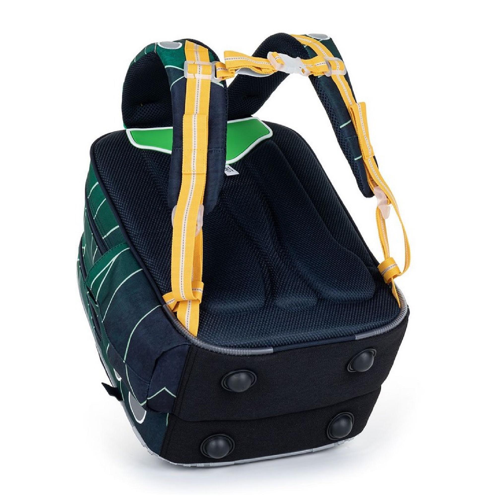 Batoh má dvě objemné hlavní komory. Zadní komora je širší - doporučujeme k zádům dávat nejtěžší učebnice nebo desky na sešity. Přední komora je o něco užší a je v ní umístěna ještě malá síťová kapsa na zip a jmenovka.