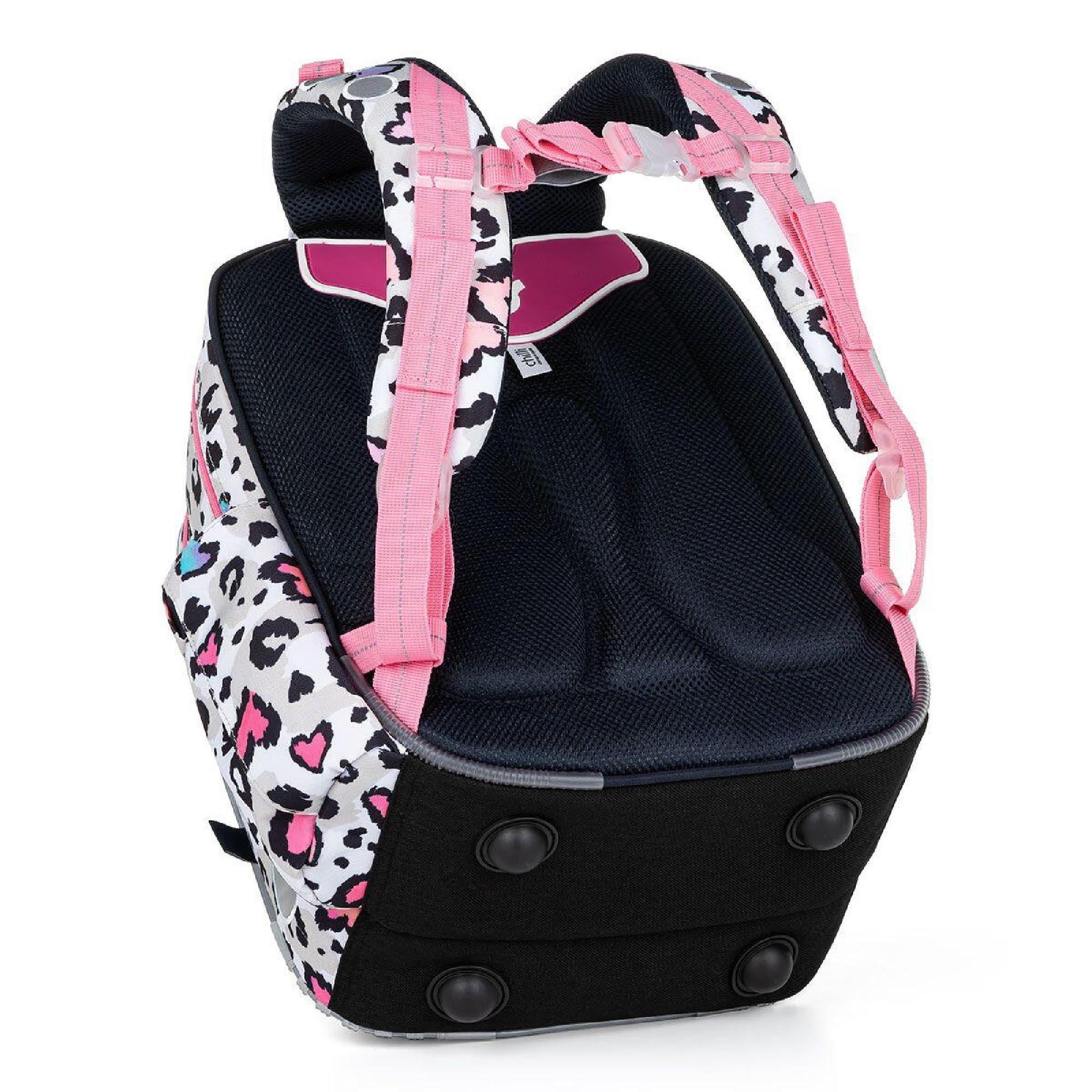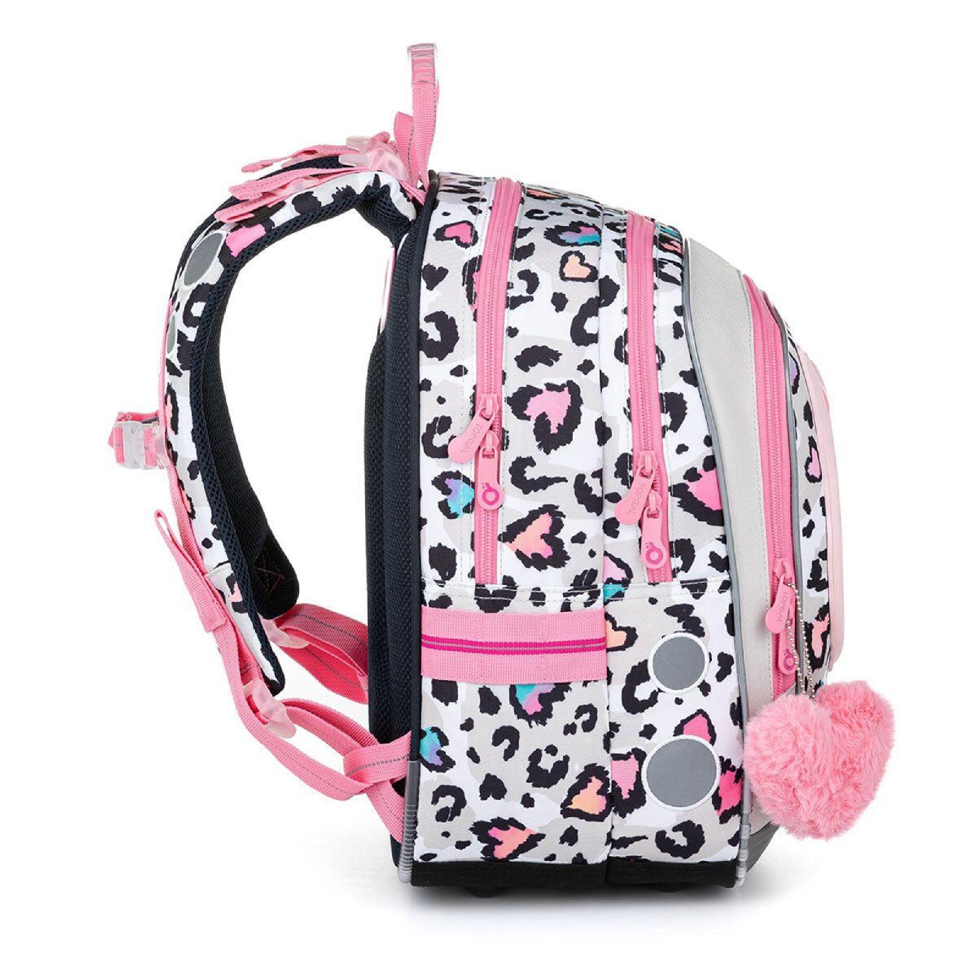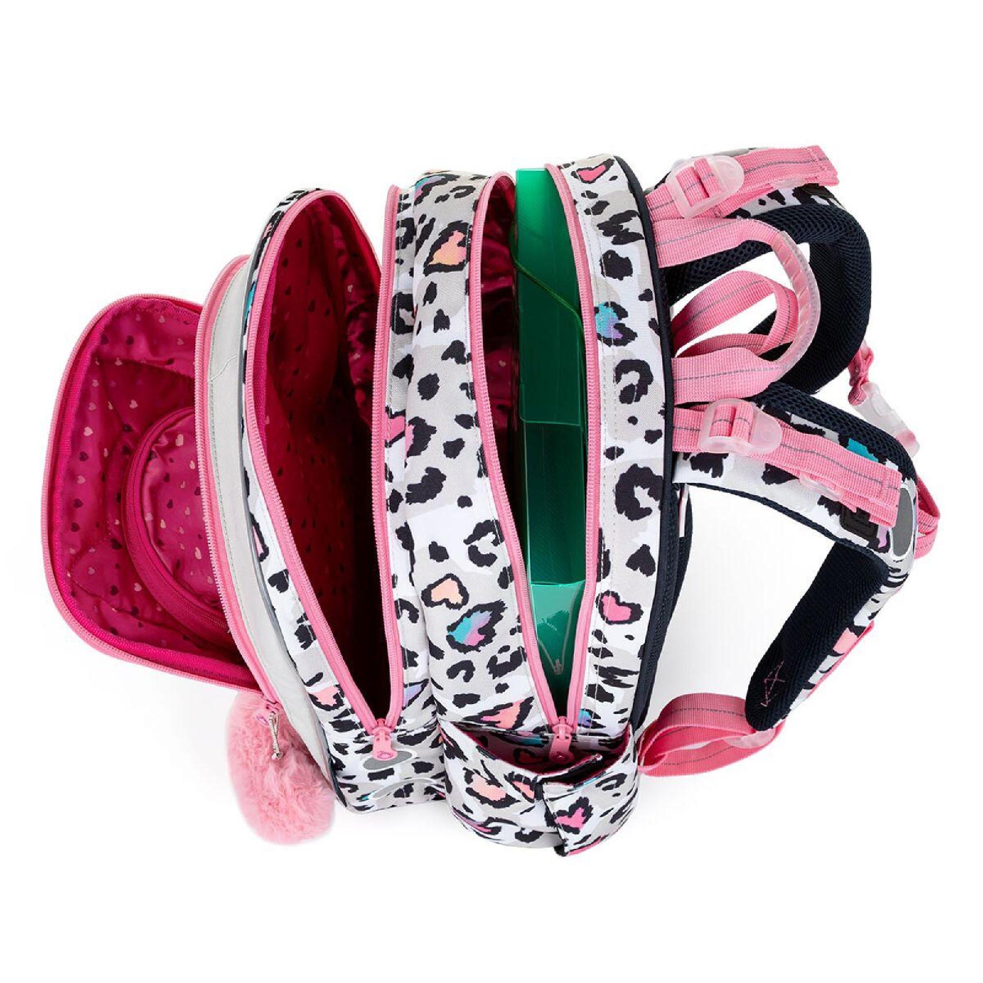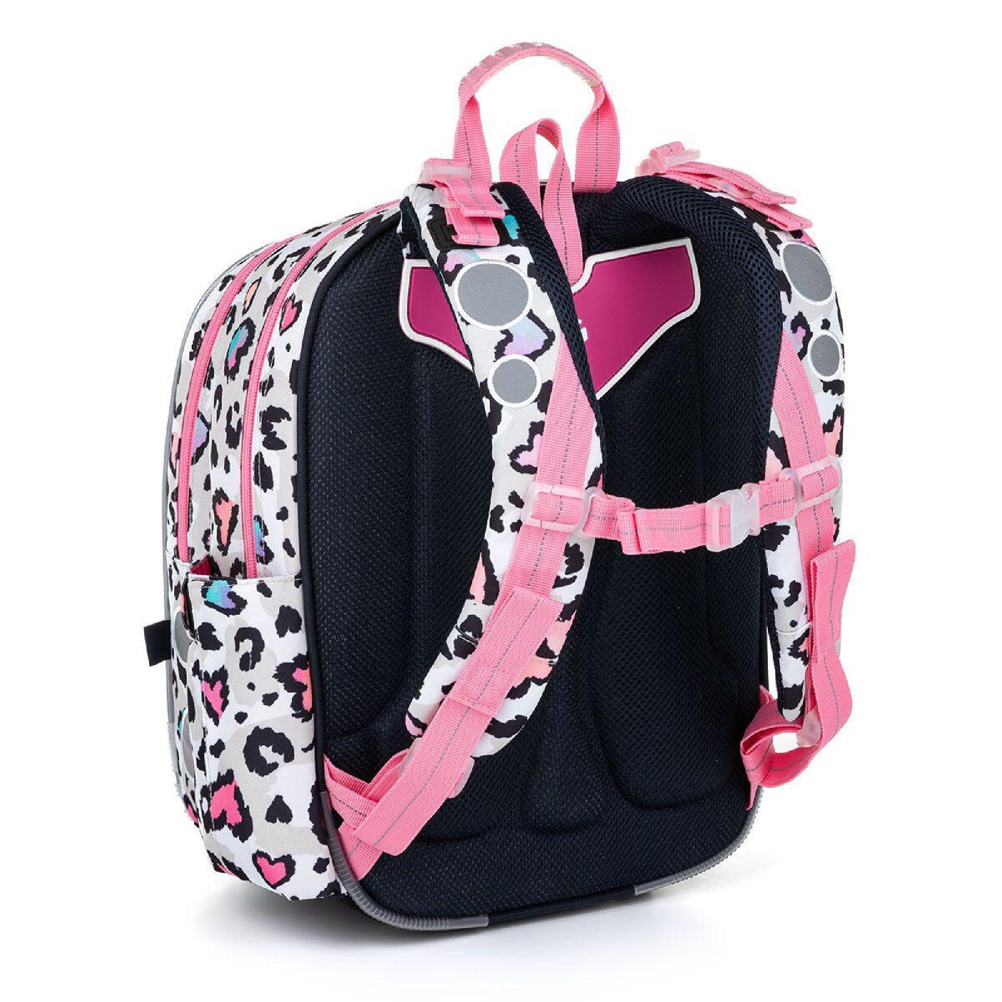 Batoh má dvě objemné hlavní komory. Zadní komora je širší – doporučujeme k zádům dávat nejtěžší učebnice nebo desky na sešity. Přední komora je o něco užší a je v ní umístěna malá síťová kapsa na zip a jmenovka.