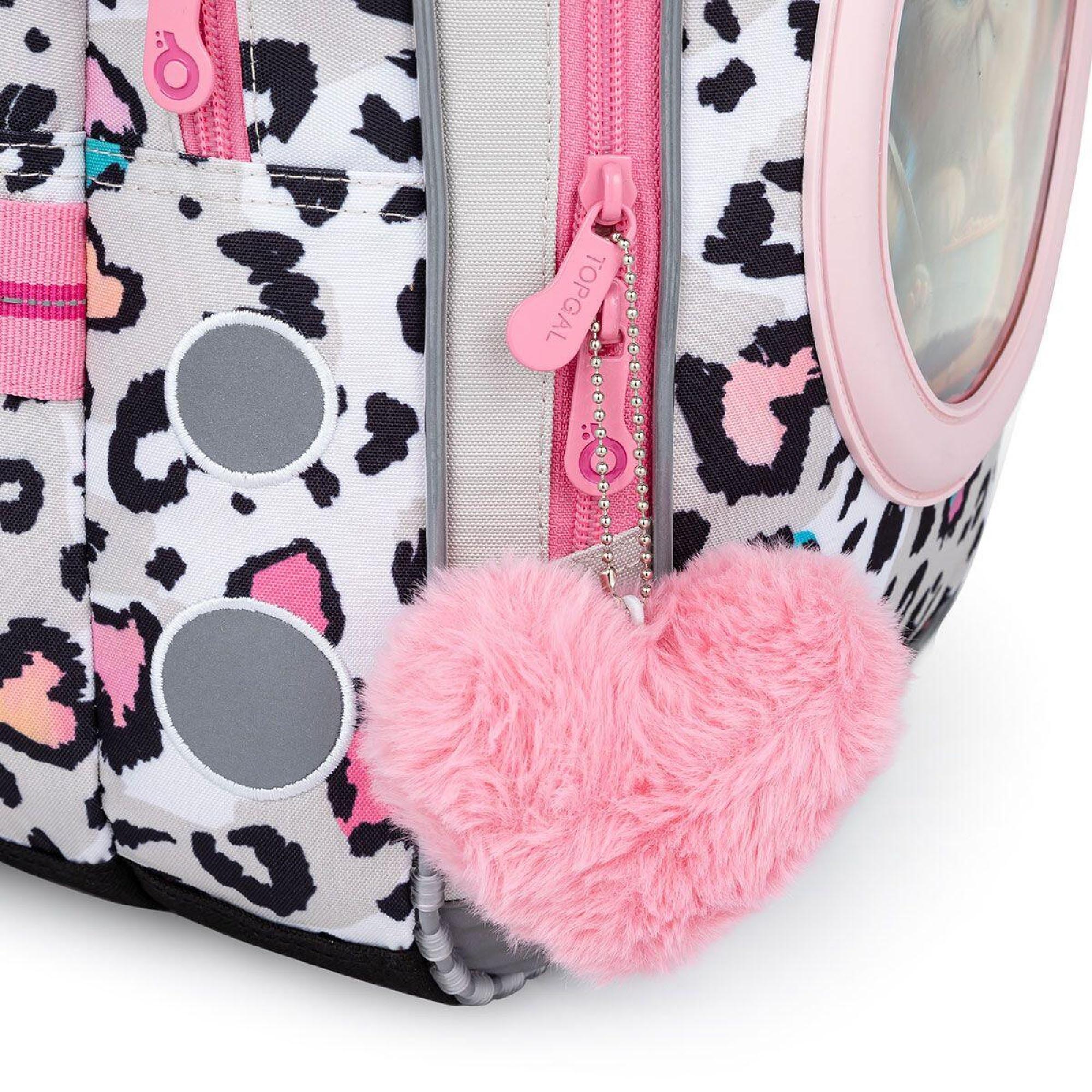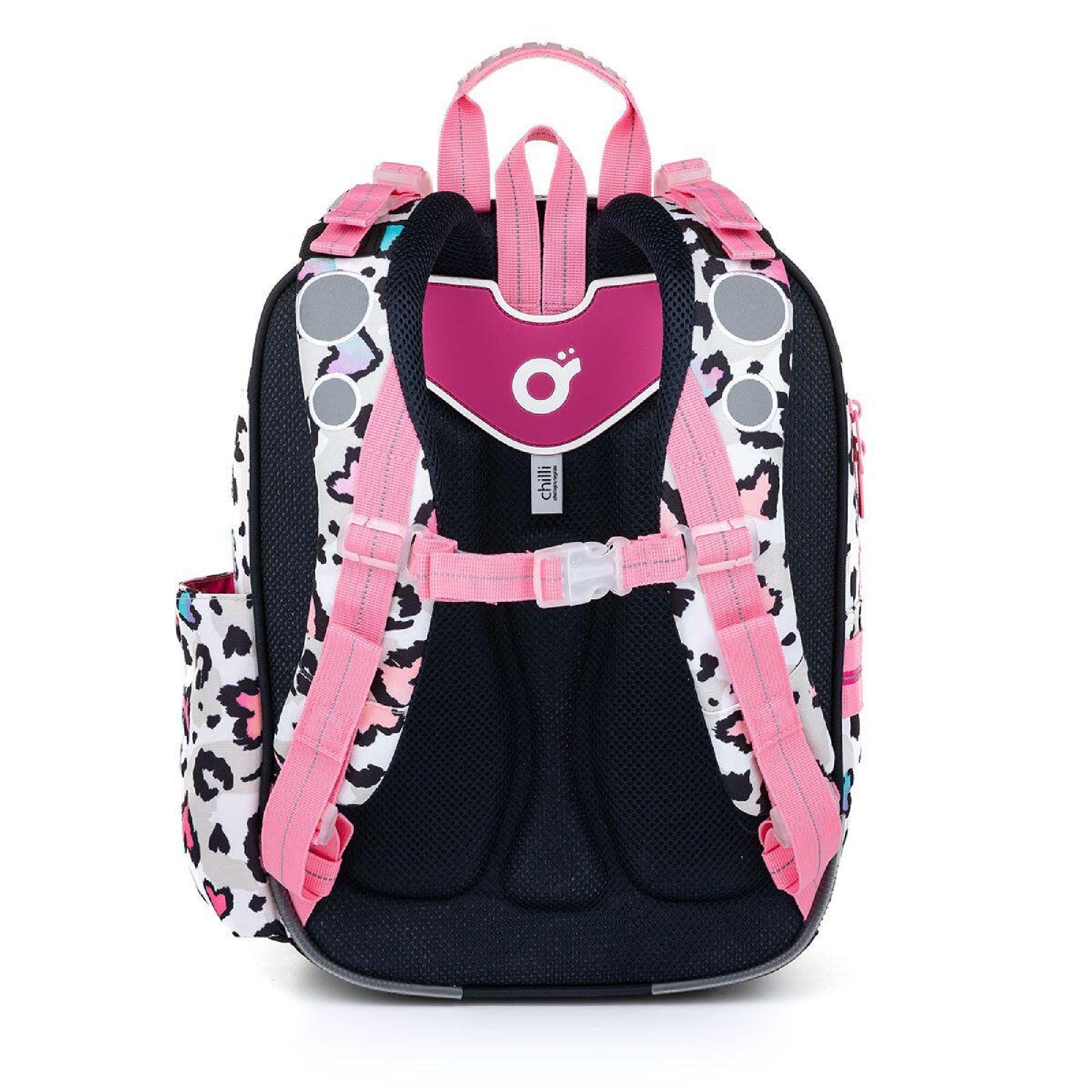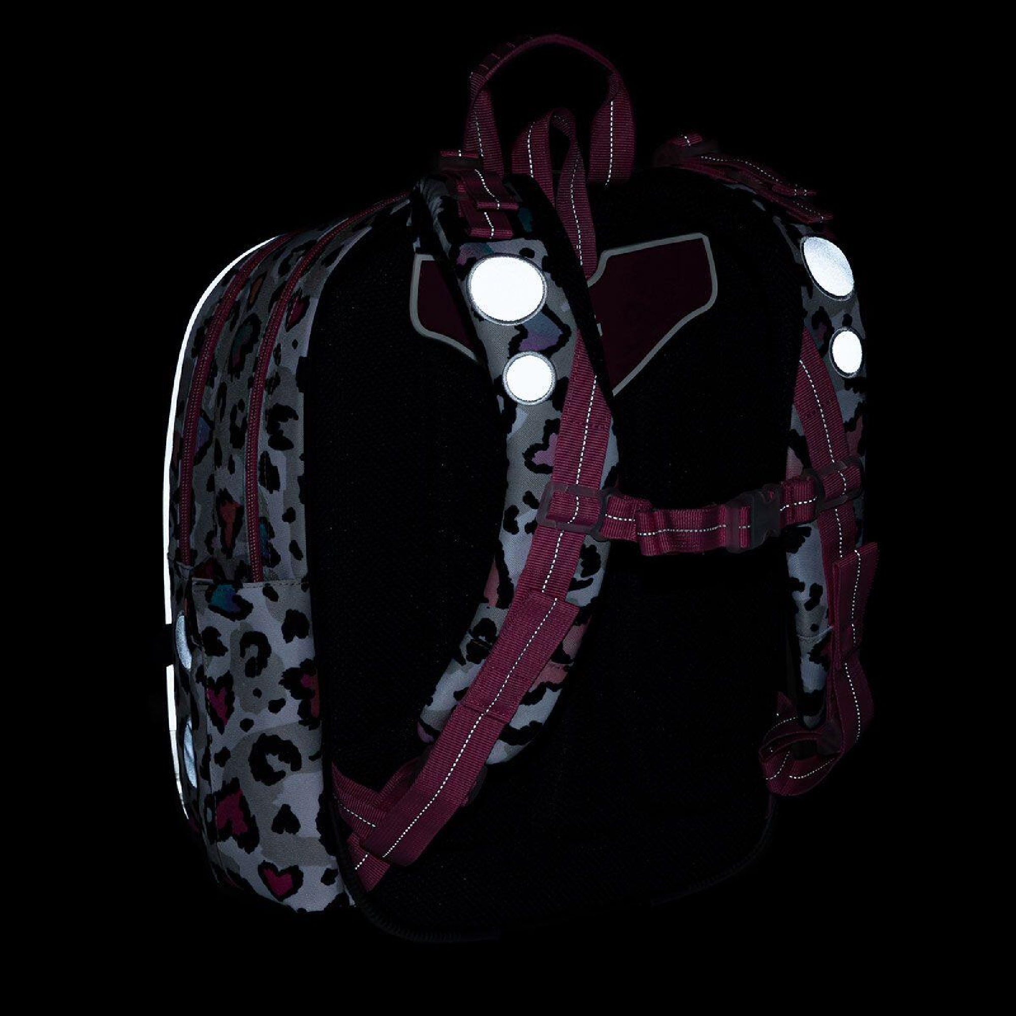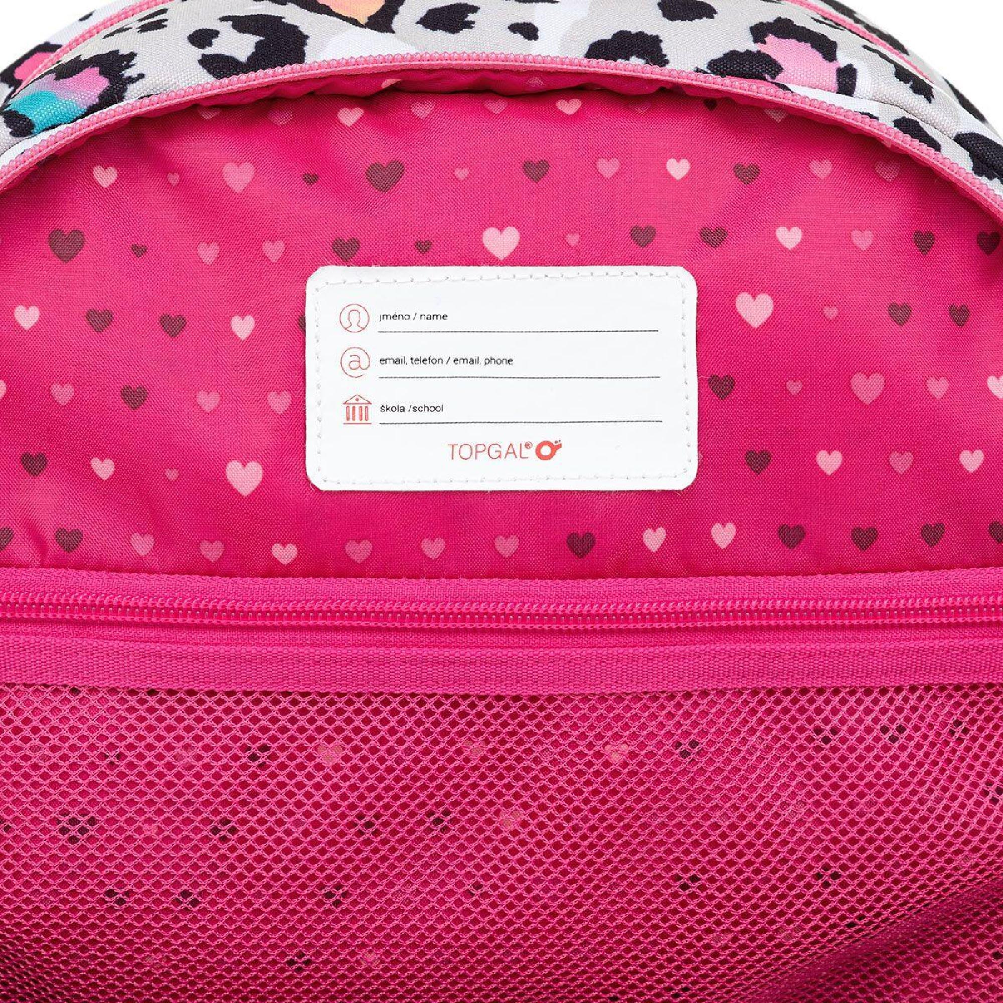Batoh má dvě objemné hlavní komory. Zadní komora je širší – doporučujeme k zádům dávat nejtěžší učebnice nebo desky na sešity. Přední komora je o něco užší a je v ní umístěna malá síťová kapsa na zip a jmenovka.