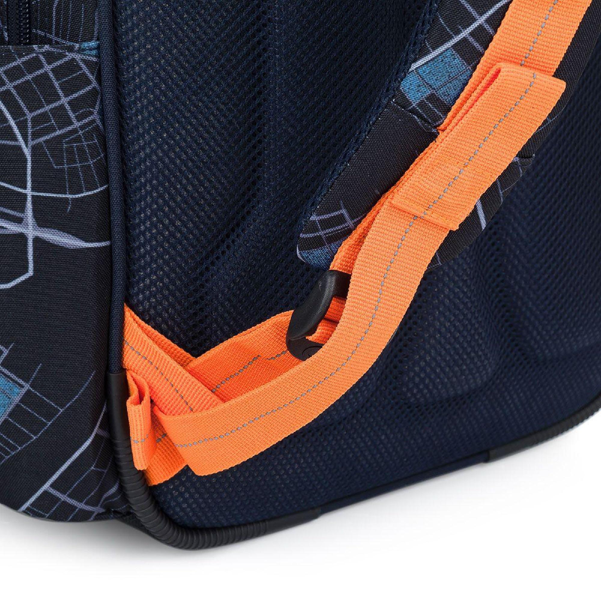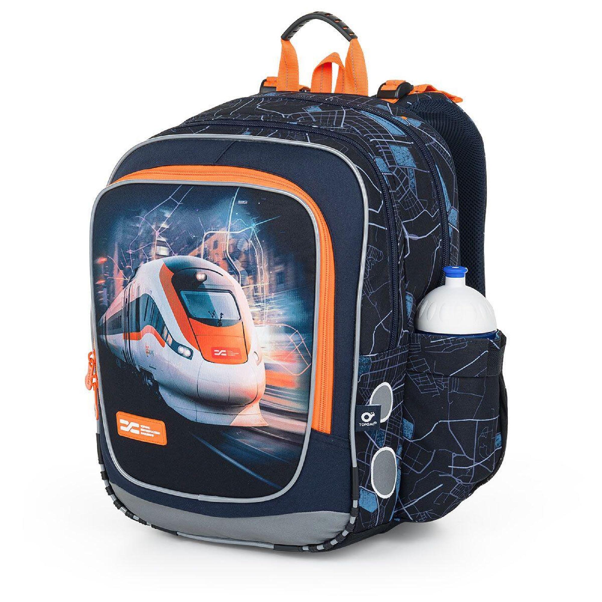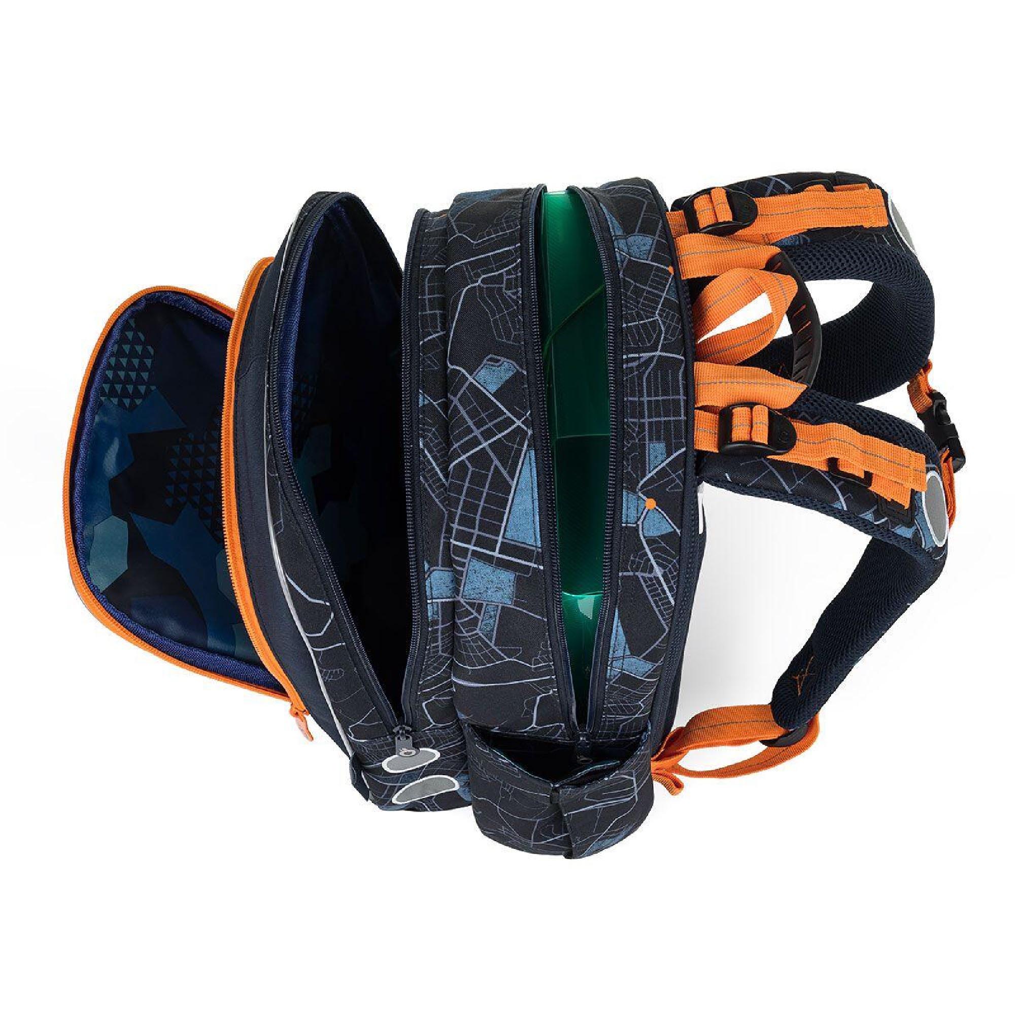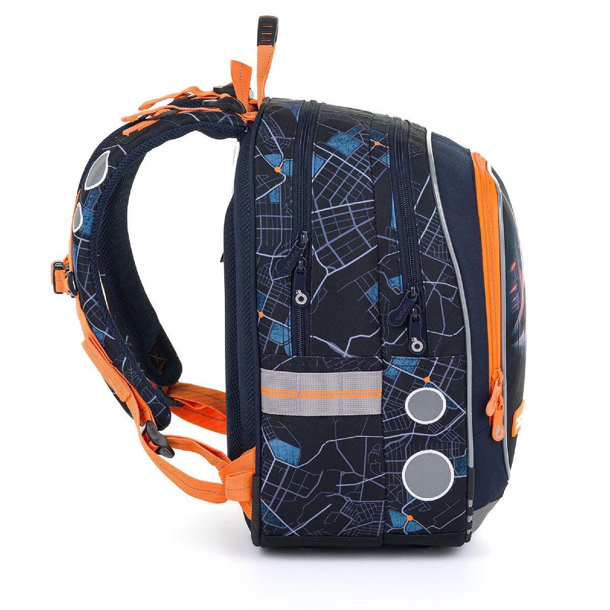Batoh má dvě objemné hlavní komory. Do nejširší zadní komory dejte nejtěžší učebnice nebo desky na sešity. Přední komora je o něco užší, je v ní ukrytá malá síťová kapsa na zip a jmenovka.
