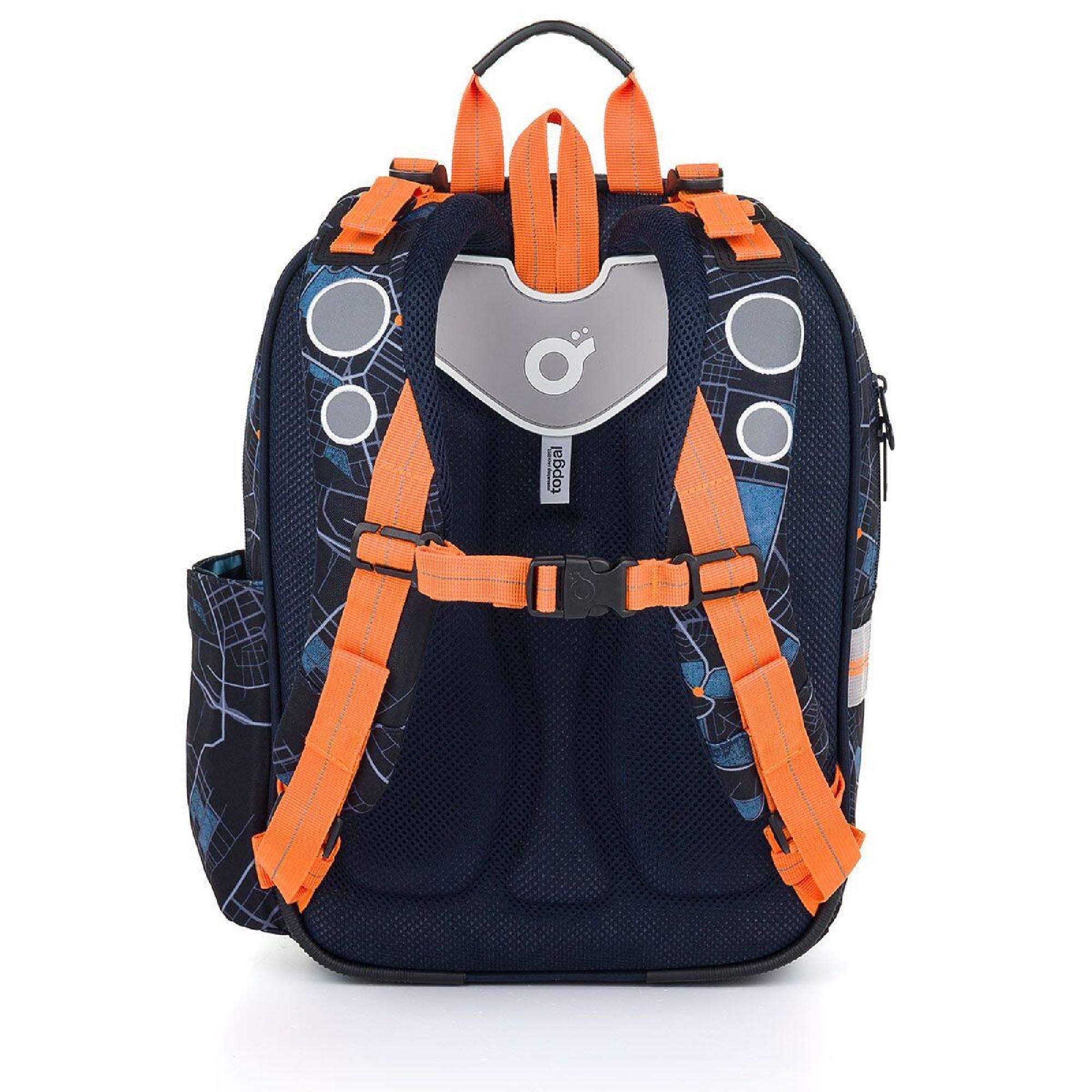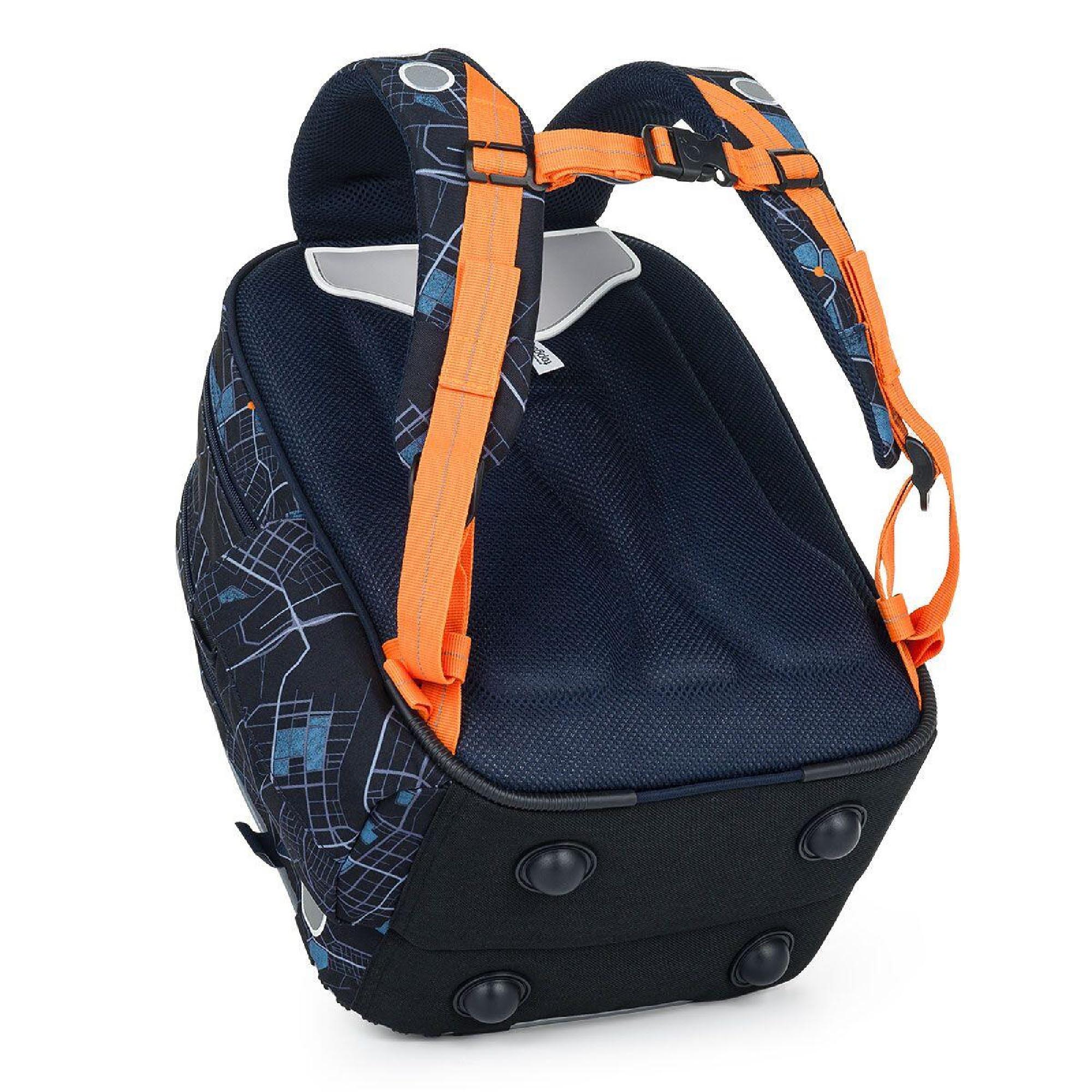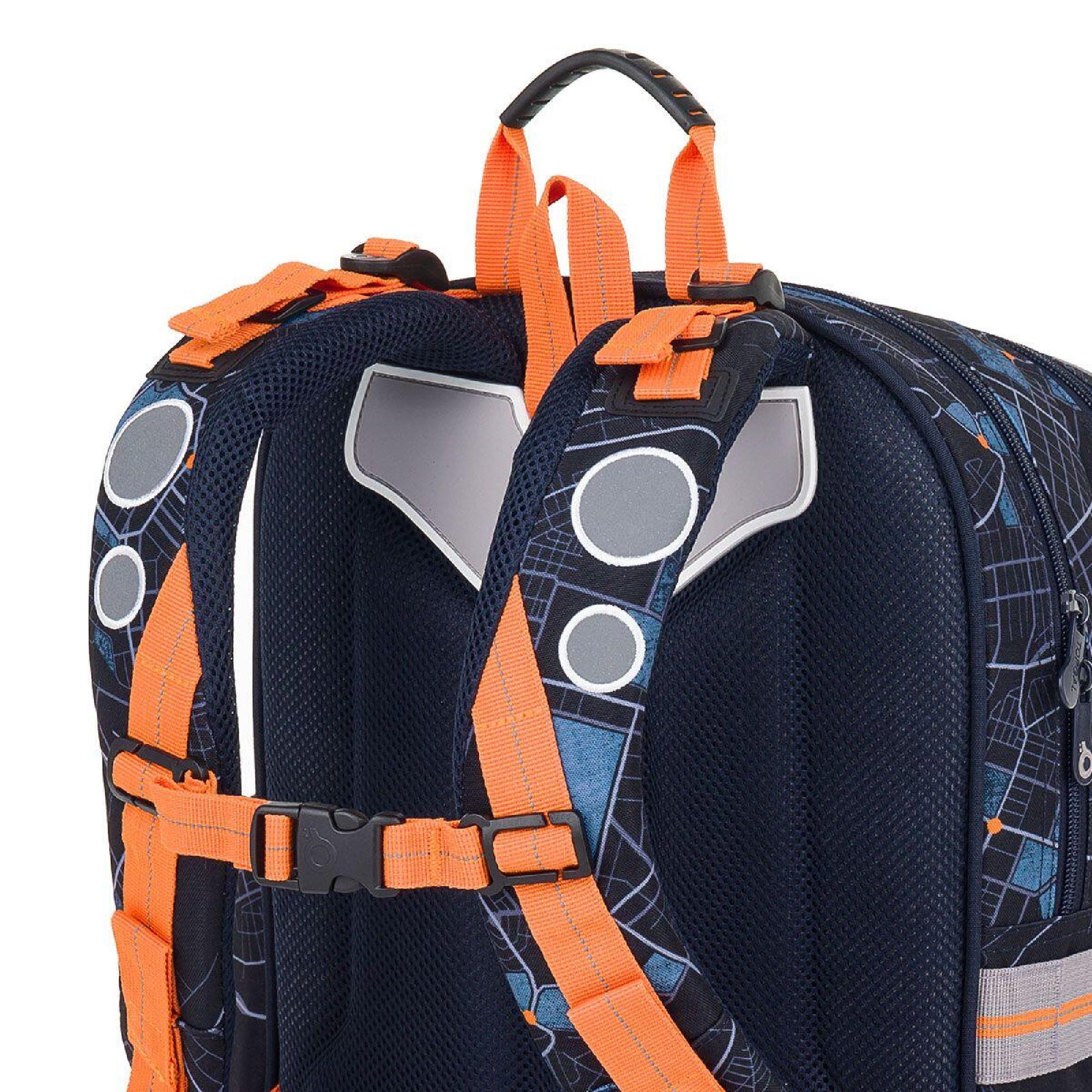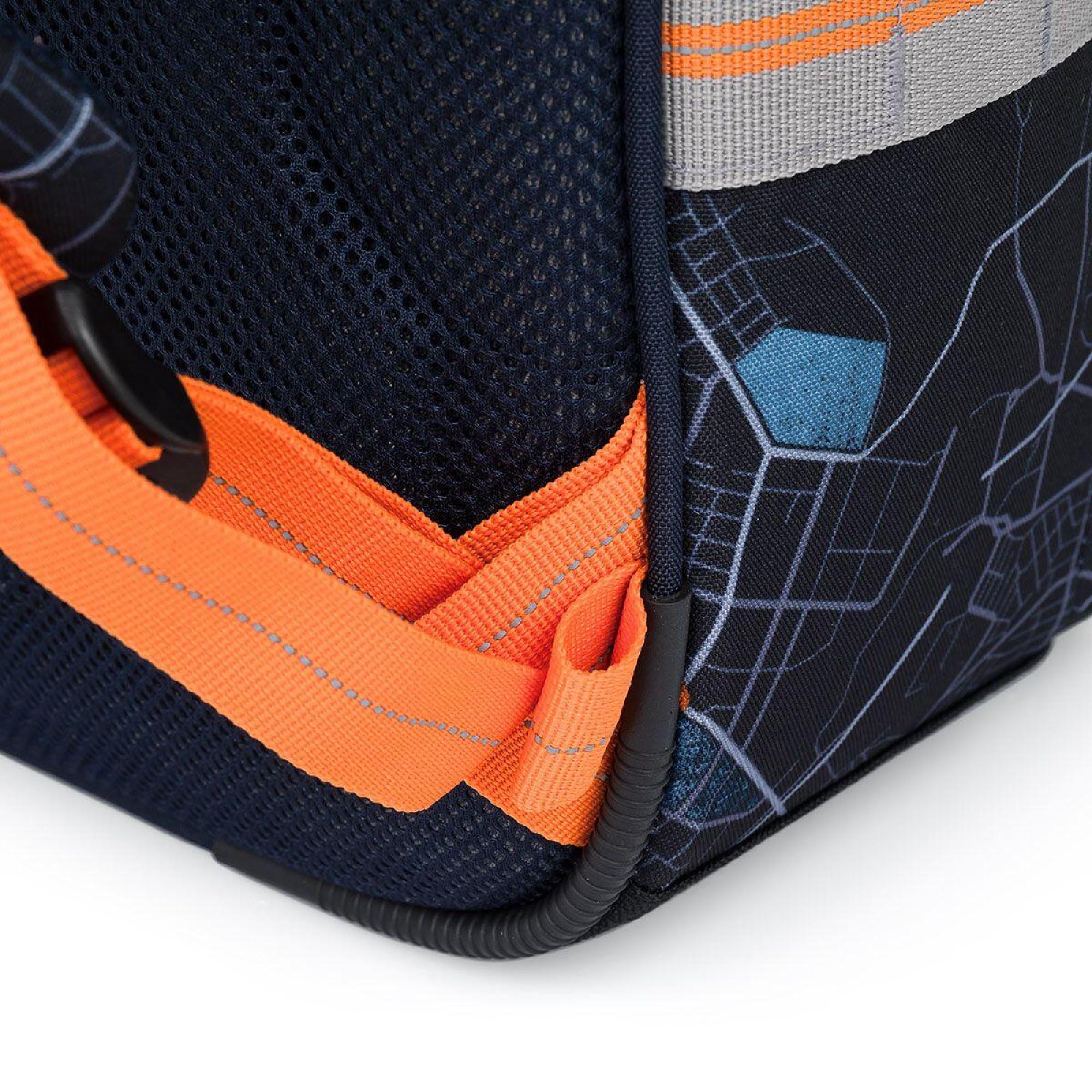 Batoh má dvě objemné hlavní komory. Do nejširší zadní komory dejte nejtěžší učebnice nebo desky na sešity. Přední komora je o něco užší, je v ní ukrytá malá síťová kapsa na zip a jmenovka.