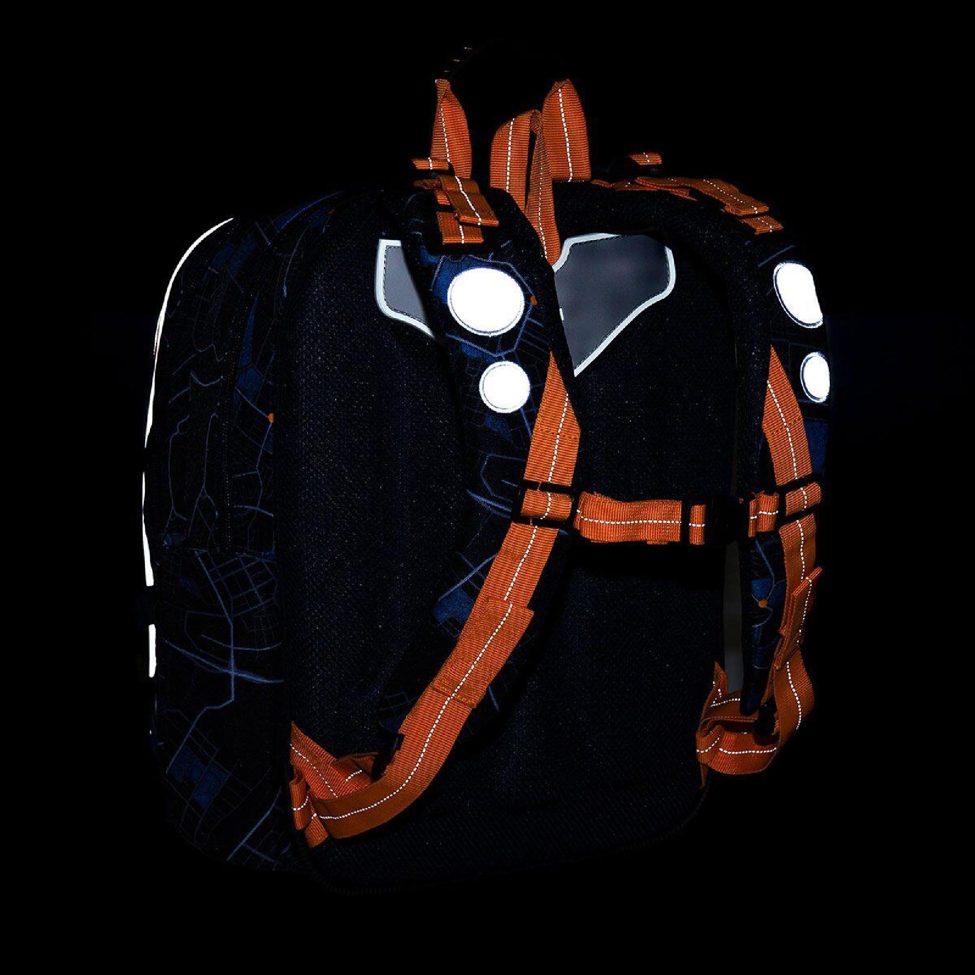reflexní prvky: na čele a bocích batohu, na ramenních popruzích