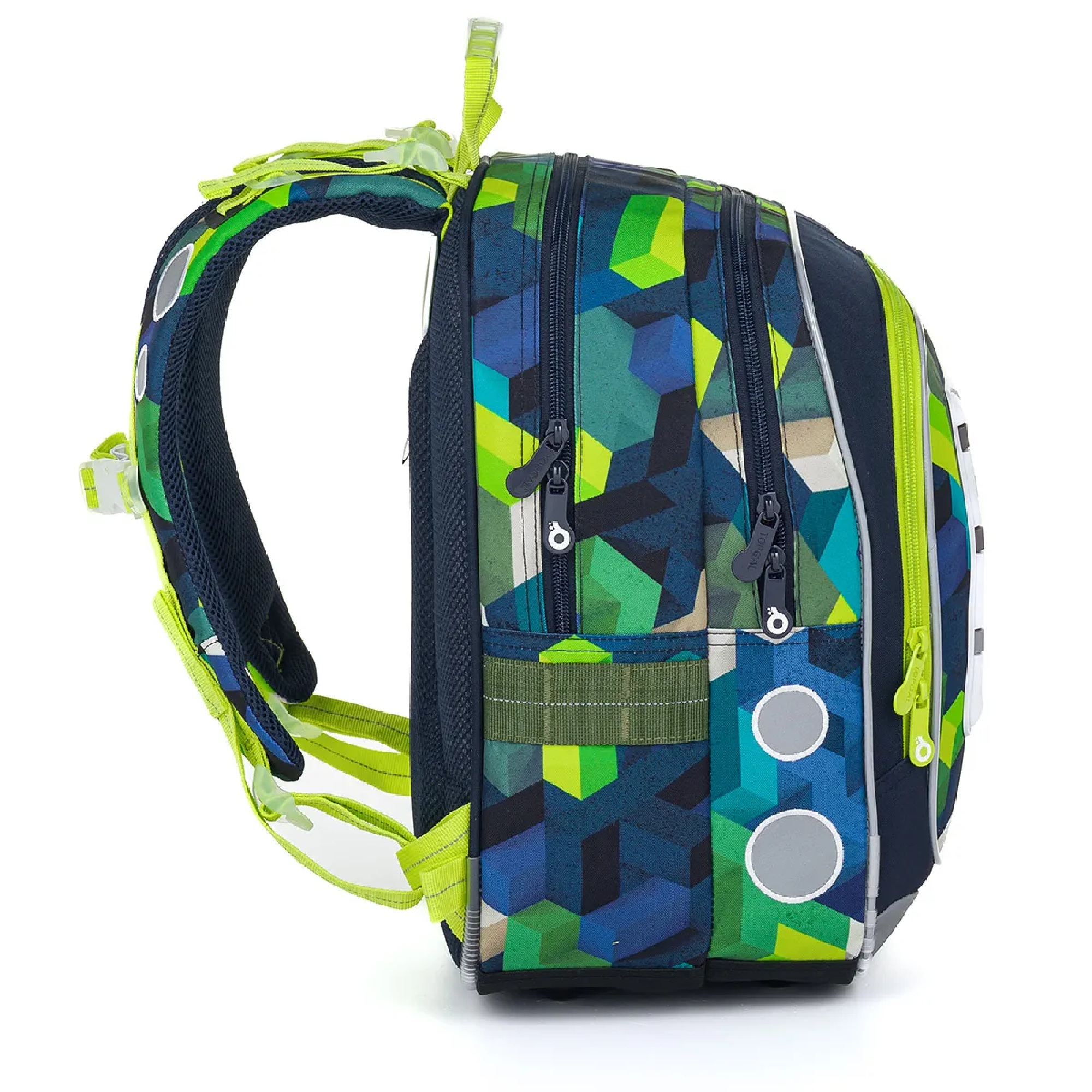 reflexní prvky: na čele a bocích batohu, na ramenních popruzích