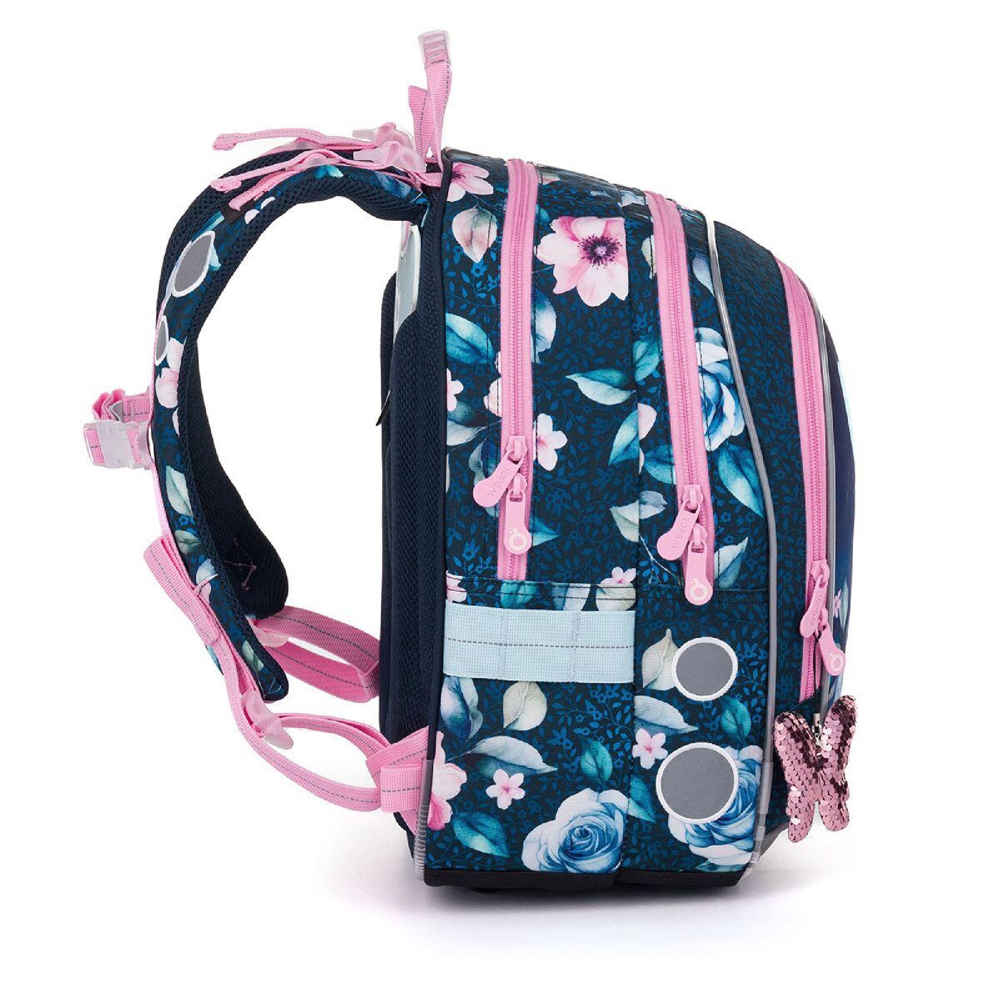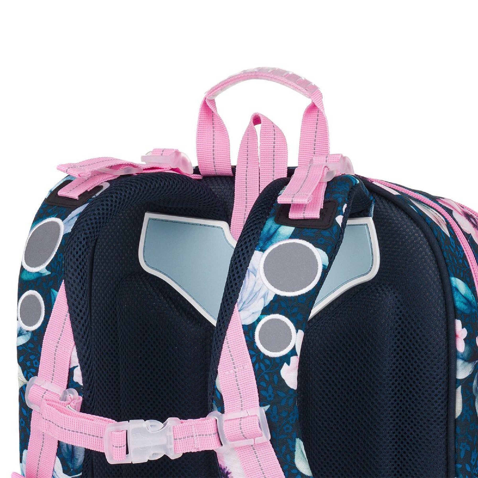 reflexní prvky: na čele a bocích batohu, na ramenních popruzích