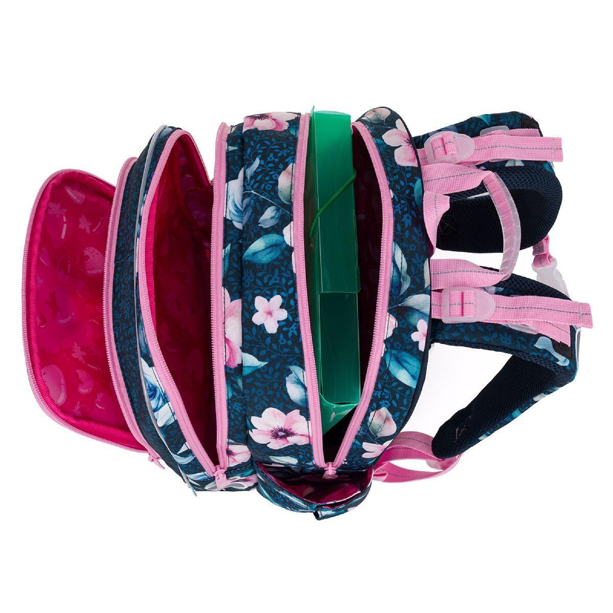 Do široké zadní komory doporučujeme dát nejtěžší učebnice nebo desky na sešity a směrem od zad postupně odlehčovat. Přední komora je o něco užší, obsahuje malou síťovou kapsu na zip a jmenovku. Sem můžete dát například penál ENDY 25003 ve stejném designu nebo krabičku na svačinu. Boční kapsa skvěle udrží lahev ZIVA o objemu 0,5 litru.
