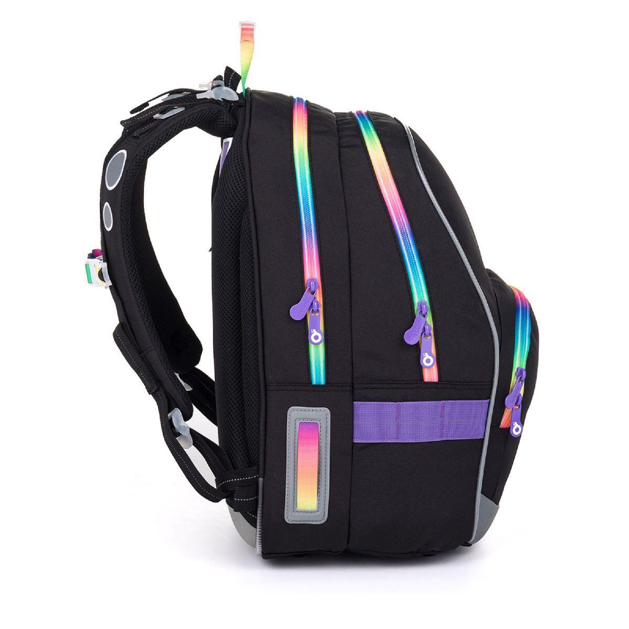 Dvoukomorový model KIMI jsme letos opravdu vymazlili – černou plochu jsme roztříštili barevnými zipy. A ano, na trhu takových batohů opravdu moc není.