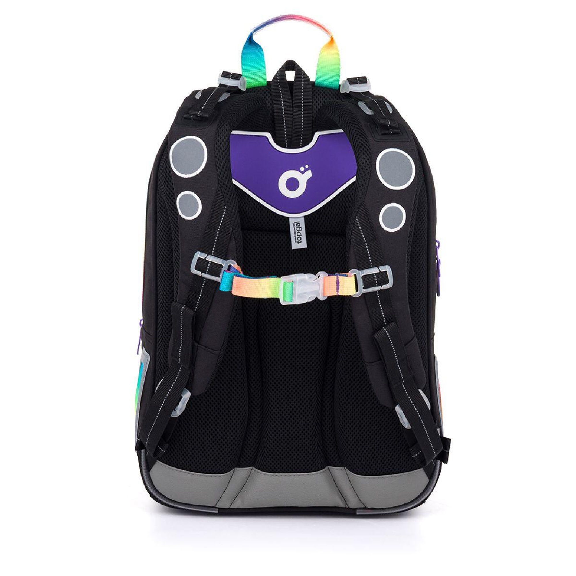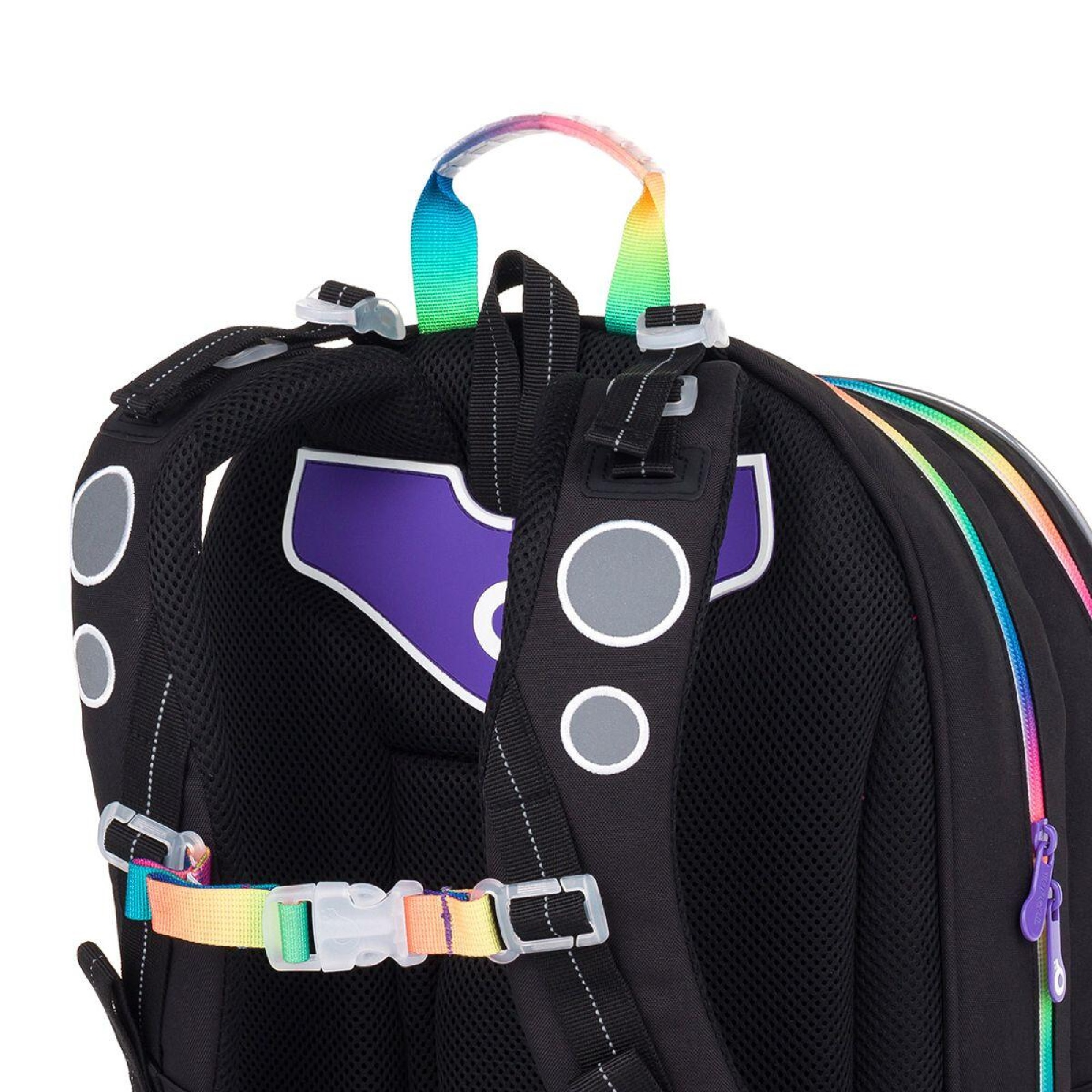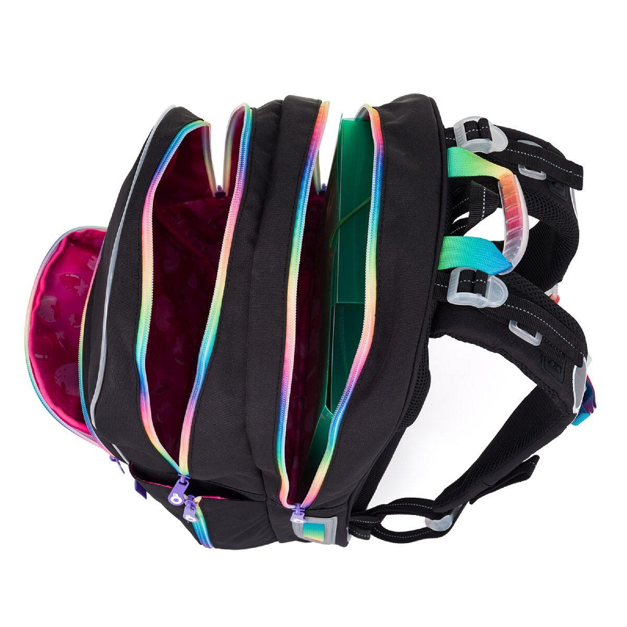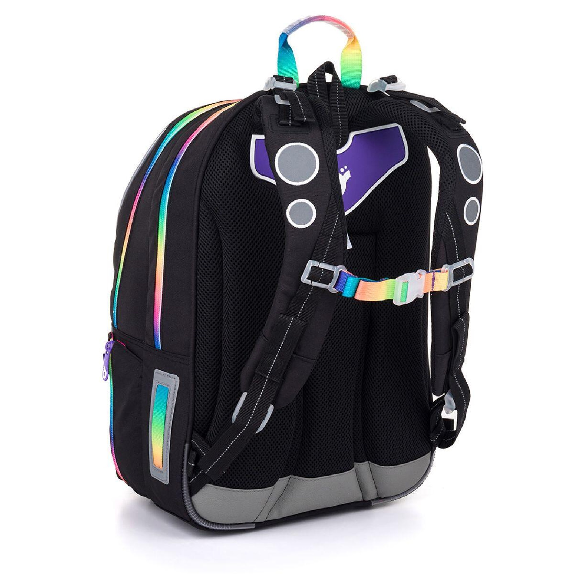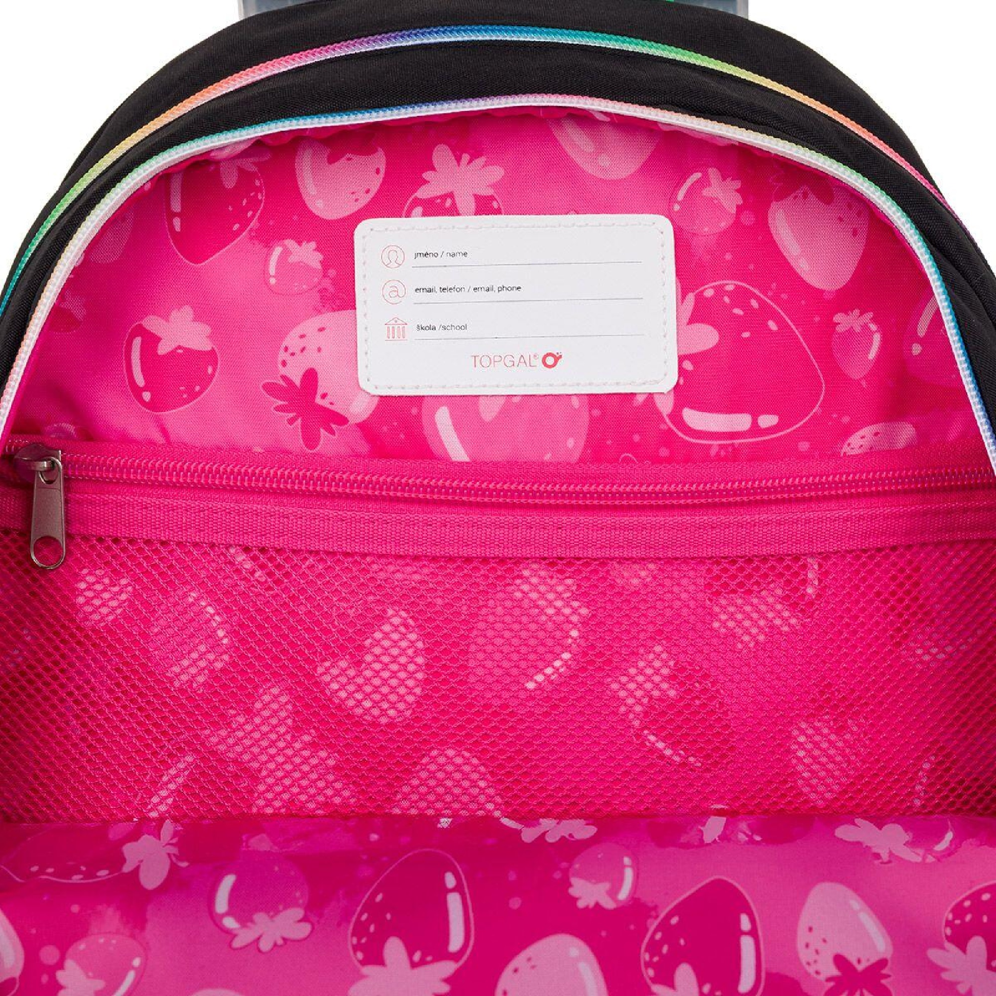 Zadní komora je nejobjemnější, proto se do ní vejde všechno těžké učení. Přední komora je malinko menší a skrývá síťovou kapsu na doklady i jmenovku. Do malé přední kapsy se vejde penál PENN 25010ve stejném designu nebo krabička se svačinou.