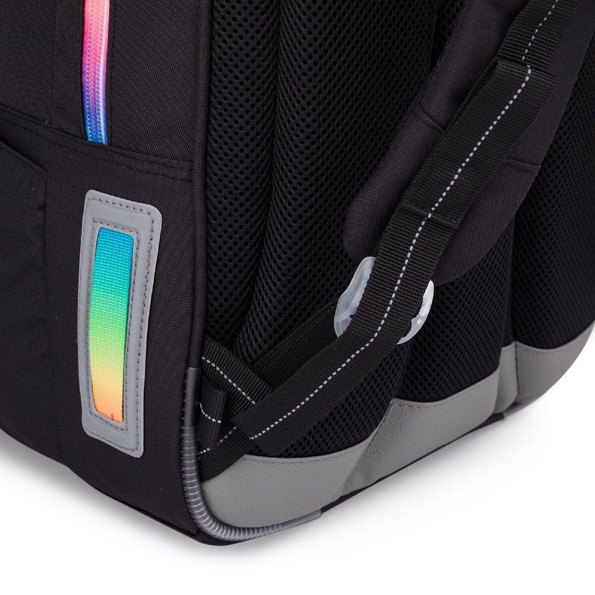 reflexní prvky: na čele a bocích batohu, na ramenních popruzích