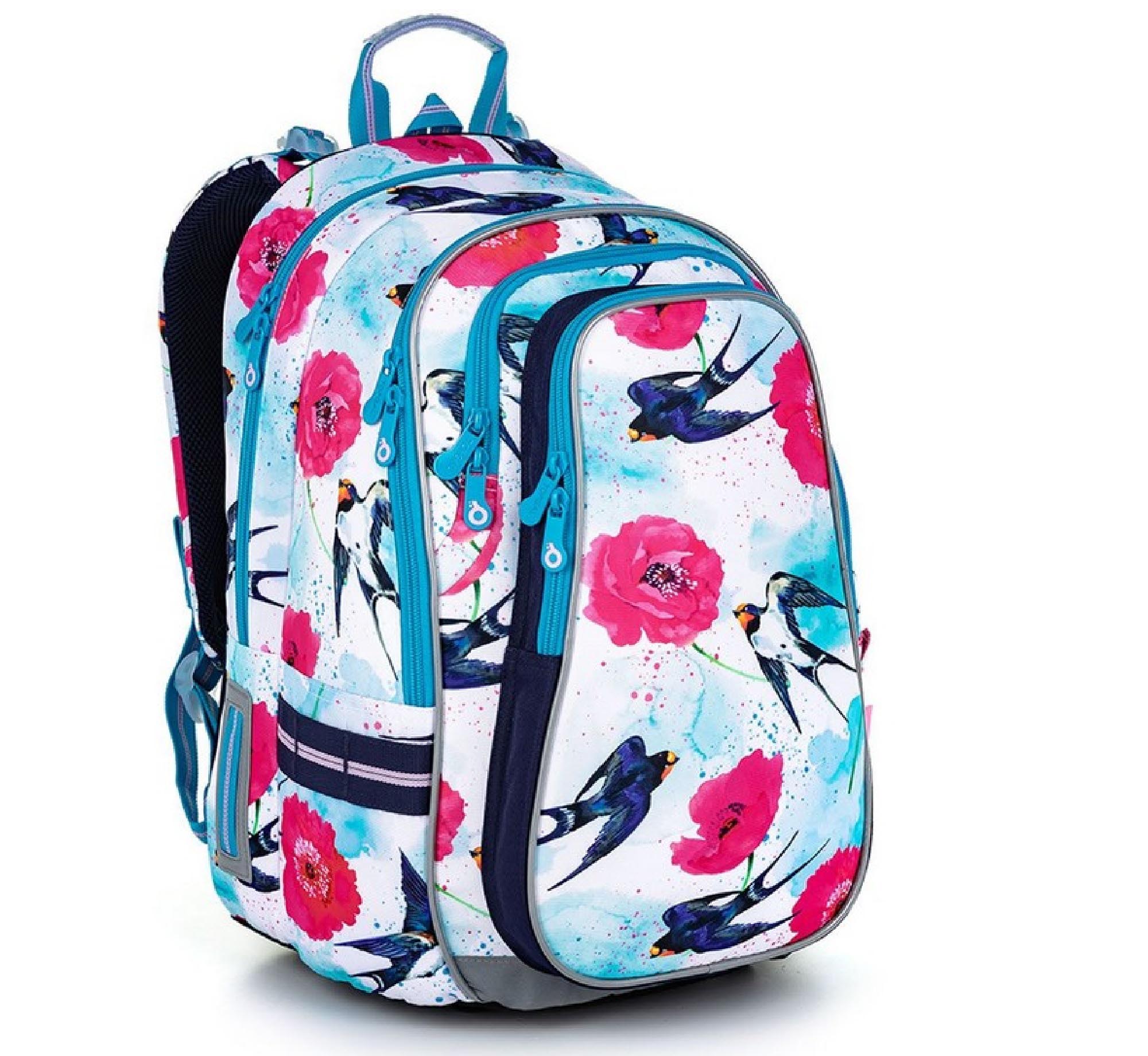 Zadní komora batohu je užší. Je ideální na přenášení nejtěžších učebnic. Přední komora je nejširší a je v ní umístěna i praktická síťová kapsička na zip.