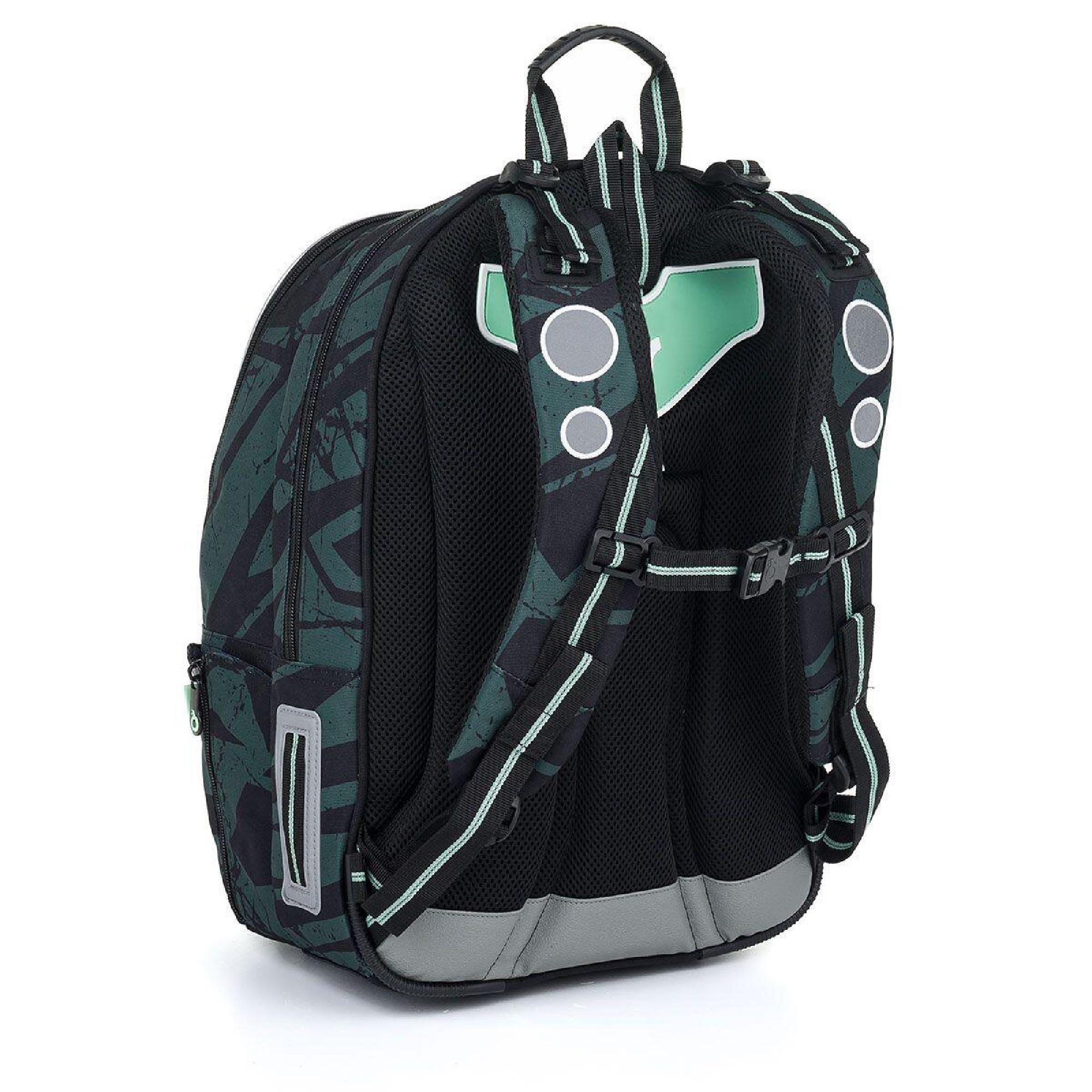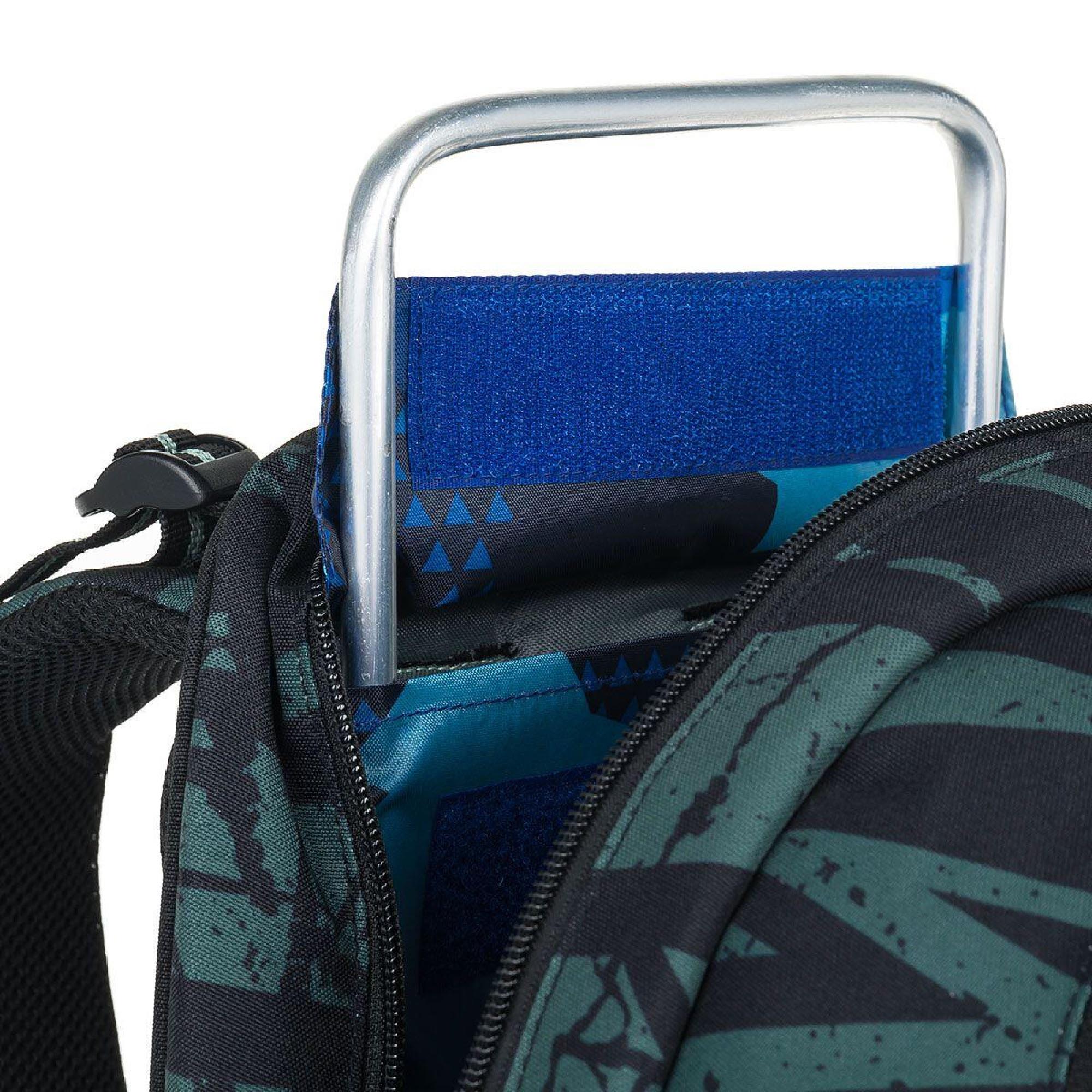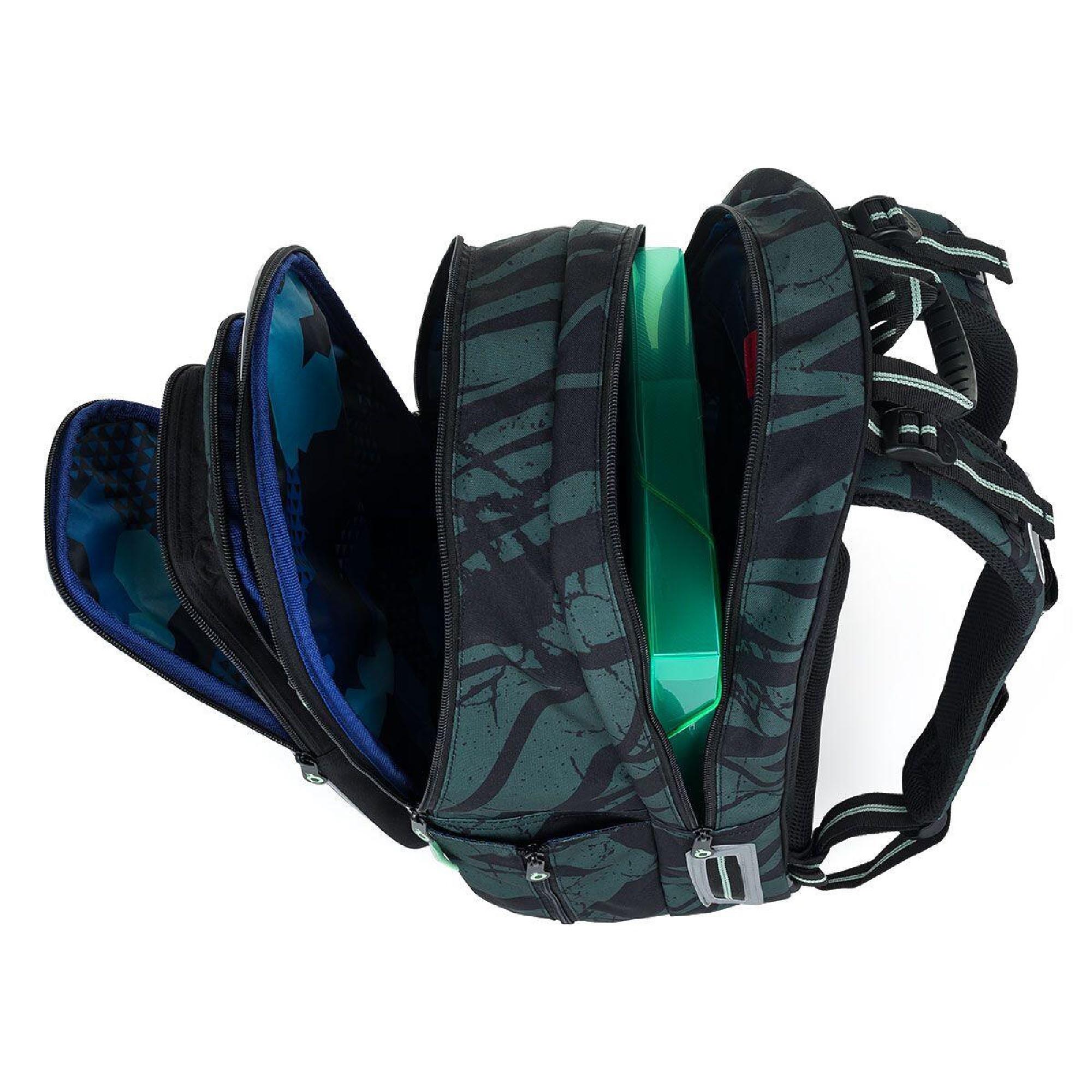 Zadní komora batohu je užší. Je ideální na přenášení nejtěžších učebnic nebo desek na sešity. Přední komora je nejširší a najdete v ní praktickou síťovou kapsičku na zip.