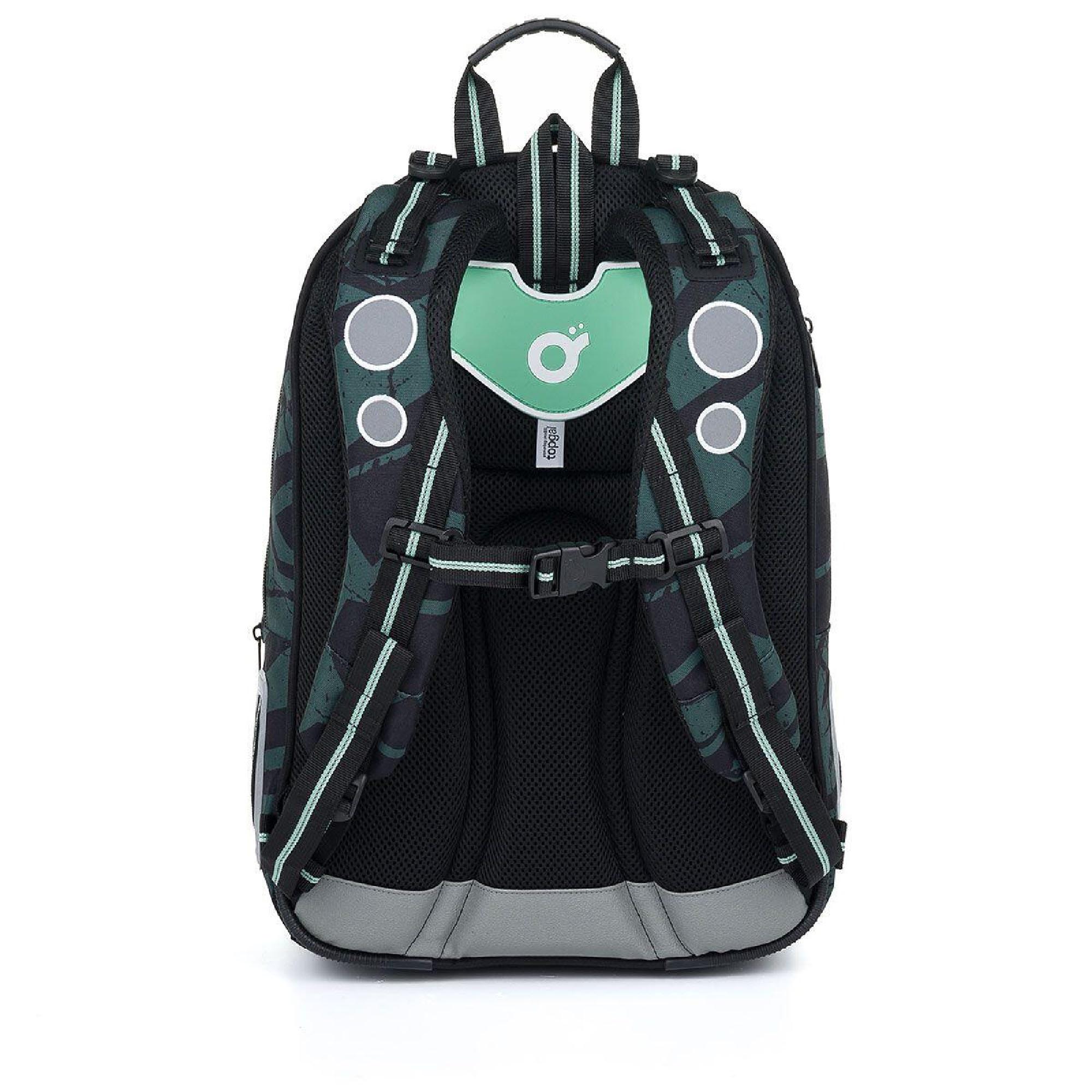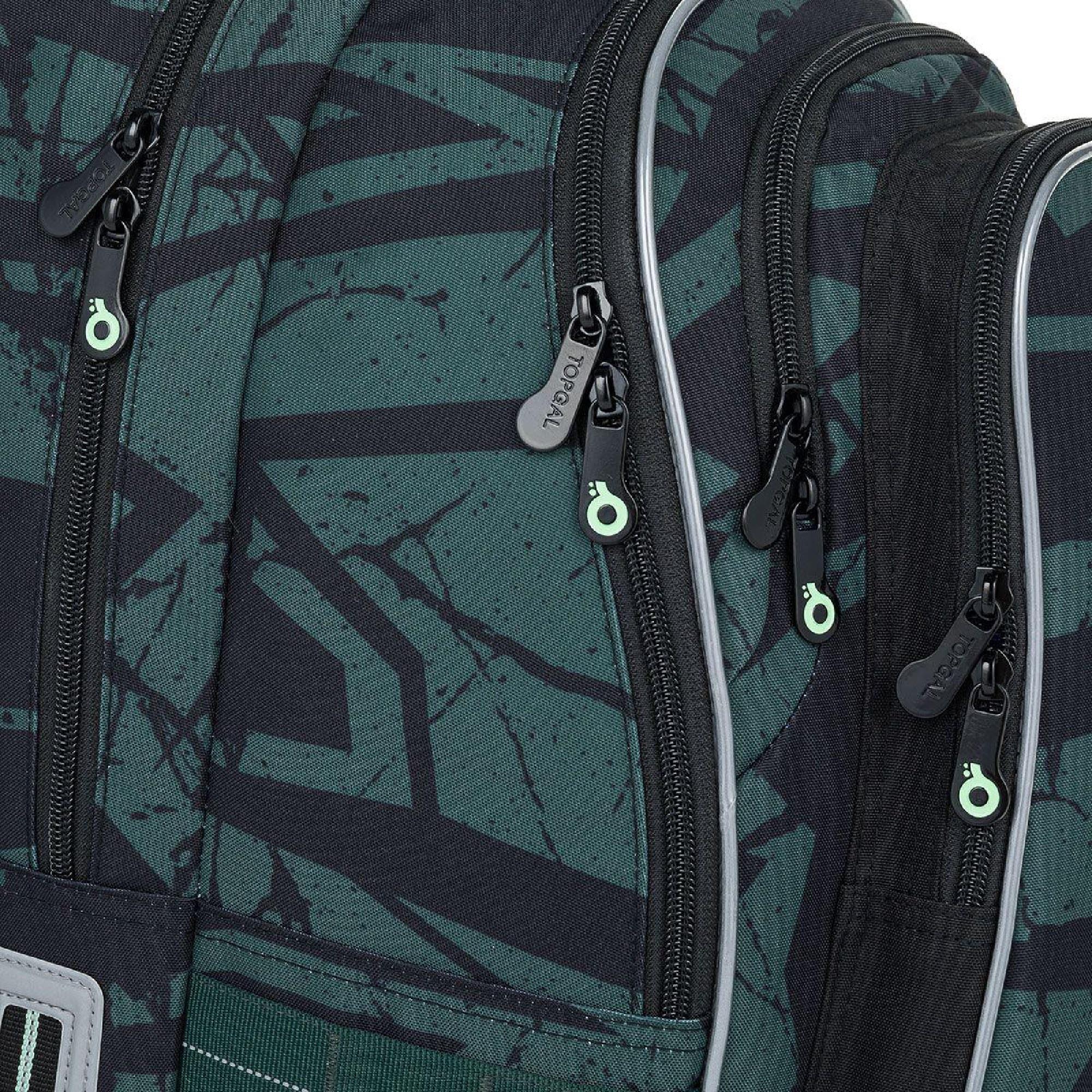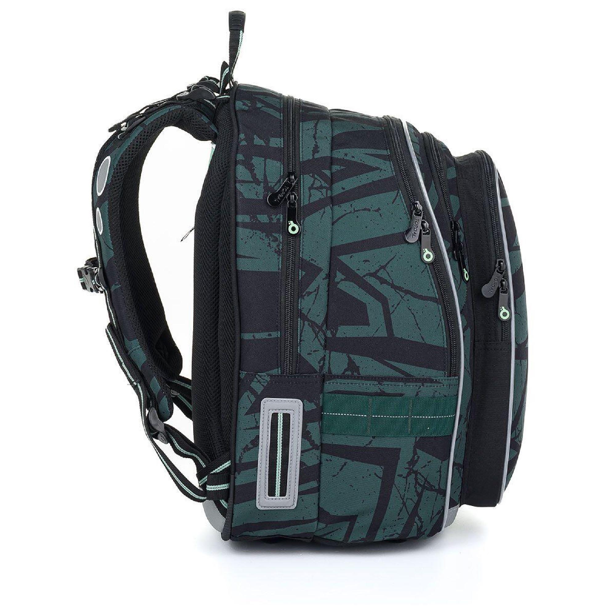 Zadní komora batohu je užší. Je ideální na přenášení nejtěžších učebnic nebo desek na sešity. Přední komora je nejširší a najdete v ní praktickou síťovou kapsičku na zip.