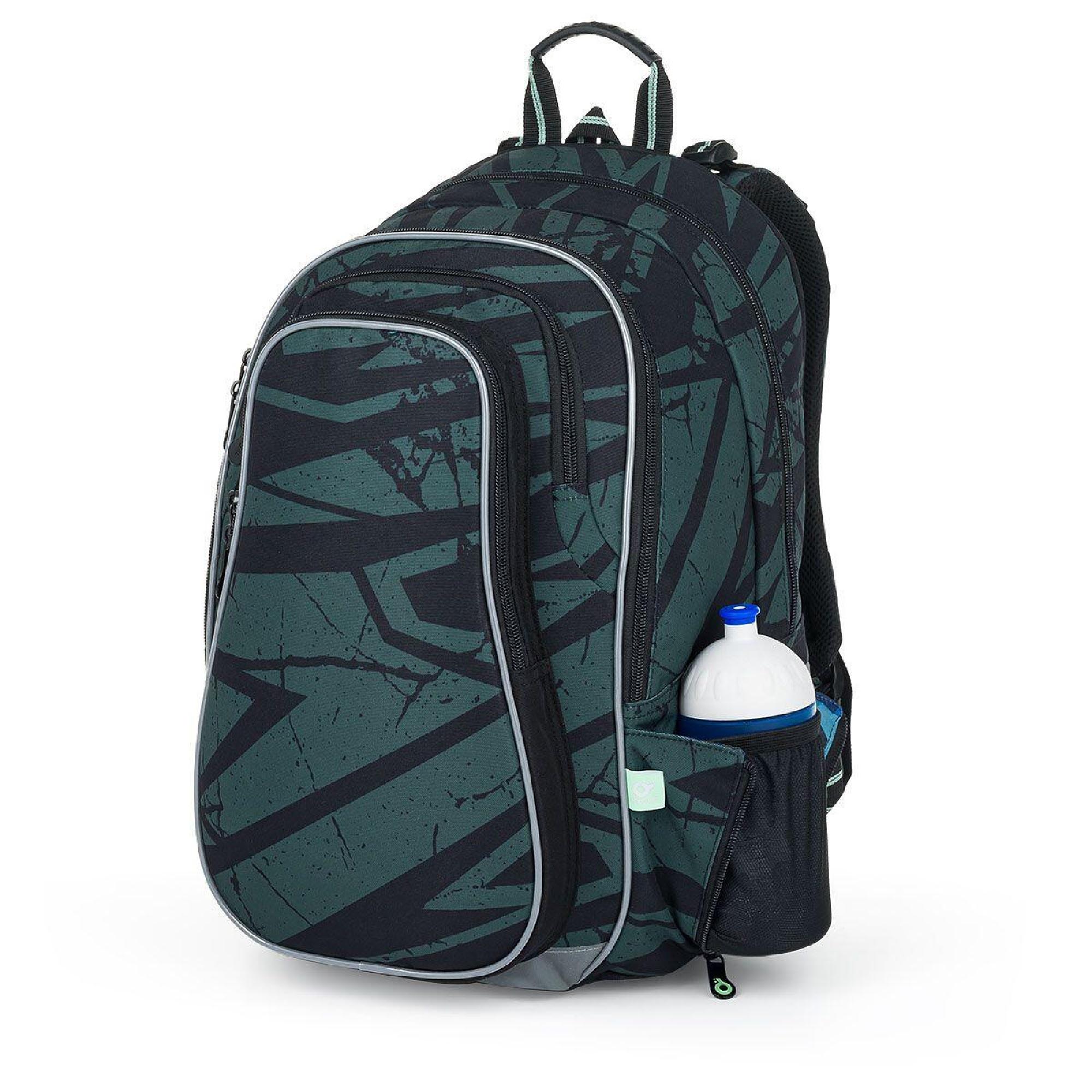 Hluboká kapsa, mezi přední komorou a kapsou na čele batohu, má užší vstup, proto se skvěle hodí pro penál PENN 24018 ve stejném designu. Do bočních kapes se vejdou zdravé lahve ZIVA o objemu 0,5 litru.