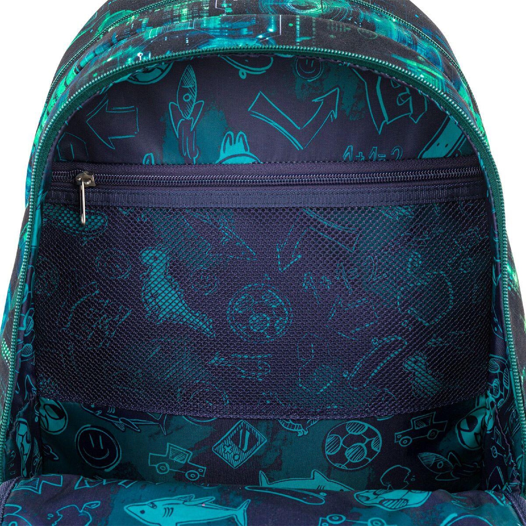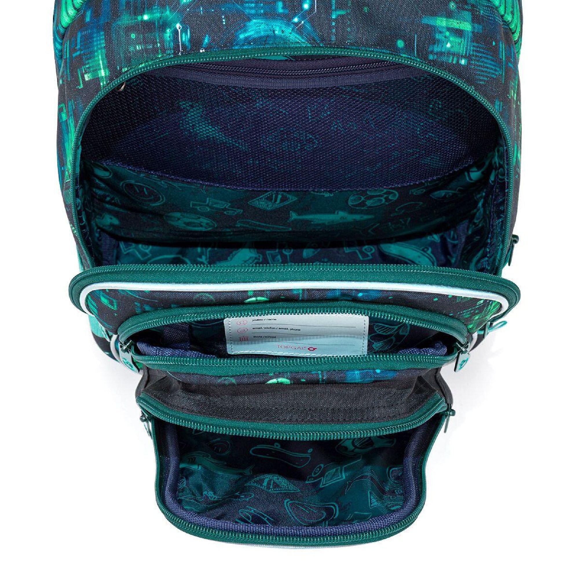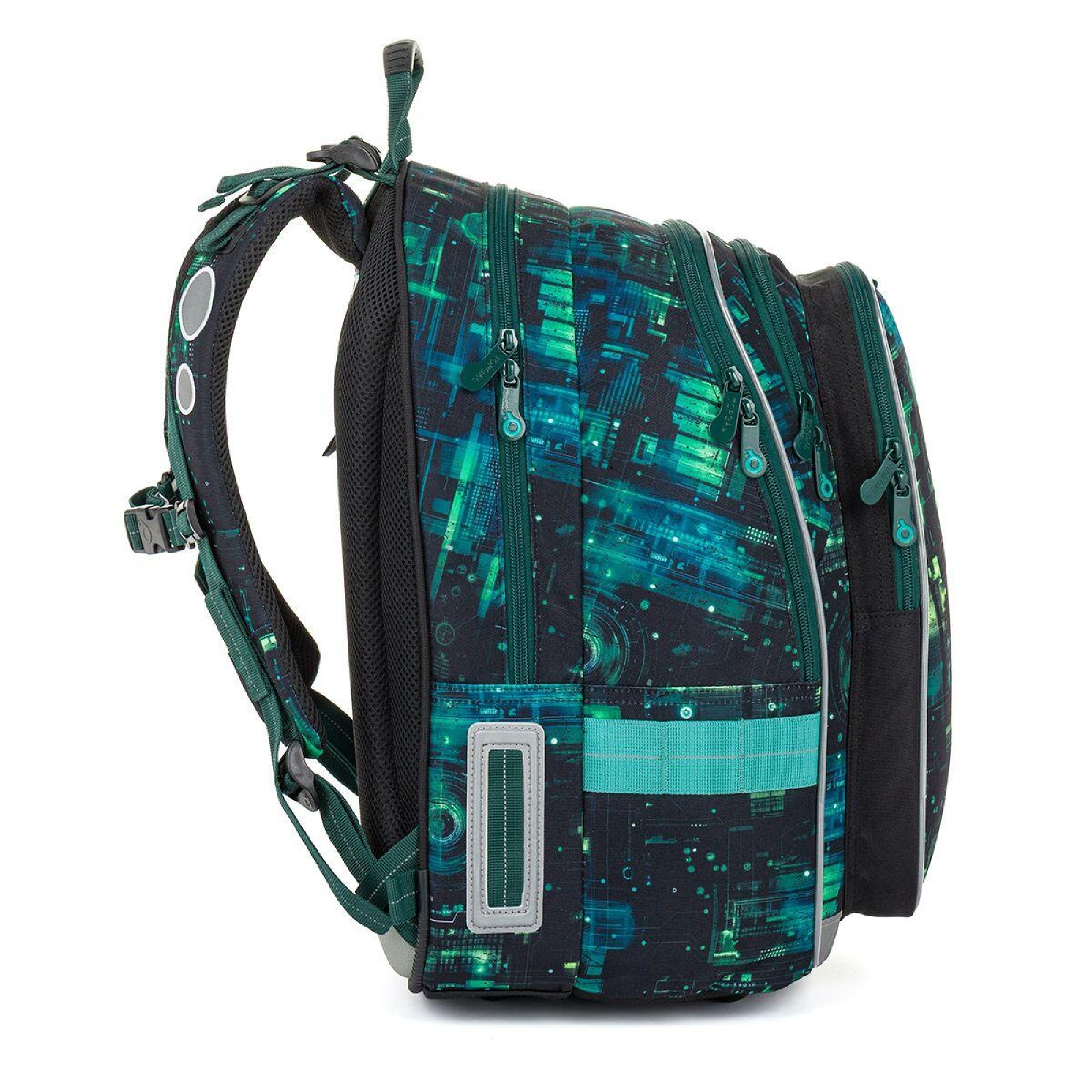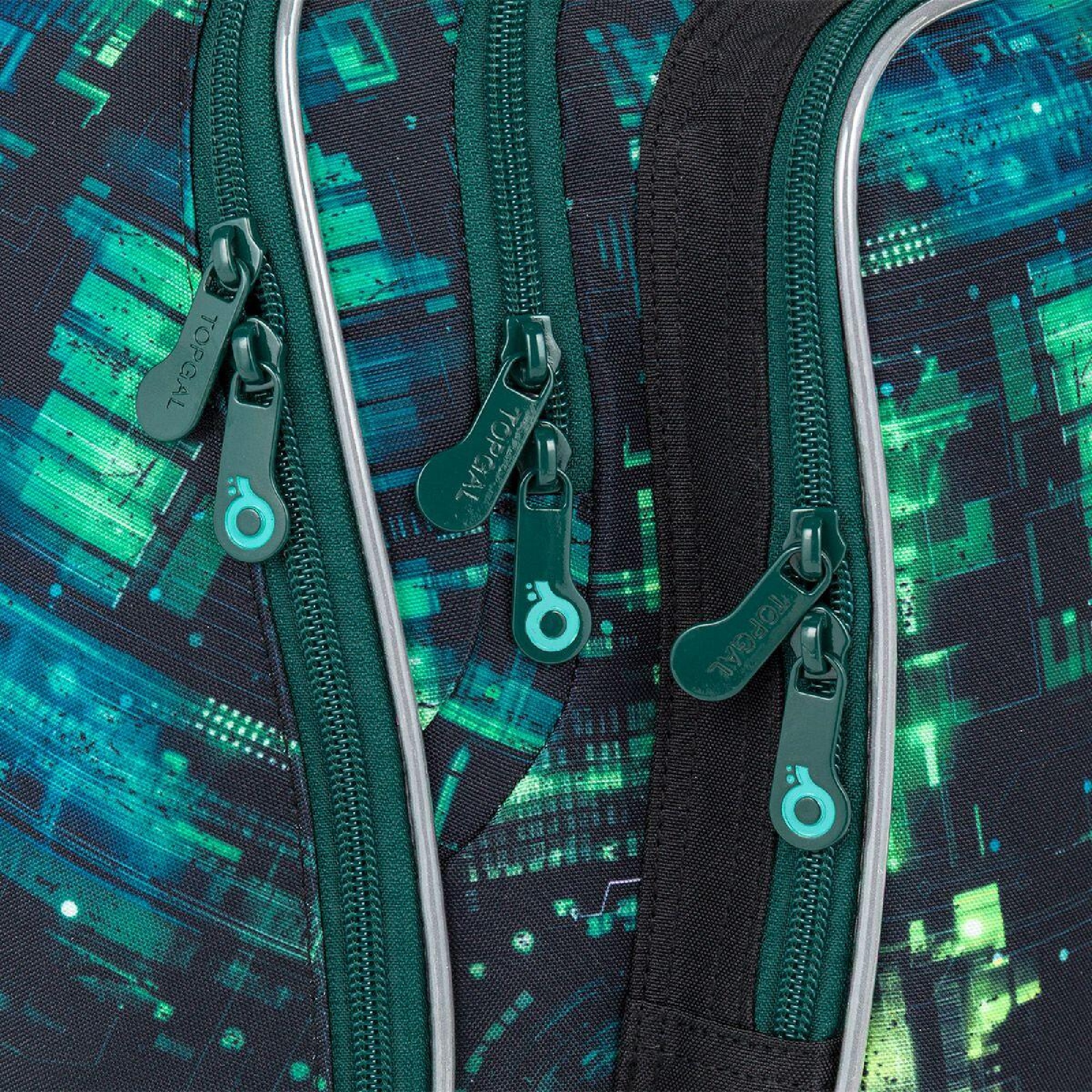 Školní batoh LYNN 26019 je dvoukomorový model navržený pro každodenní školní provoz. Moderní digitální motiv inspirovaný technologiemi osloví nejen kluky, kteří mají blízko k počítačům, hrám a futuristickému stylu.