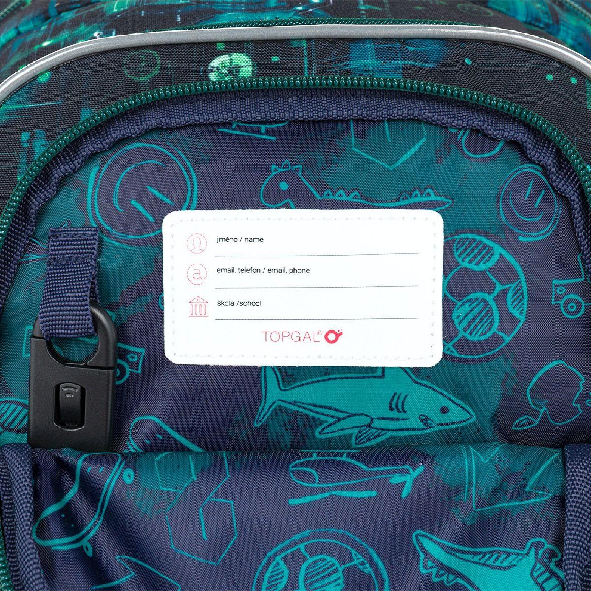 Zadní komora je určená pro uložení těžších učebnic nebo desek na sešity. Do přední komory se hodí menší školní výbava – ideálně penál ve stejném motivu PENN 26019 nebo box na svačinu. V přední kapse nechybí odnímatelná karabina na klíče.